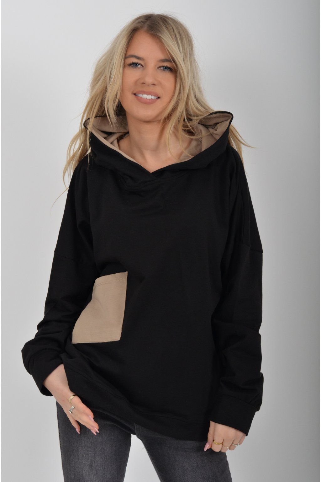 Mikina turecké značky Megi s dlouhým rukávem, kapucí a kapsou. Je ideální pro nošení do jarního počasí. Mikina je vyrobena z velice kvalitní turecké bavlny. Ve spodní části je do rantlu.