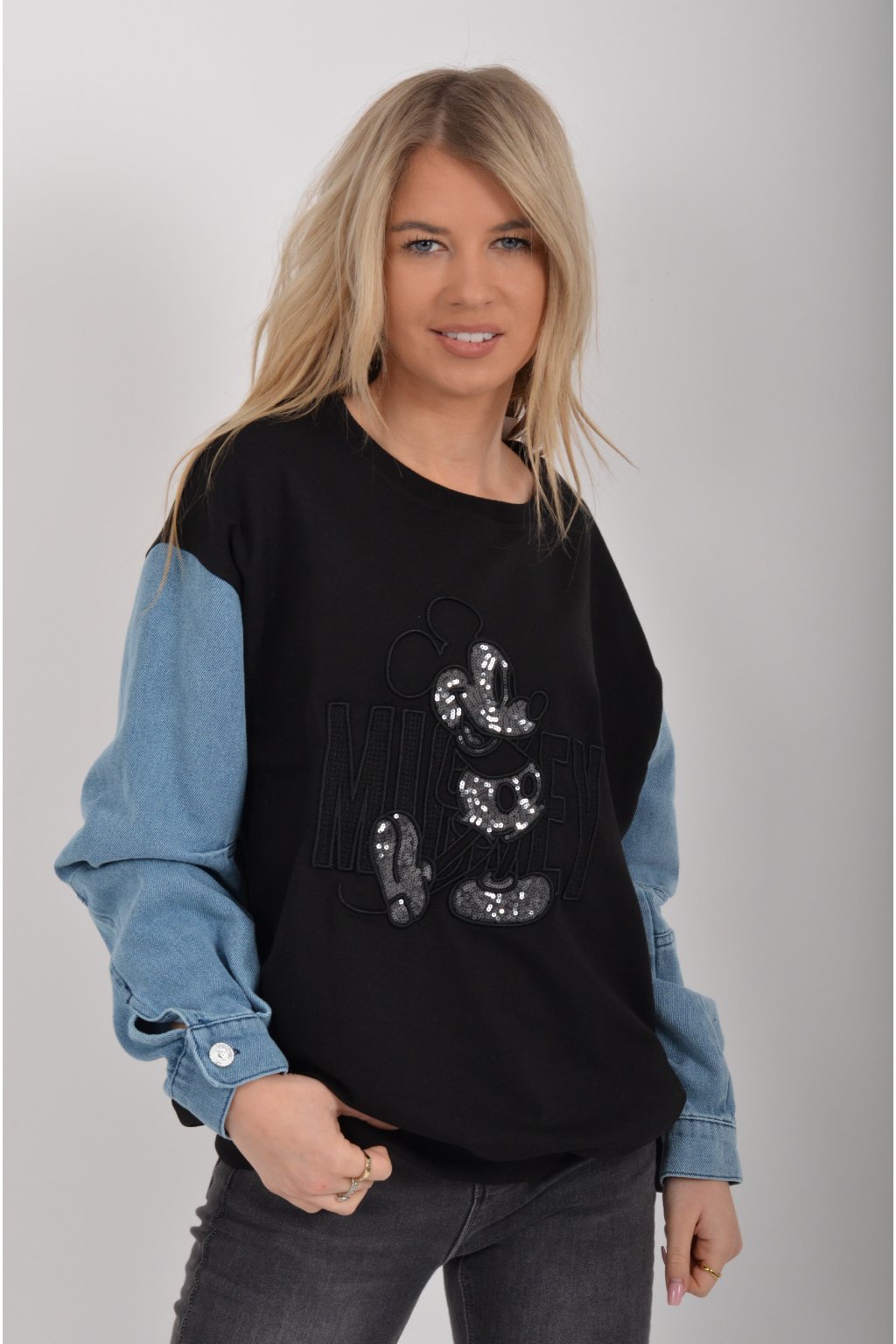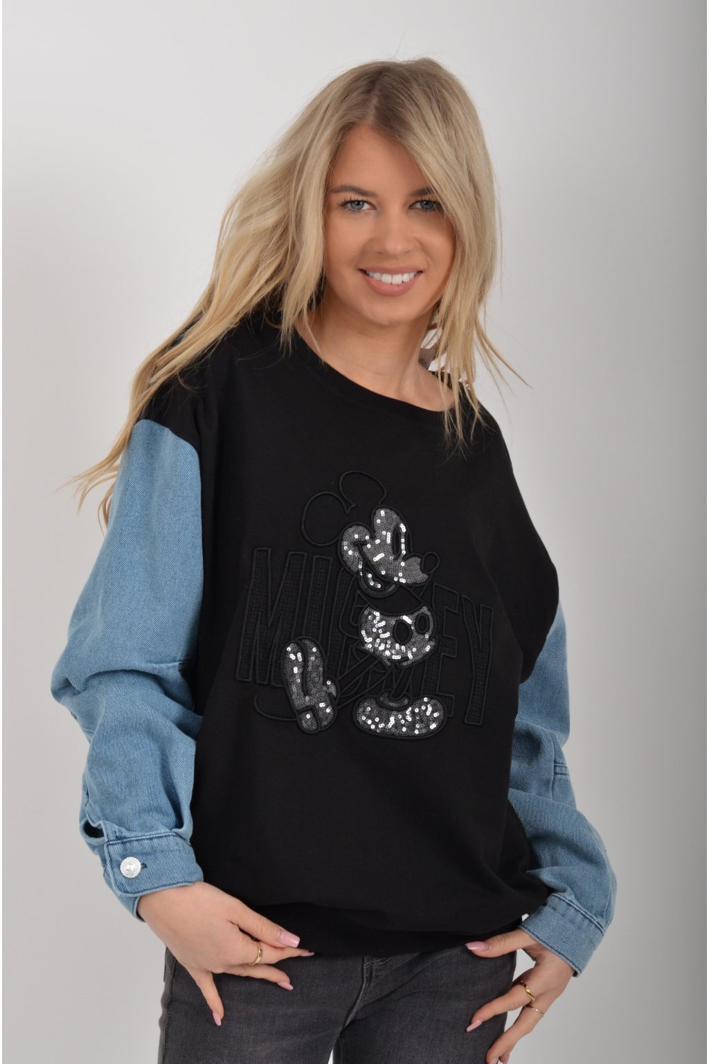 Mikina turecké značky Megi s dlouhým džínovým rukávem, a vyšívaným vzorem Mickey Mouse. Je ideální pro nošení do jarního počasí. Mikina je vyrobena z velice kvalitní turecké bavlny. Ve spodní části je do rantlu.