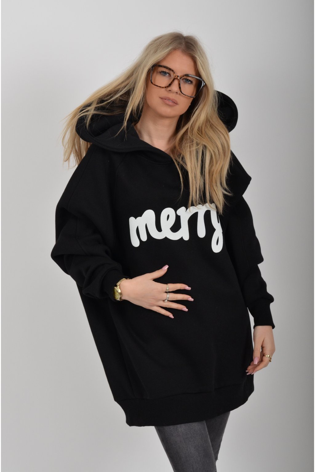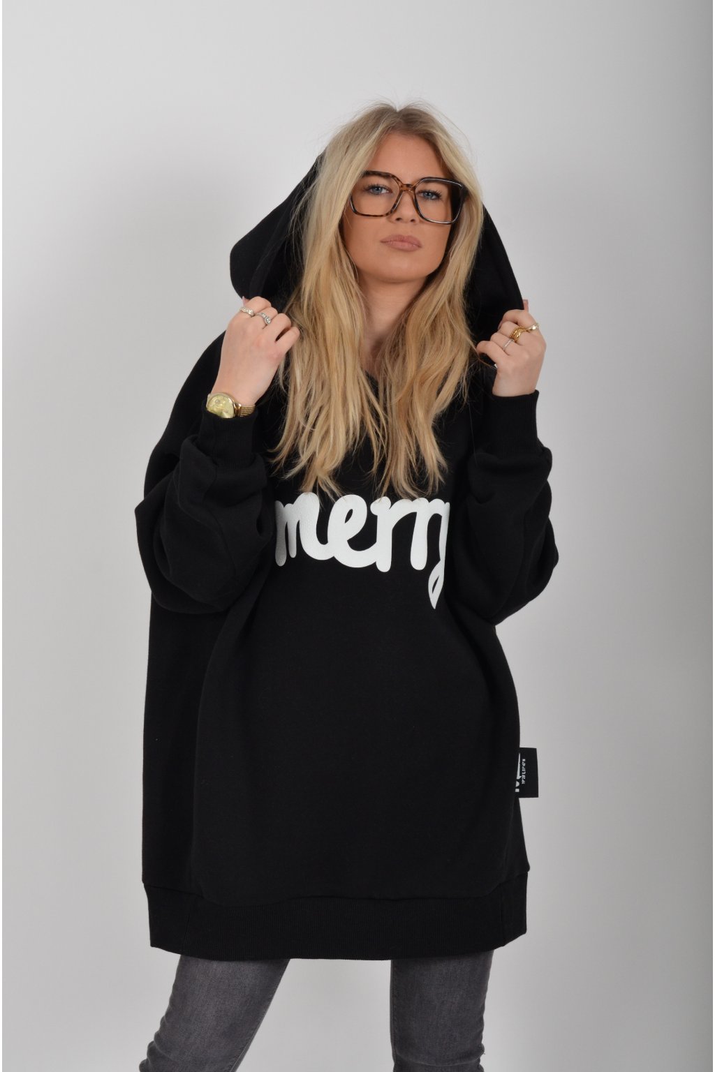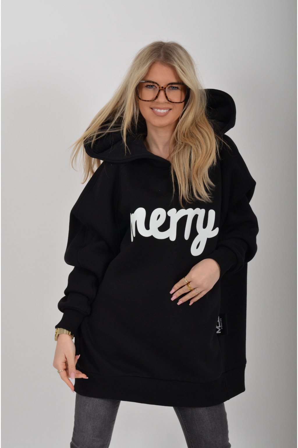 Mikina s nápisem Merry (štěstí) značky Miss City Official s dlouhý rukávem a kapucí. Je vyrobena s vysoce kvalitního materiálu.