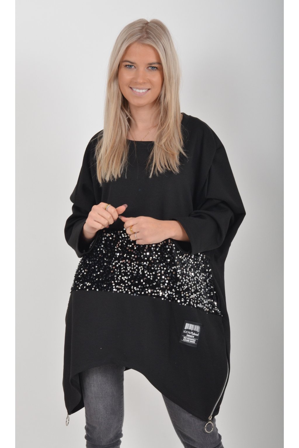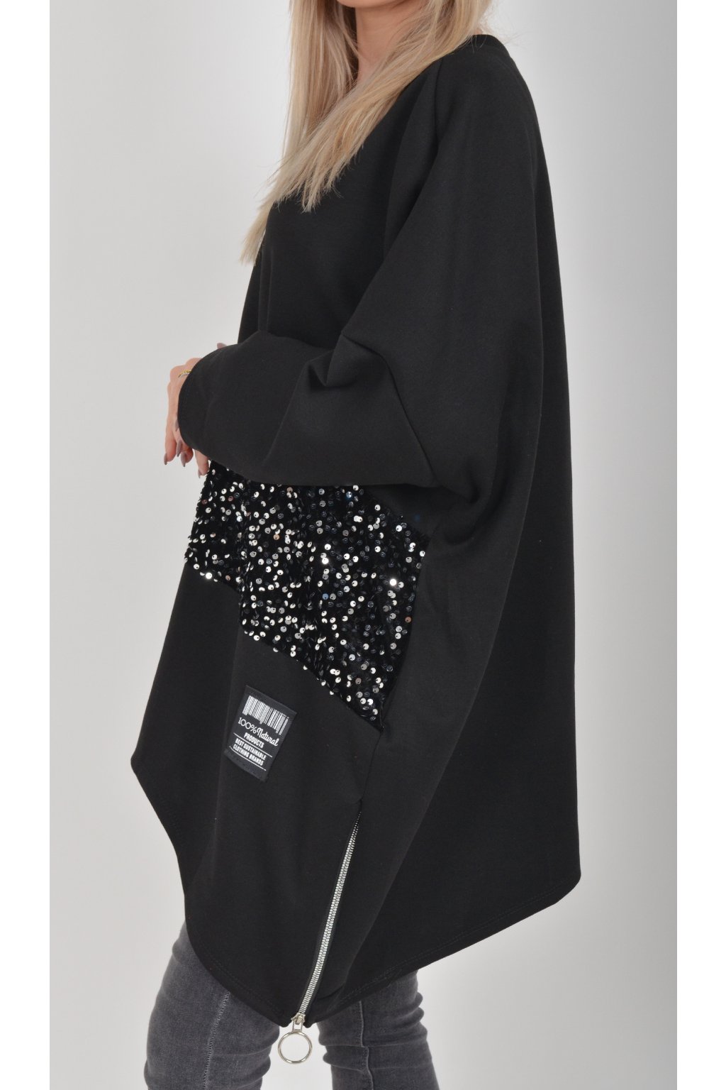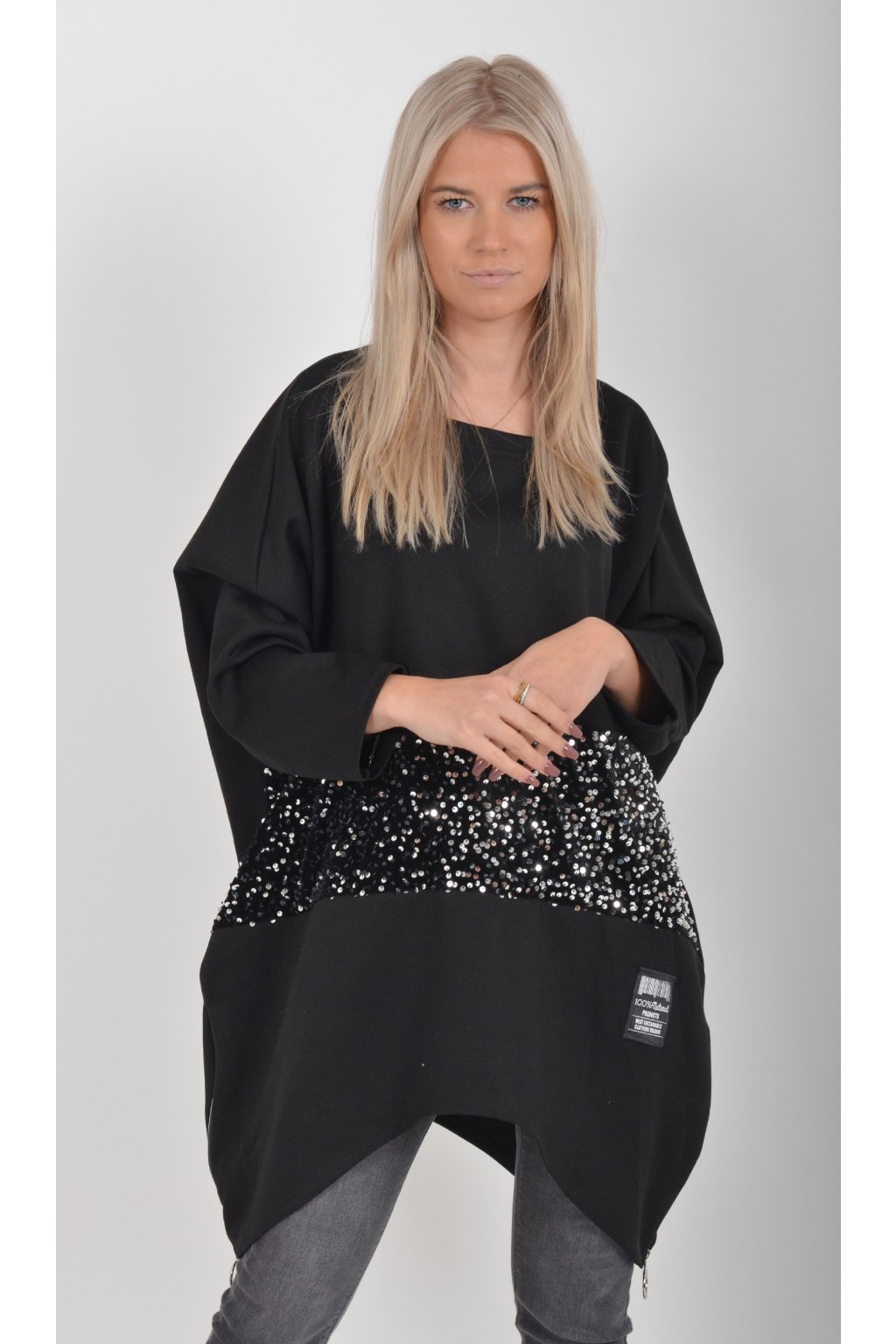 Mikinová tunika balonového střihu se spadeným rukávem. Na bocích má zipy pro vytvoření rozparku. Je vyrobena z velice kvalitního a příjemného materiálu.