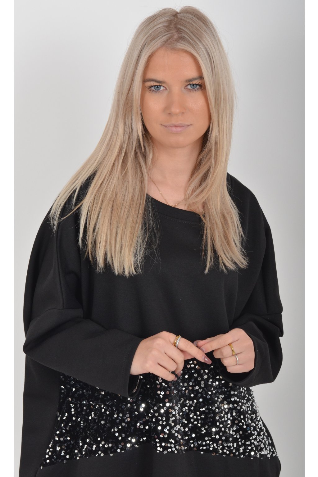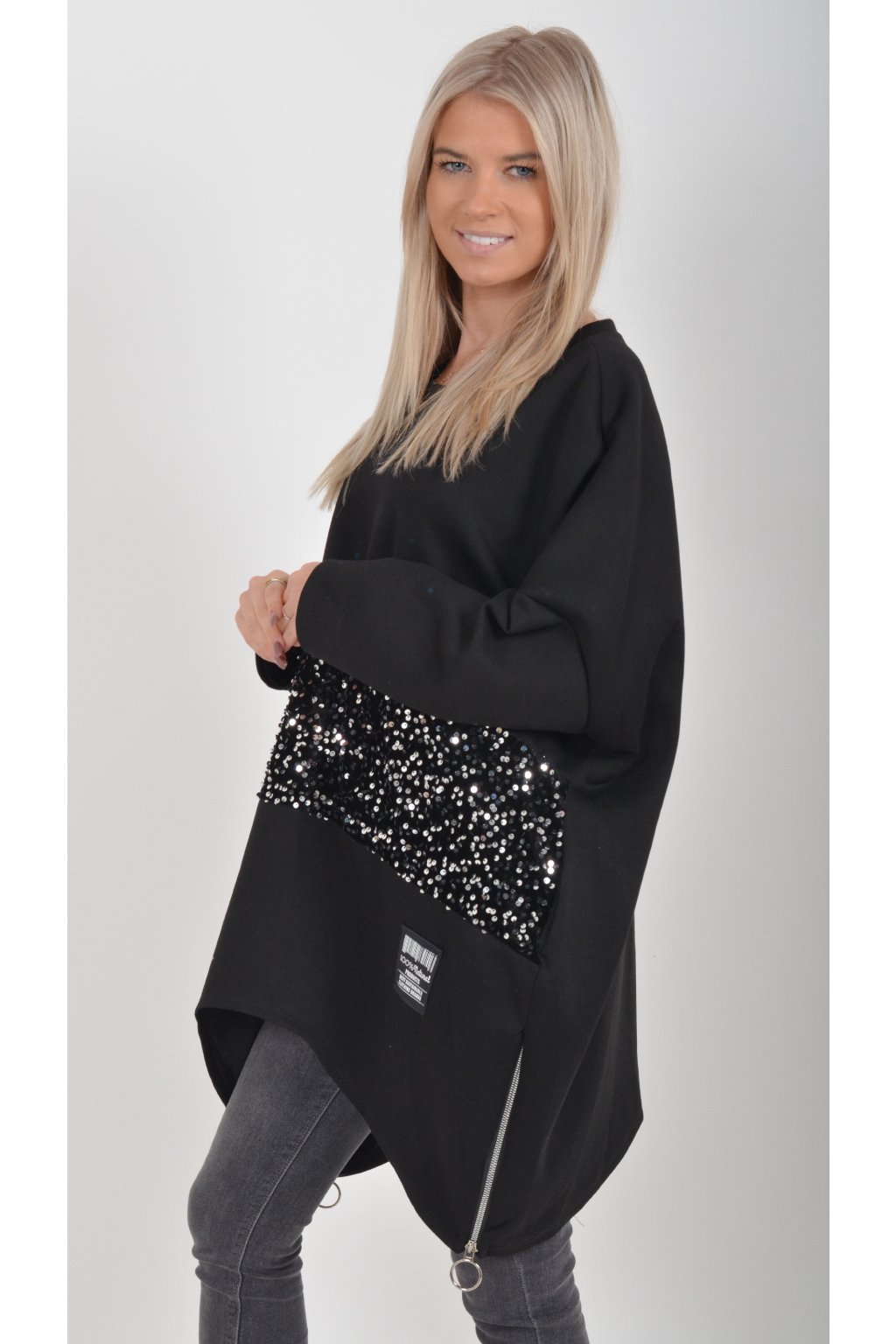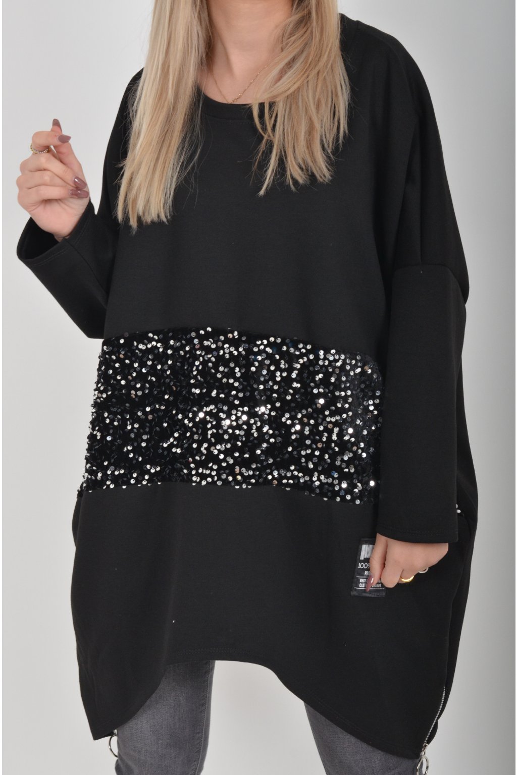 Mikinová tunika balonového střihu se spadeným rukávem. Na bocích má zipy pro vytvoření rozparku. Je vyrobena z velice kvalitního a příjemného materiálu.