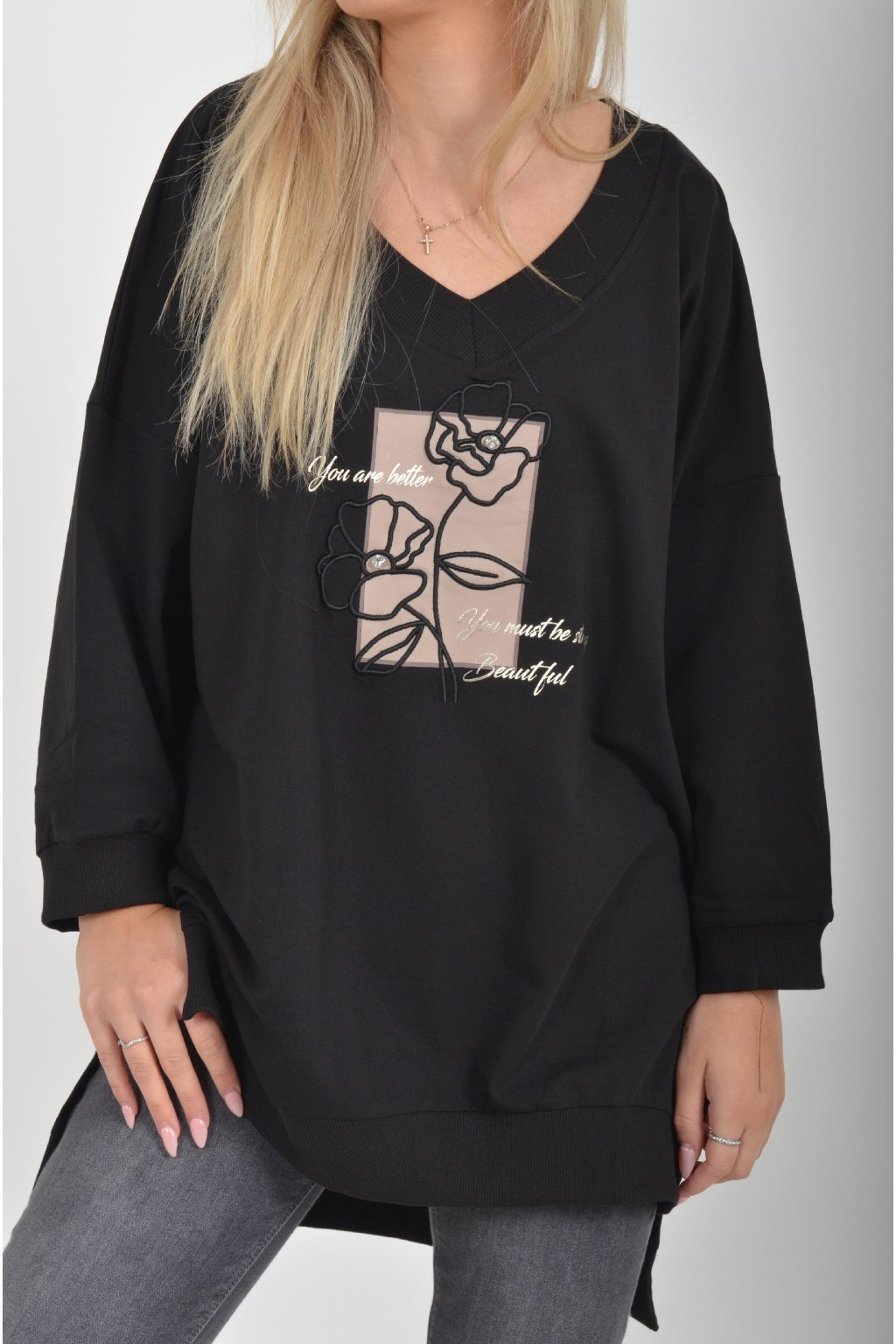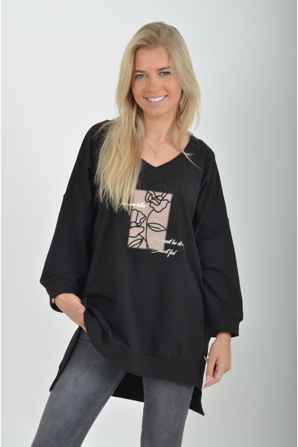 Prodloužená mikina se spadeným rukávem vyrobena z velice příjemné turecké bavlny.
