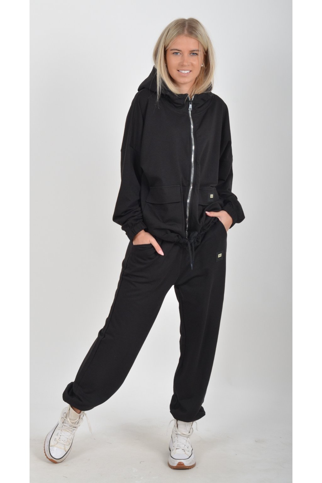 Tepláková souprava vyrobená z velice příjemné turecké bavlny. Tepláky mají na bocích kapsy. Mikina je na zip a ve spodní části má zapracovanou šňůrku pro libovolné stažení.