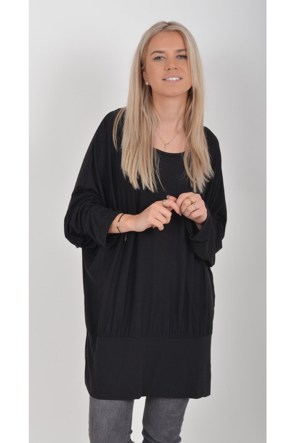 Oversize tunika s dlouhým rukávem vyrobena z příjemného materiálu. Spodní část tuniky je elastického rantlu. Je vhodná pro každodenní nošení.