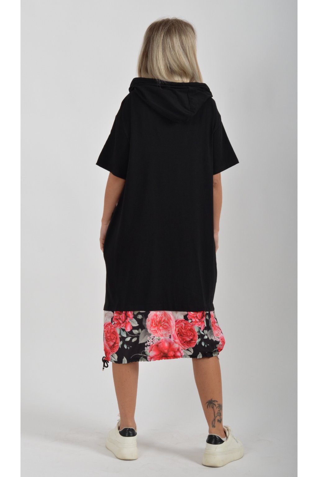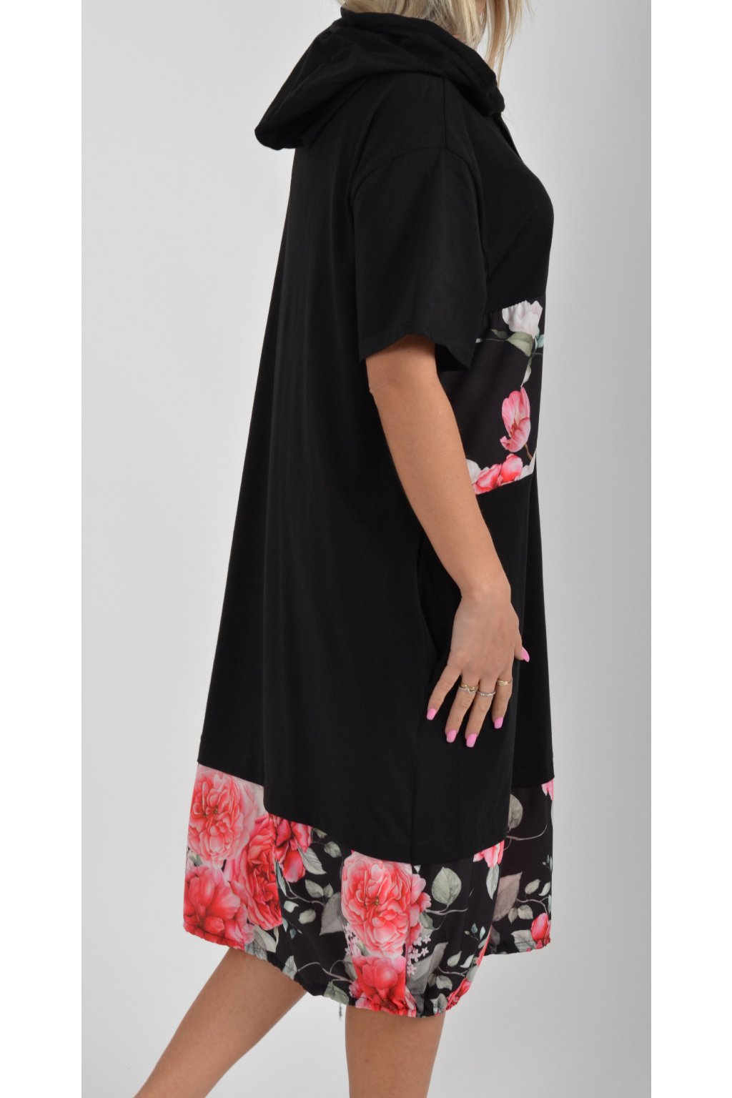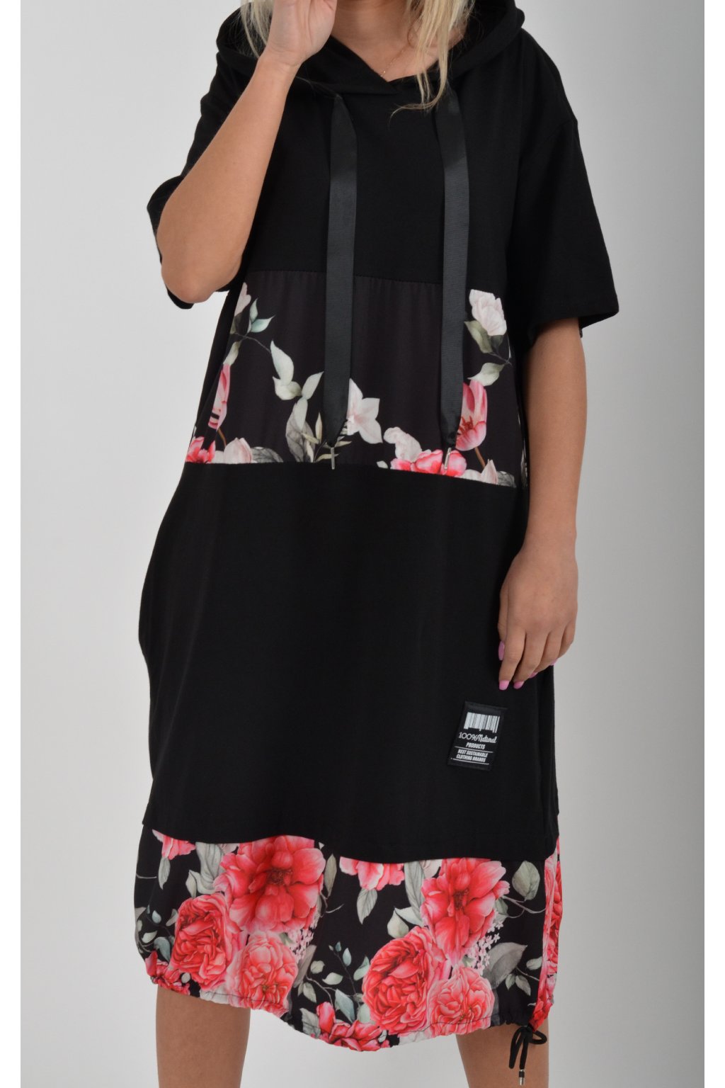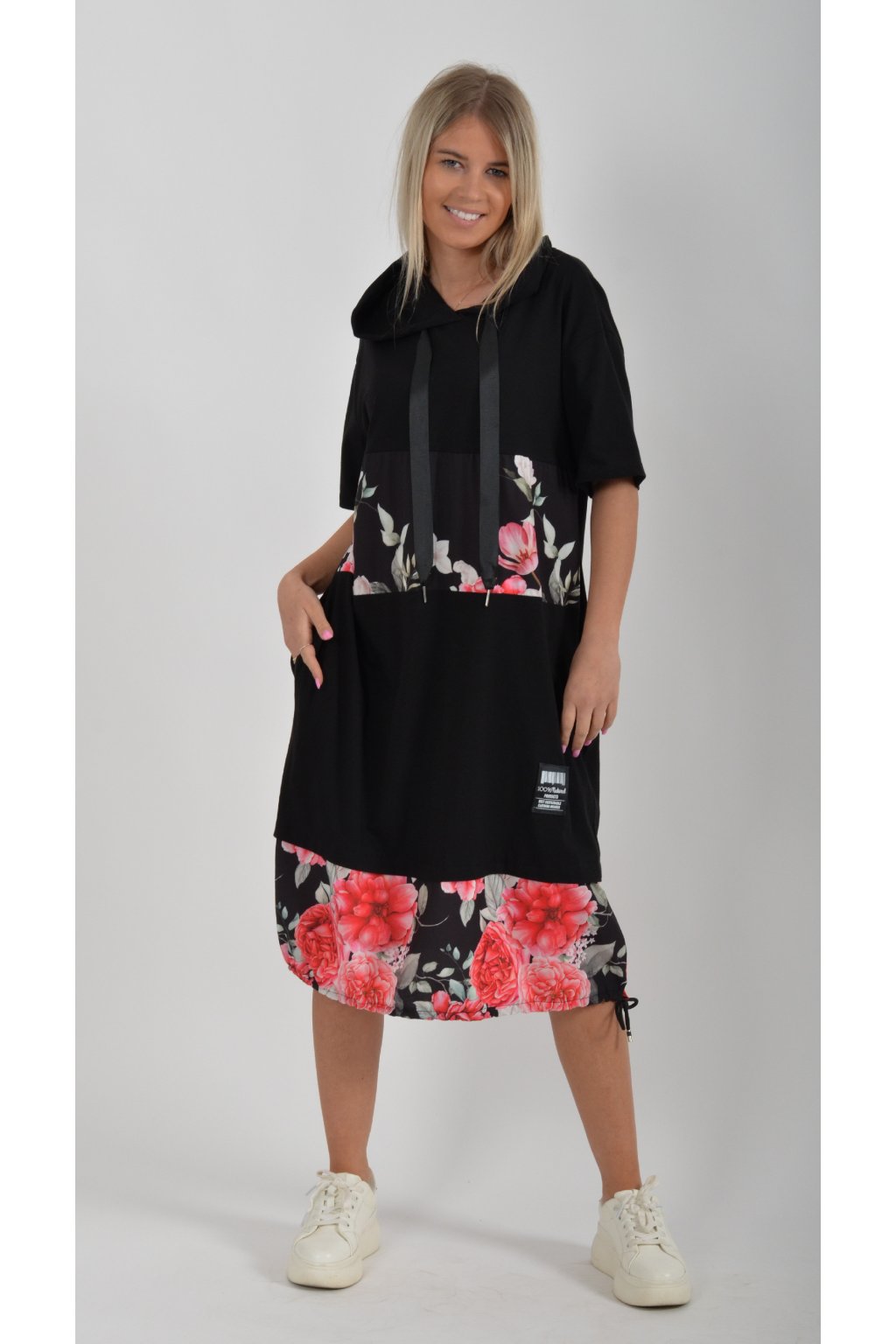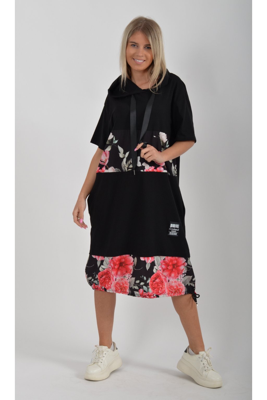 Nádherné bavlněné šaty s barevným vzorem. Mají lehce balónový střih, kapuci, krátký rukáv a na bocích kapsy. Jsou vyrobené z velice příjemné a tenké bavlny. Ve spodní části je lze pomocí zapracované tkanice stáhnout.