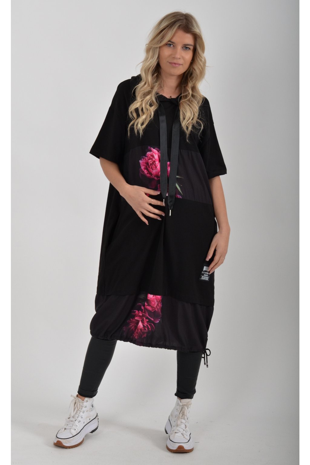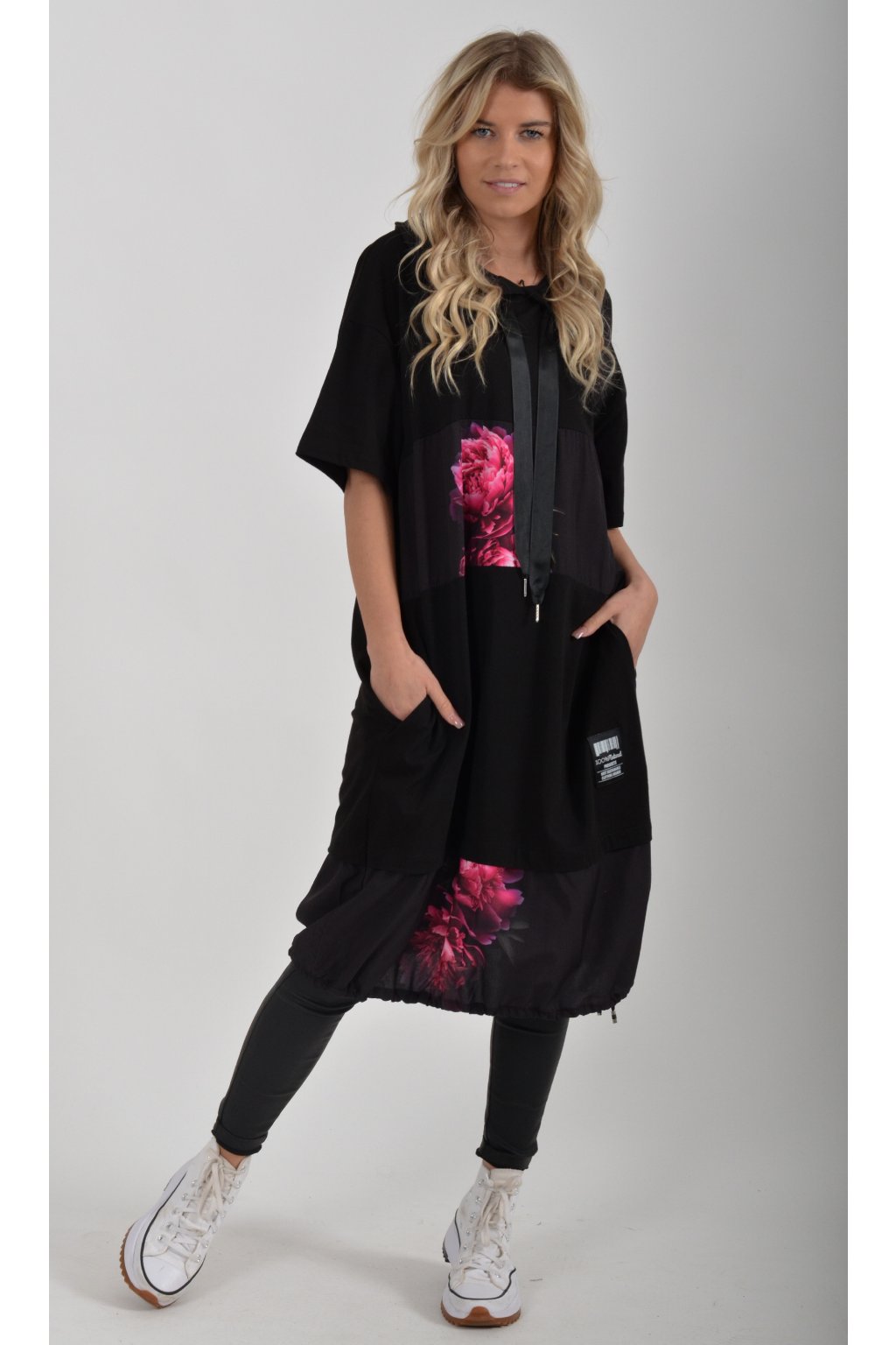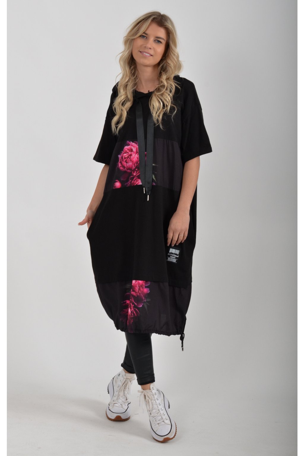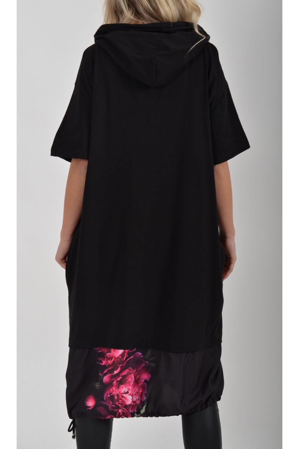Nádherné bavlněné šaty s barevným vzorem. Mají lehce balónový střih, kapuci, krátký rukáv a na bocích kapsy. Jsou vyrobené z velice příjemné a tenké bavlny. Ve spodní části je lze pomocí zapracované tkanice stáhnout.