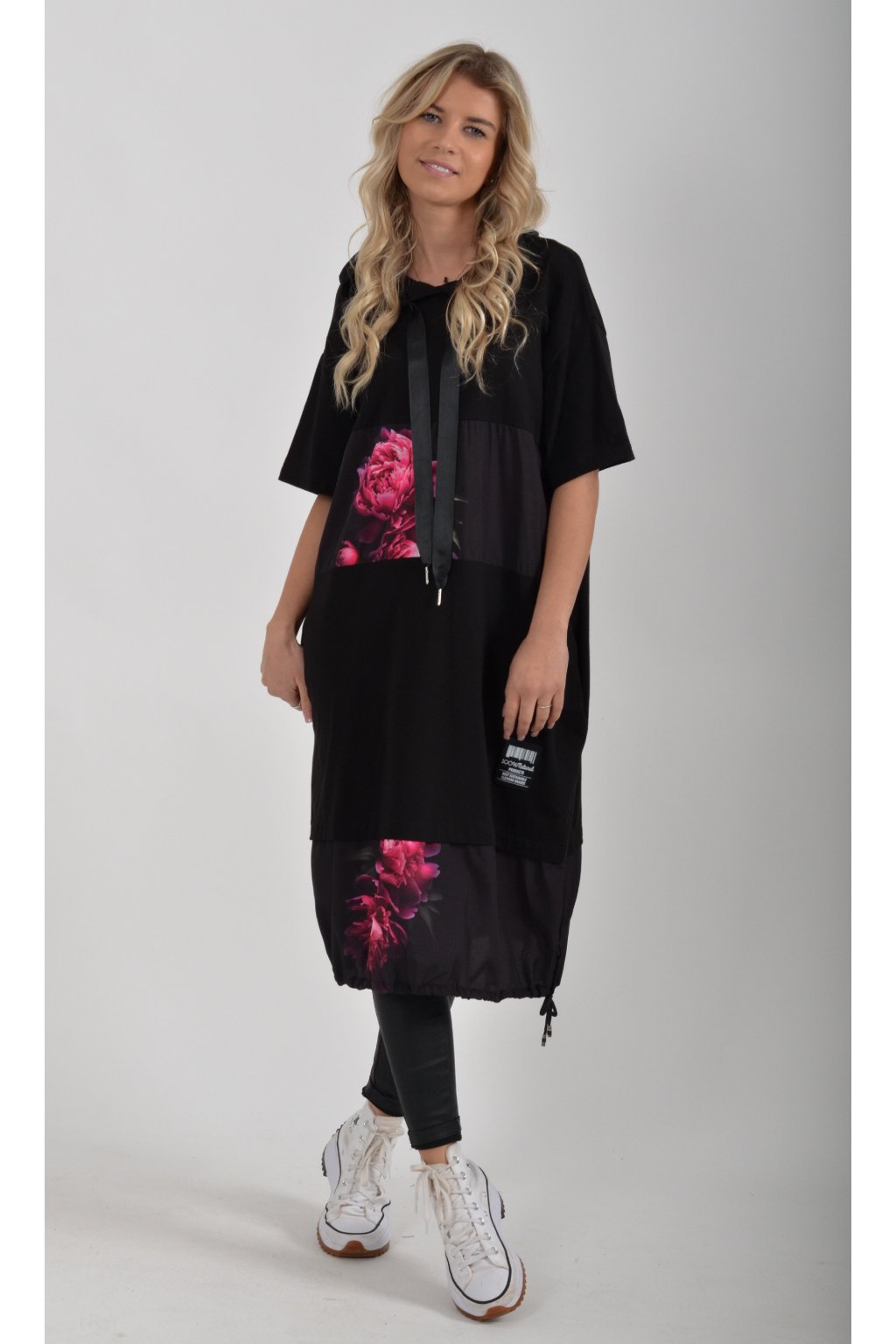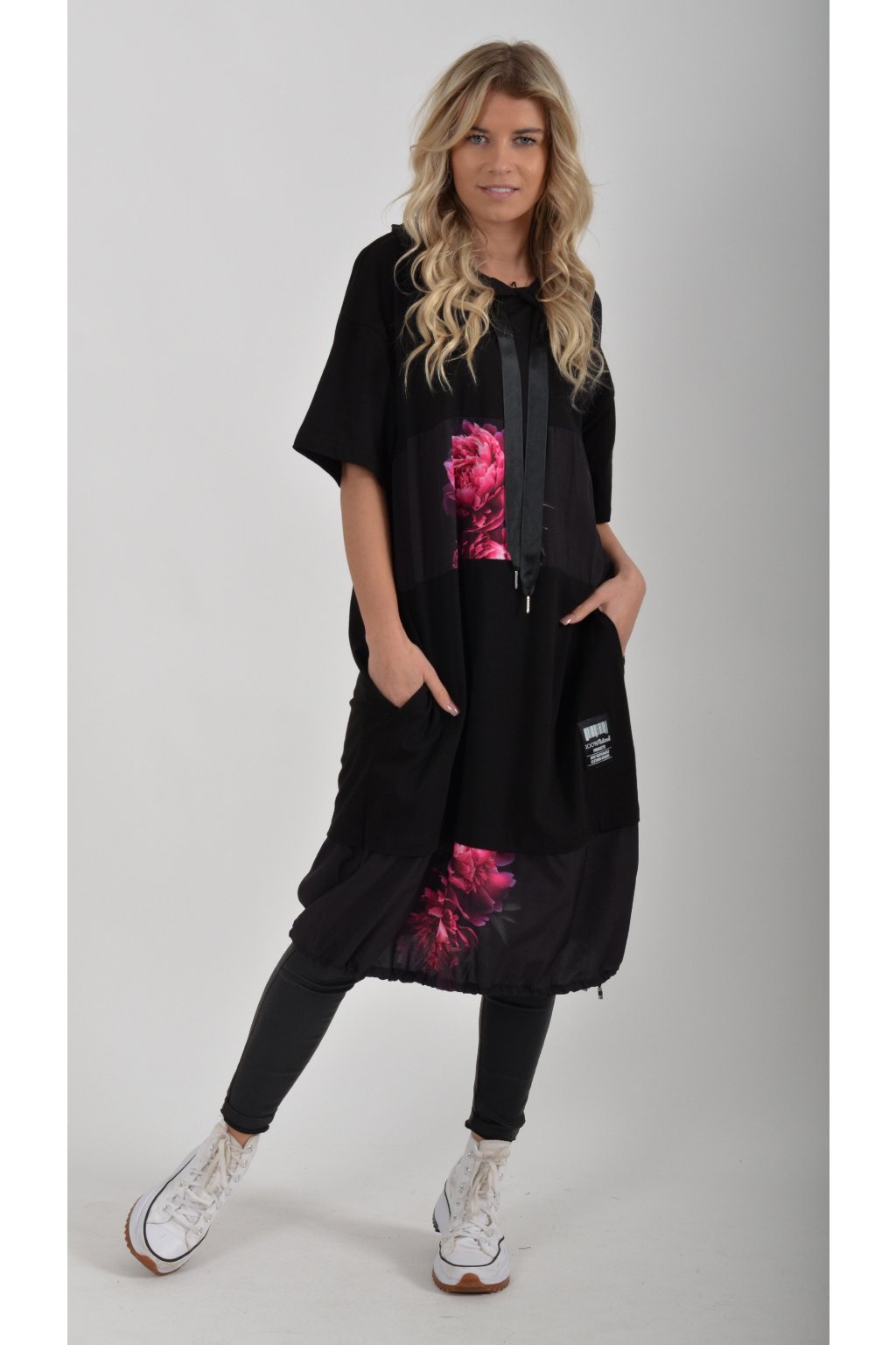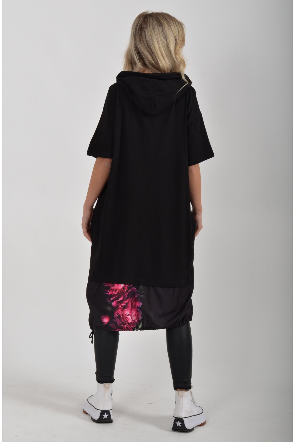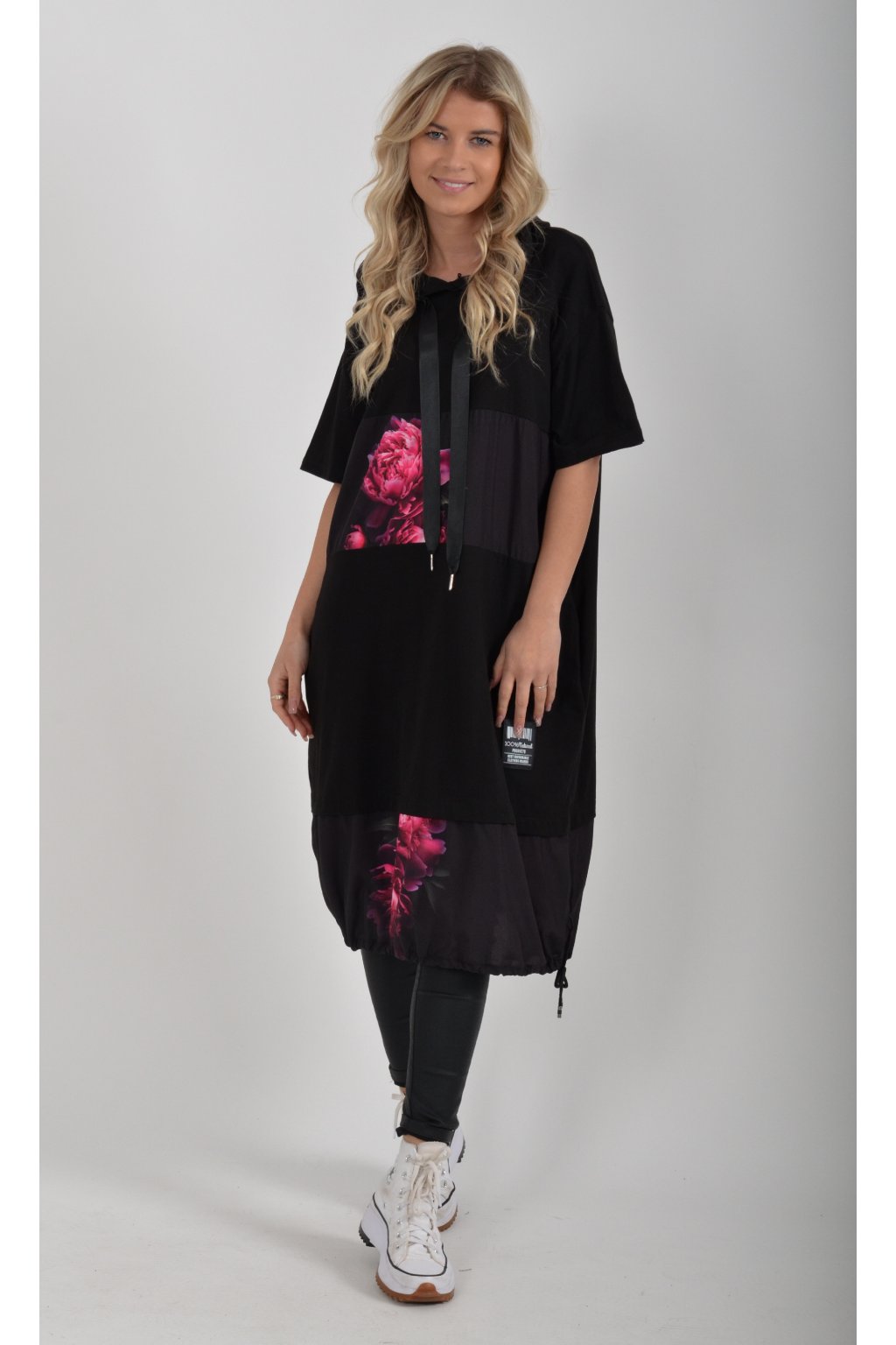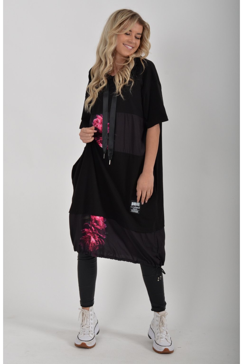 Nádherné bavlněné šaty s barevným vzorem. Mají lehce balónový střih, kapuci, krátký rukáv a na bocích kapsy. Jsou vyrobené z velice příjemné a tenké bavlny. Ve spodní části je lze pomocí zapracované tkanice stáhnout.