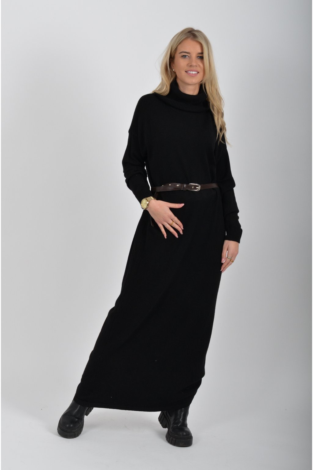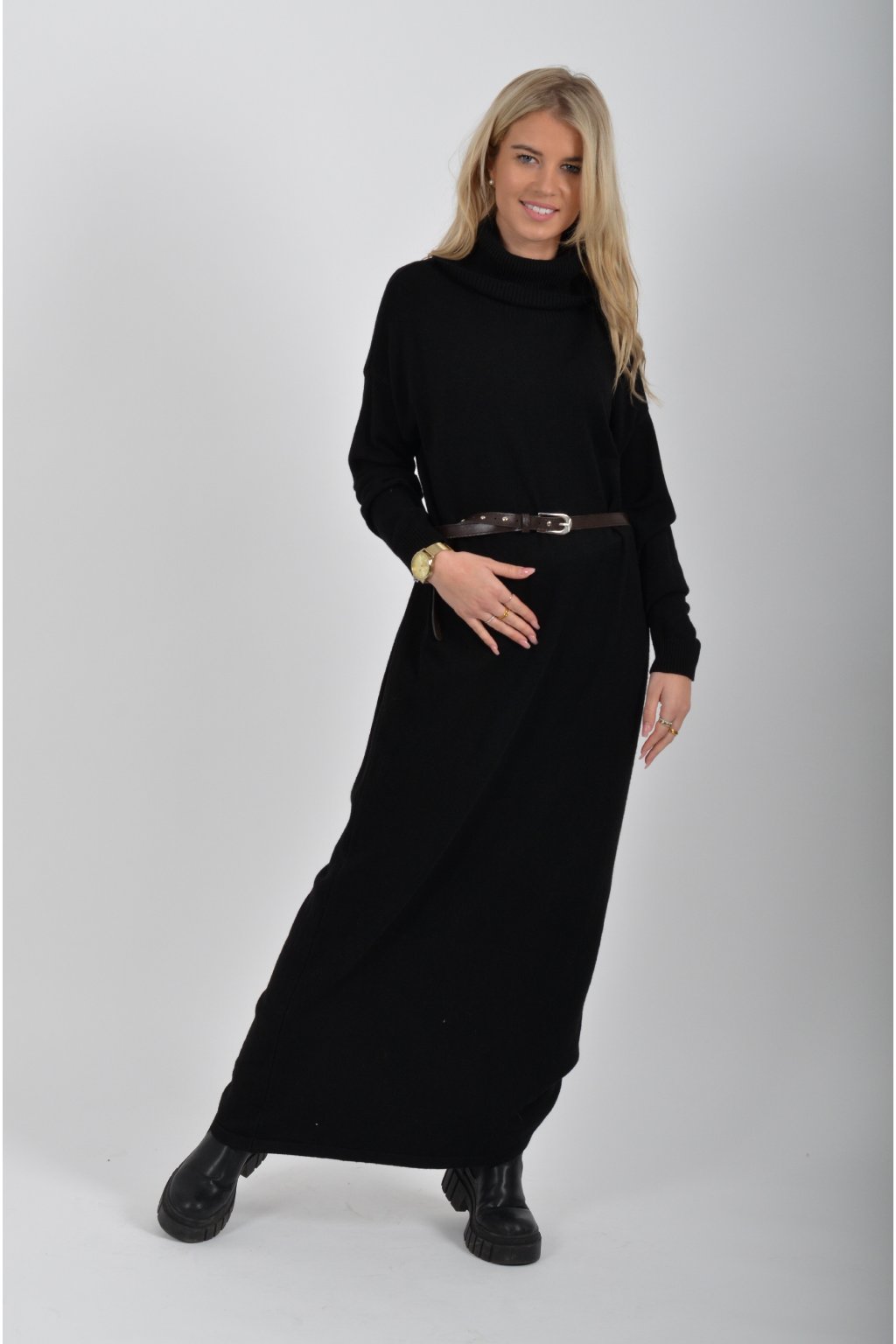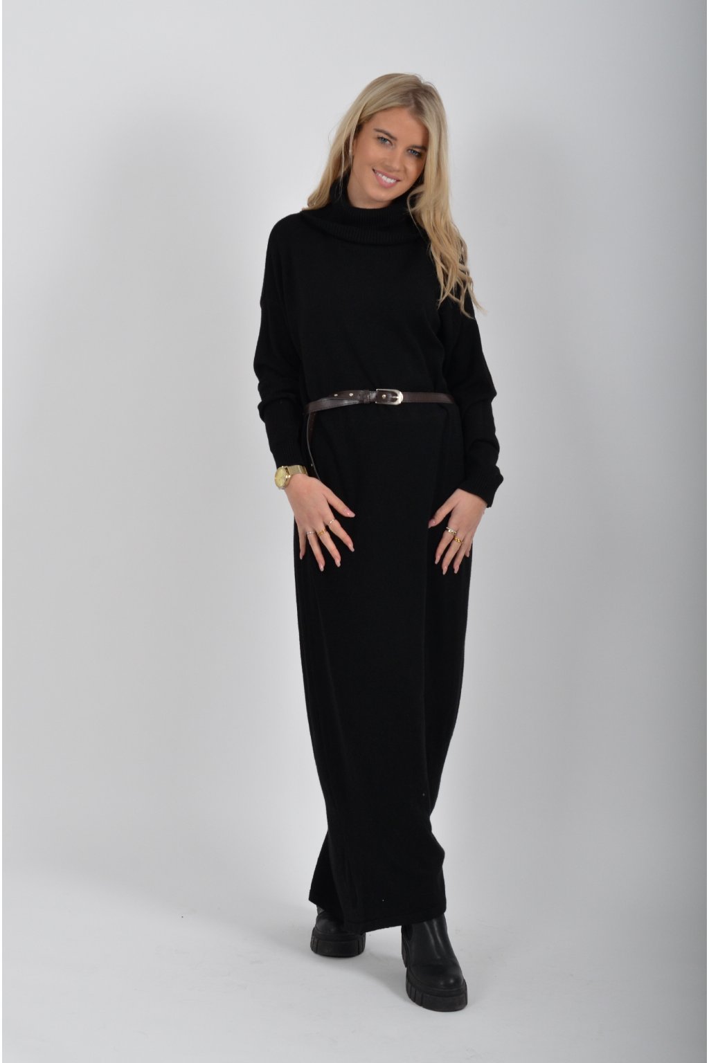 Jednobarevné pletené šaty s rolákem vyrobené z příjemného a nekousavého elastického materiálu. K šatům je jako doplněk pásek, který se dá odejmout a šaty nosit bez něj.
