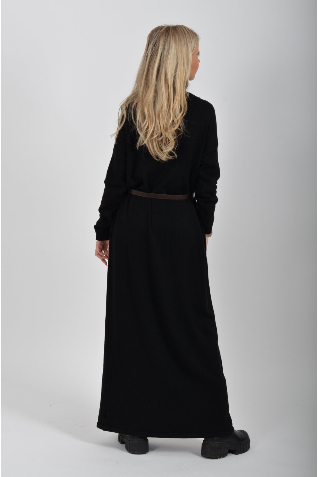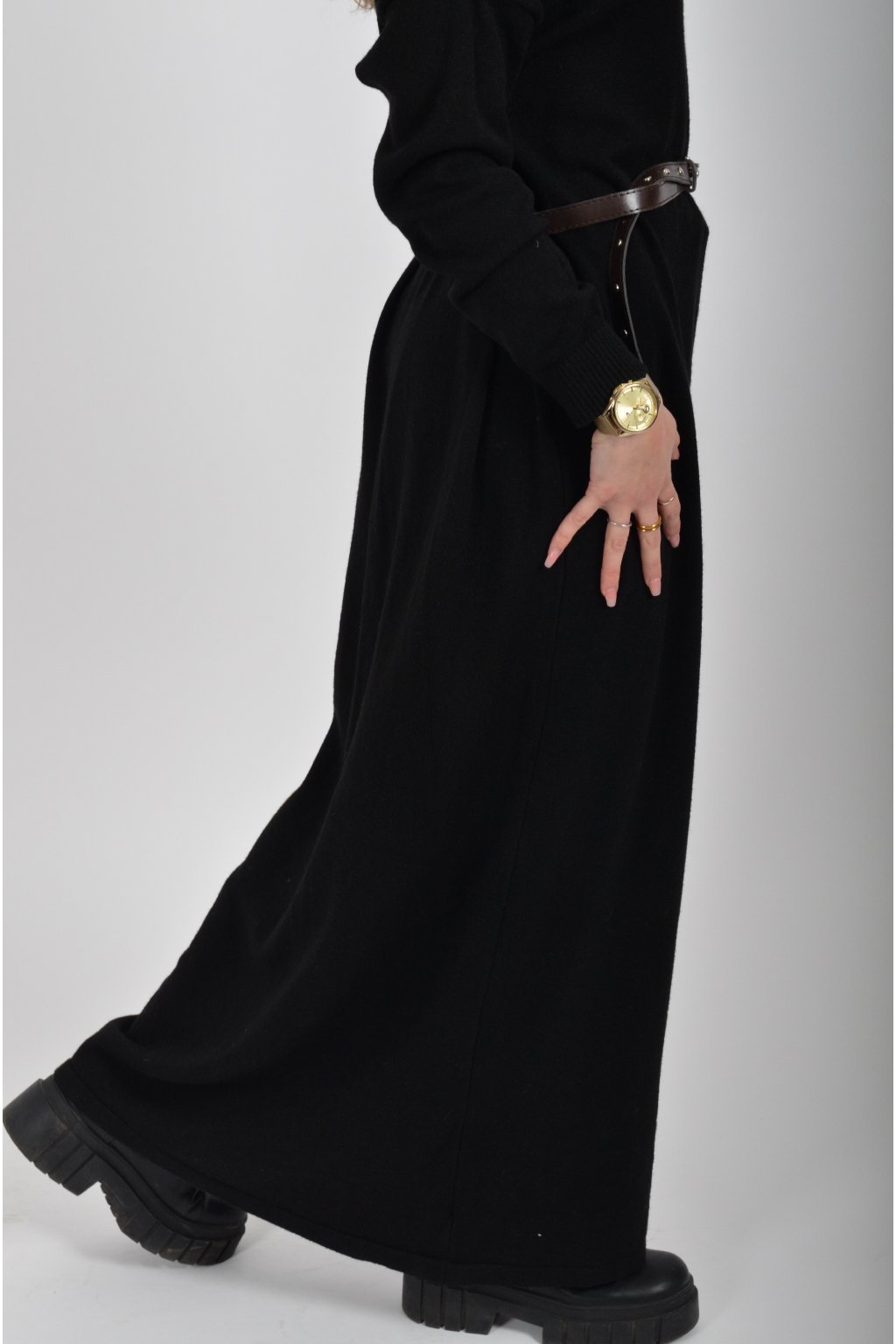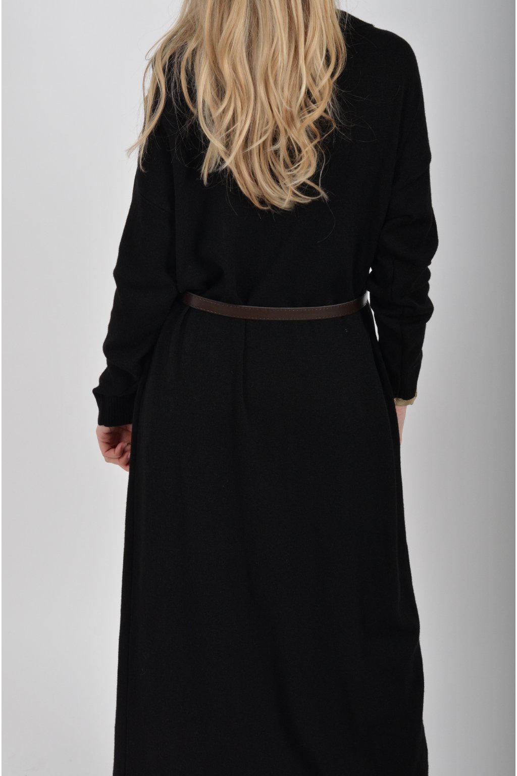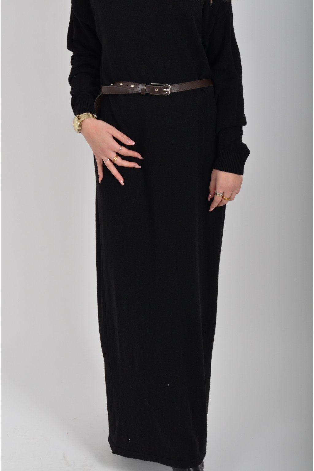 Jednobarevné pletené šaty s rolákem vyrobené z příjemného a nekousavého elastického materiálu. K šatům je jako doplněk pásek, který se dá odejmout a šaty nosit bez něj.
