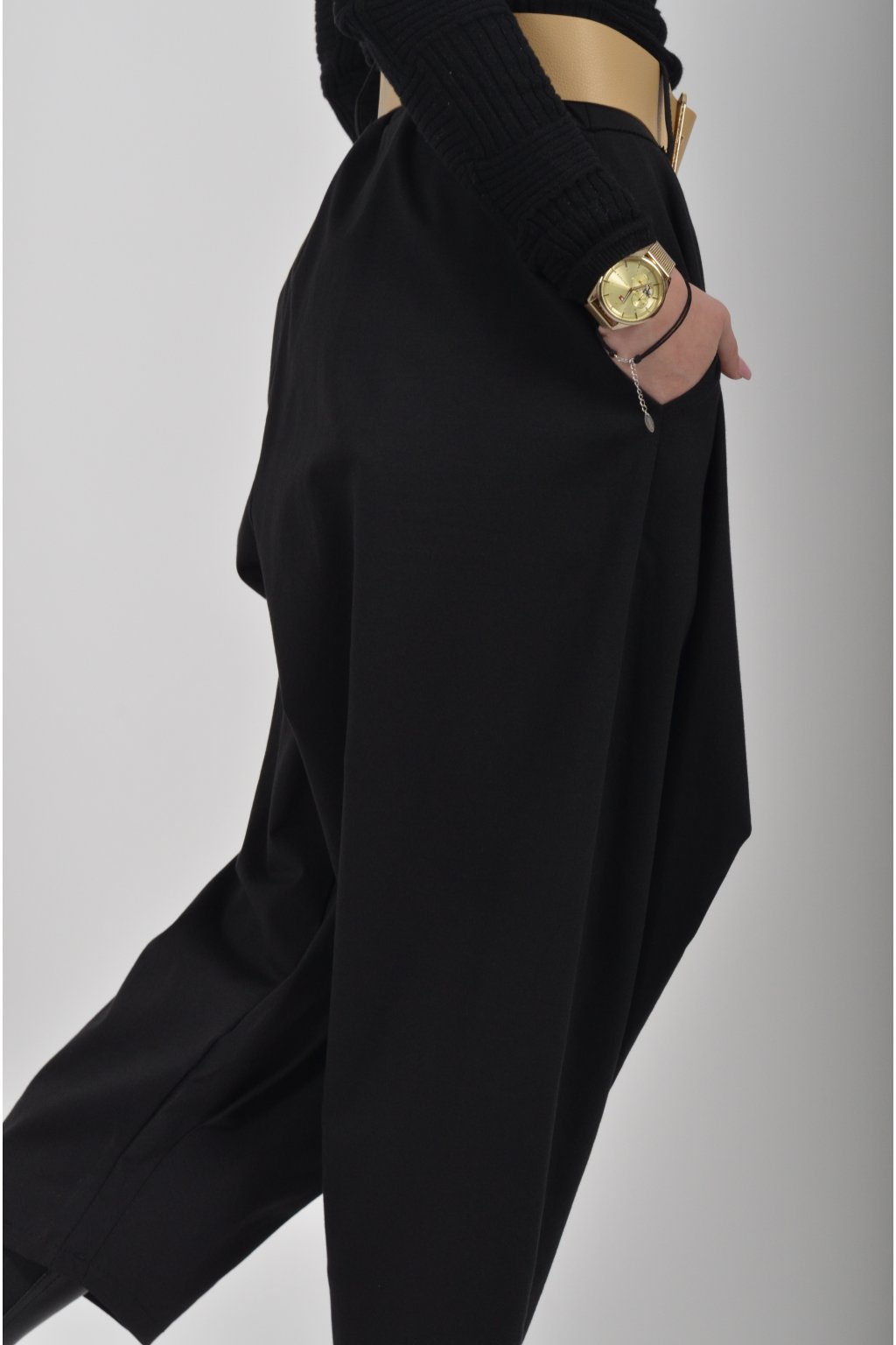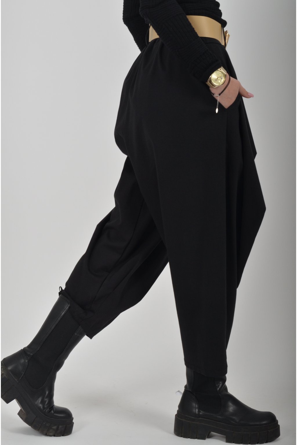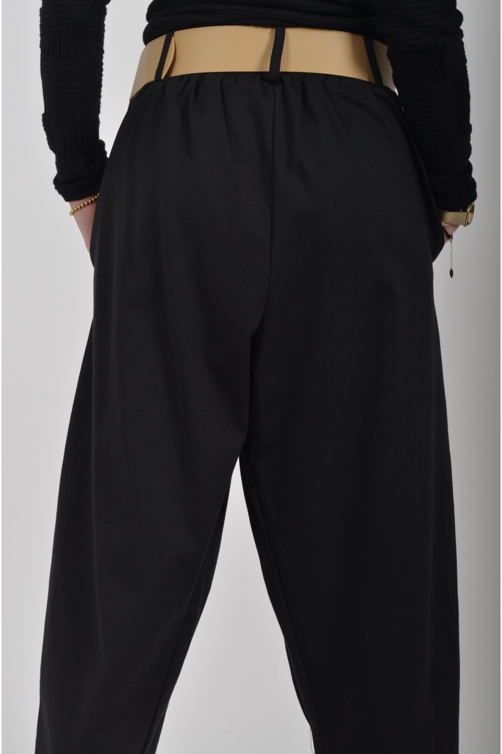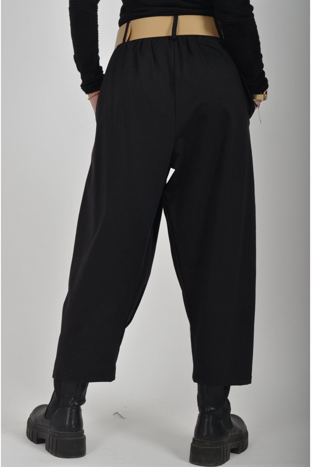 Jednobarevné kalhoty s překříženým pasem a kapsami na bocích. Krásně přizpůsobí postavě, díky podílu elastanu. Jsou vhodné pro každodenní nošení. V pase je zapracovaná guma. Ke kalhotám je jako dárek koženkový pásek, který lze odejmout a nosit na jiných kalhotách.