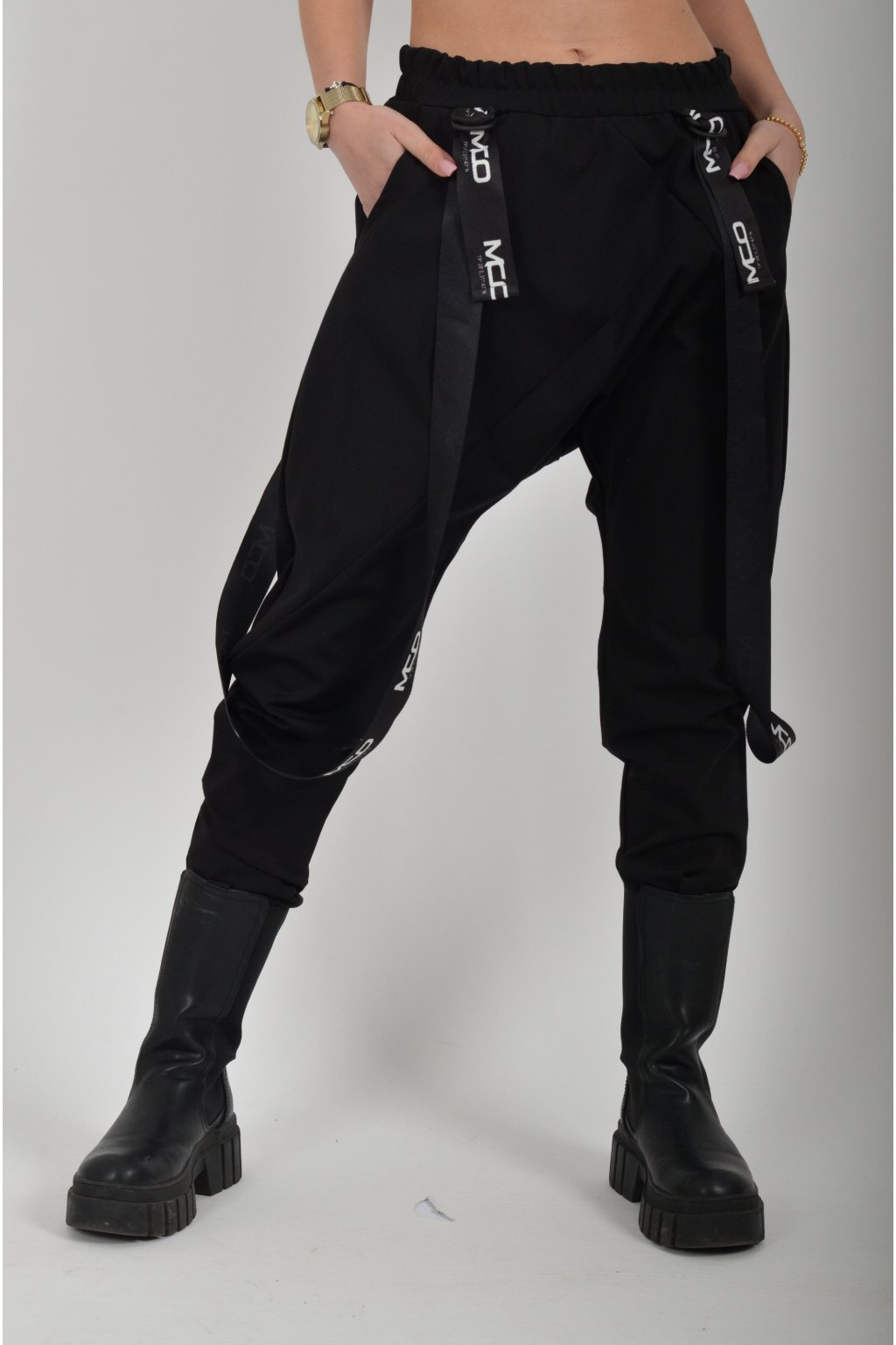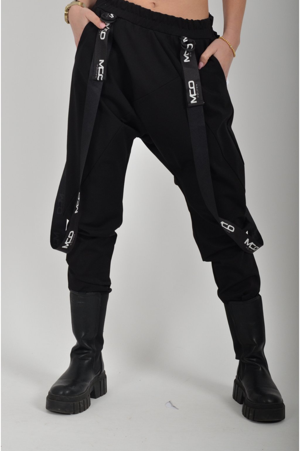 Kalhoty značky Miss City Official s nízkým sedem. Jsou vyrobené z velice příjemného, kvalitního a elastického materiálu. Na bocích mají kapsy. V pase mají zapracovanou gumu a jsou kratší.
