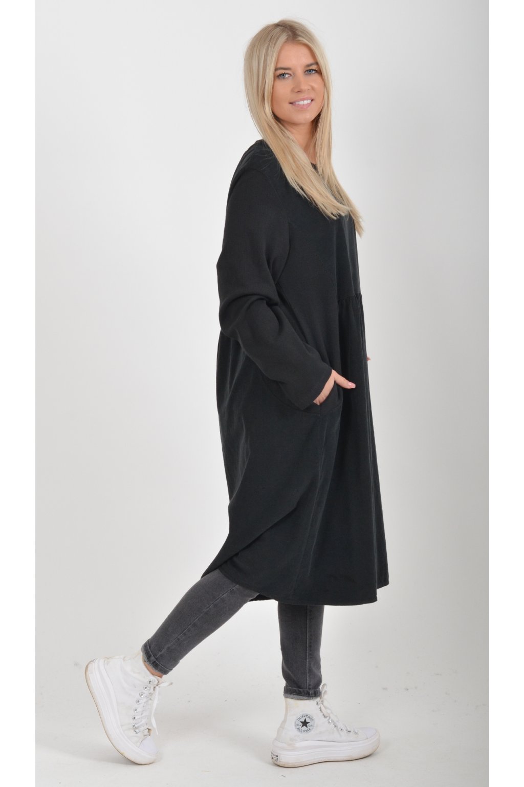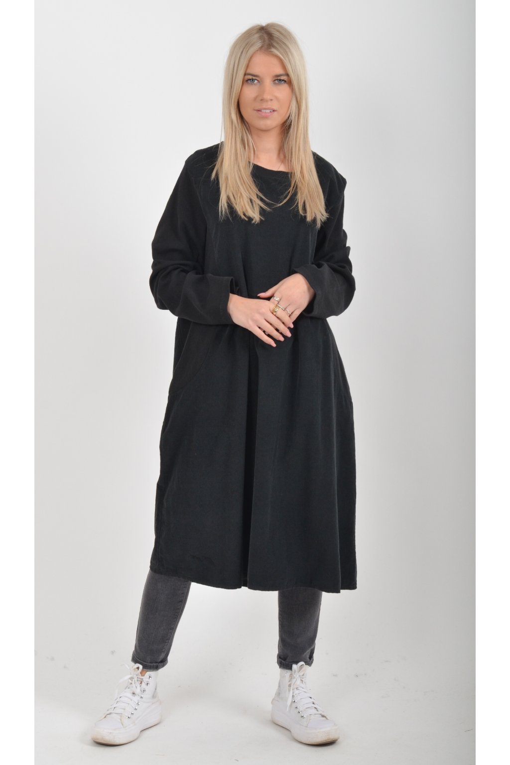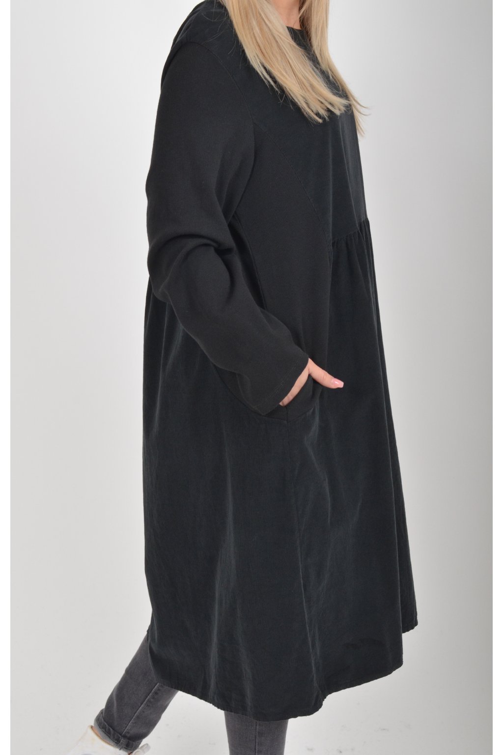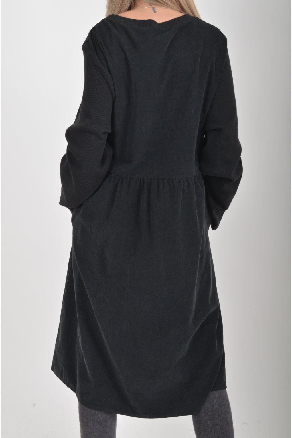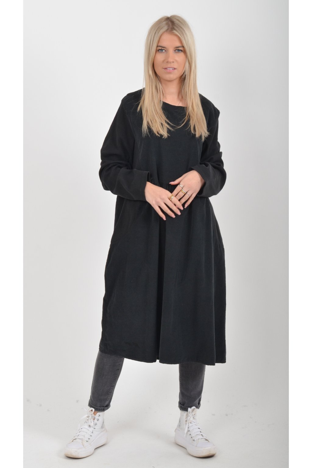 Jednobarevné manšestrové šaty s dlouhým rukávem a kapsami na bocích. Šaty jsou vyrobeny z velice příjemného a kvalitního materiálu. Jsou vhodné pro každodenní nošení a mají áčkový střih.