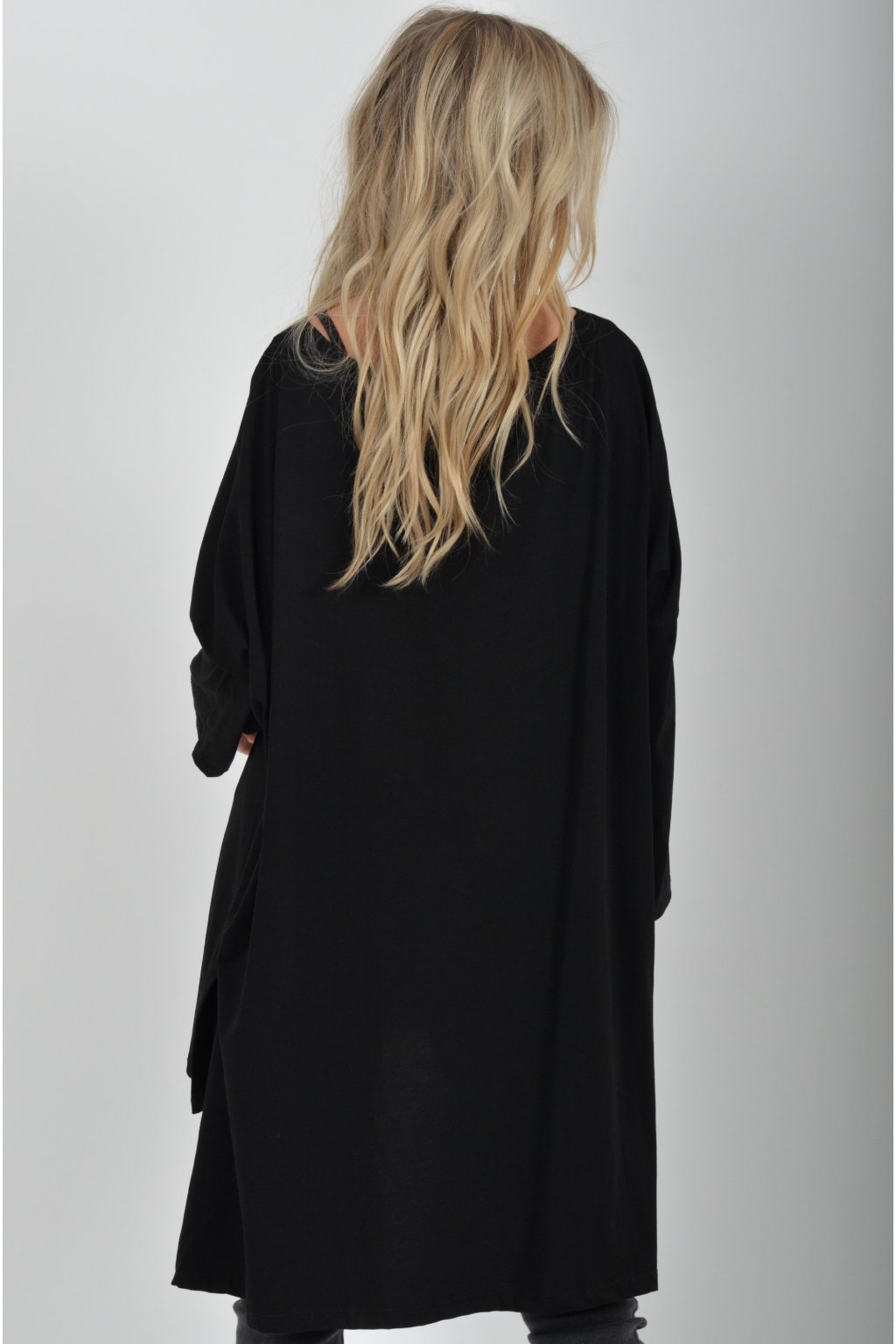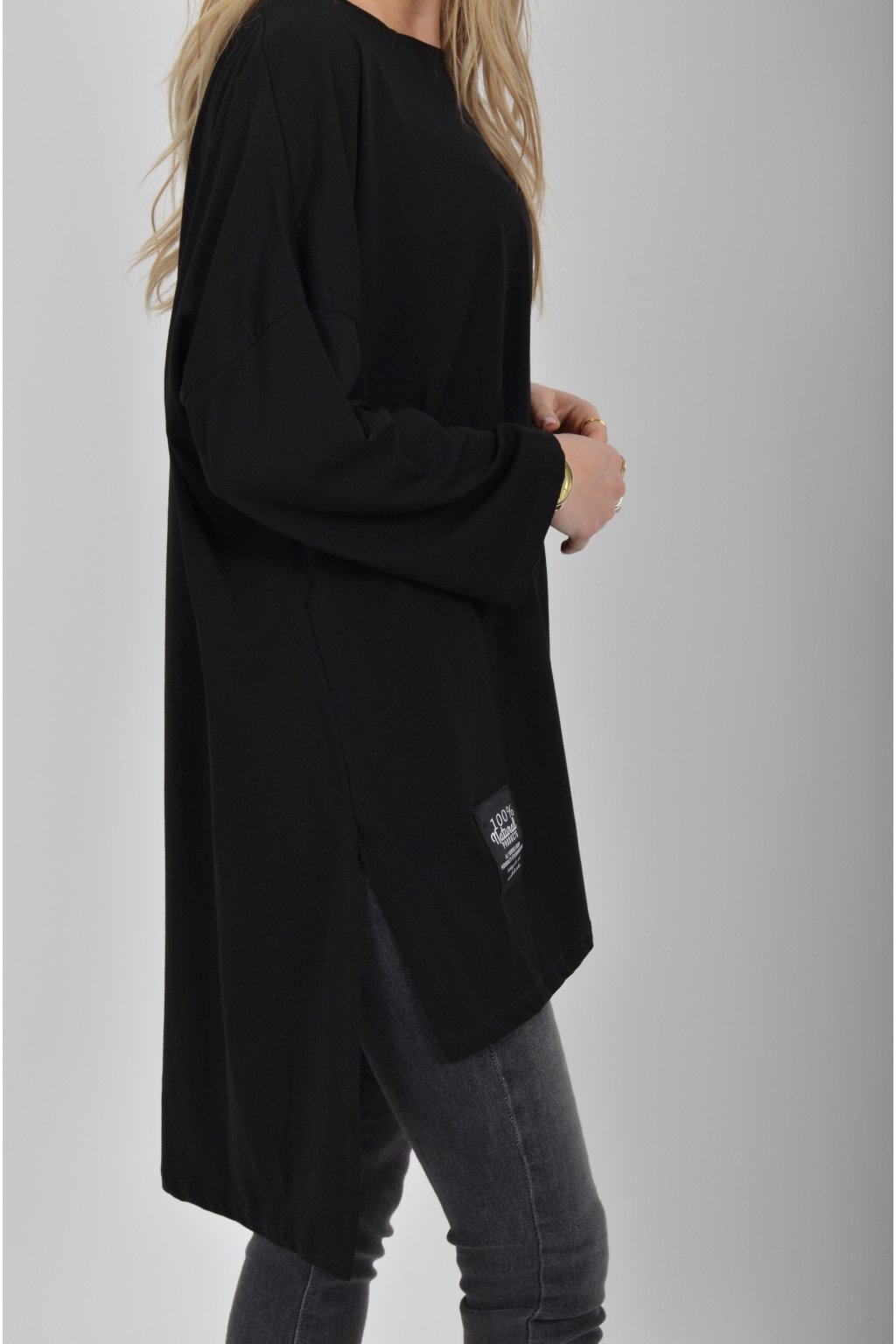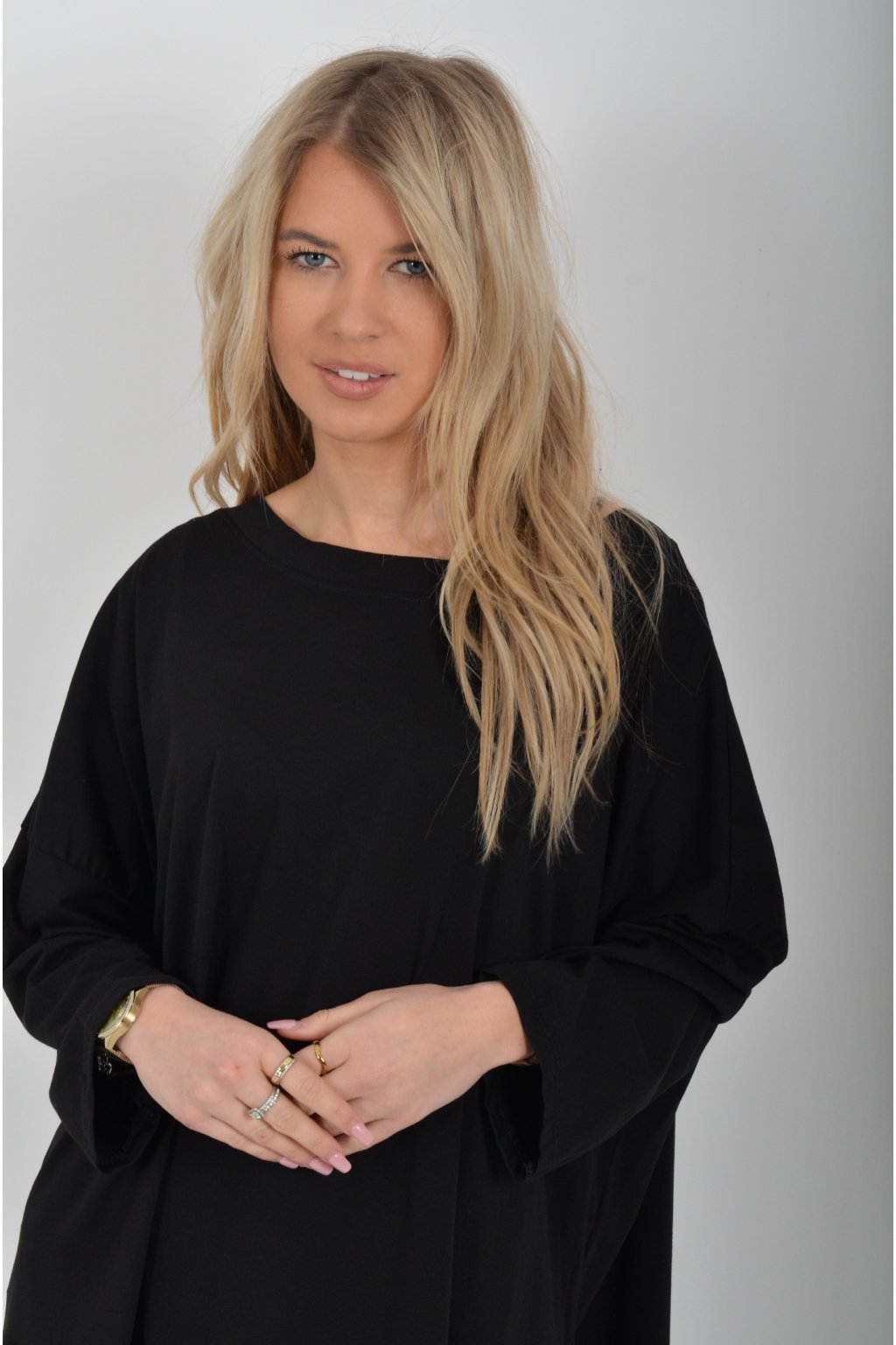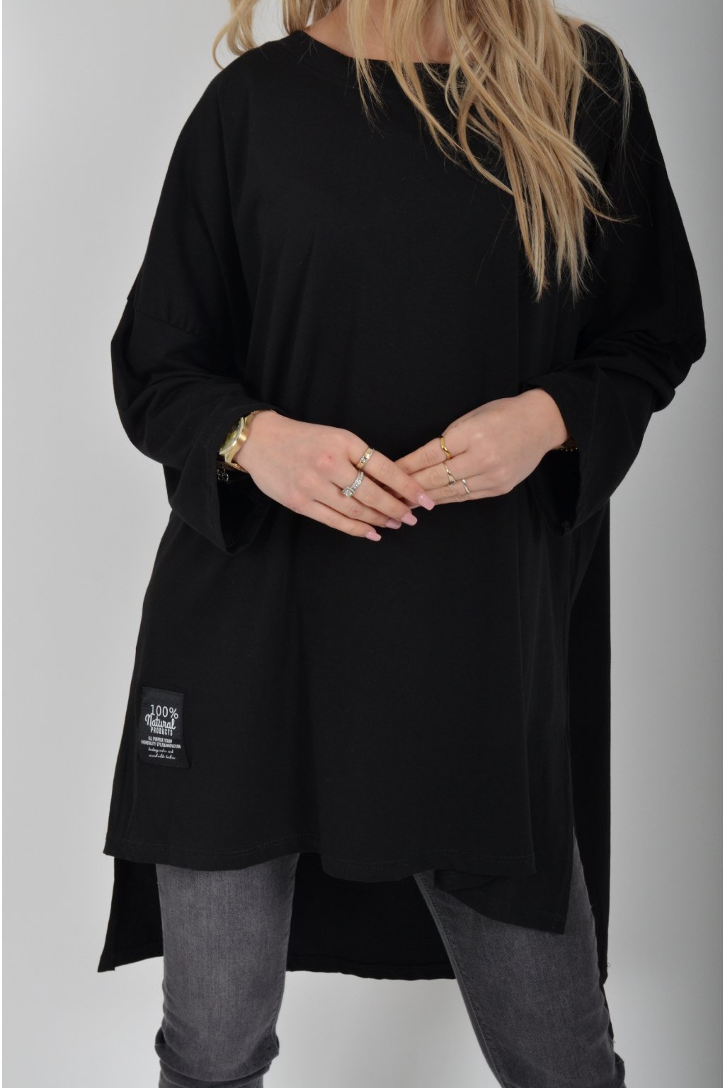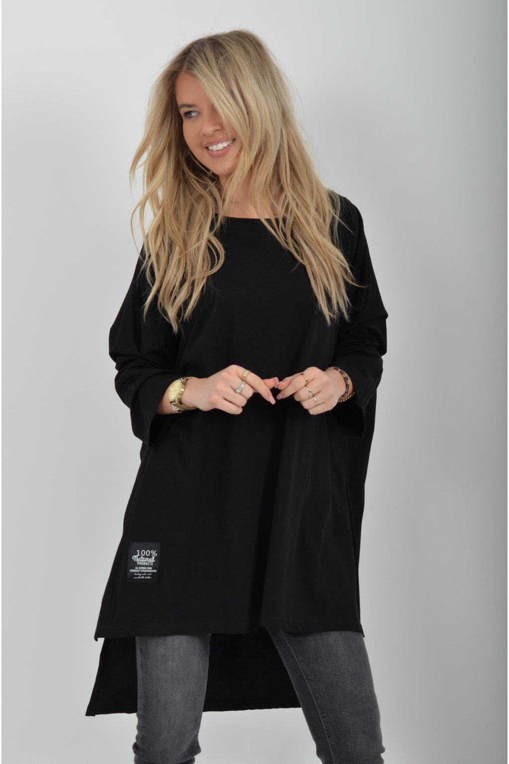 Jednobarevné oversize tričko s 3/4rukávem vyrobené z velice lehké, měkké a příjemné bavlny. Zadní část trička je delší než přední.