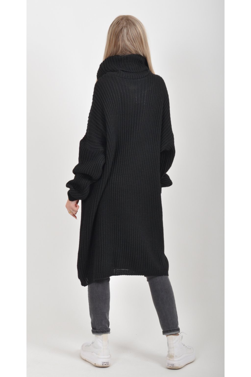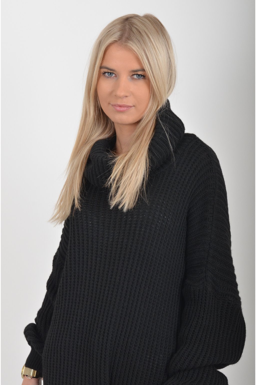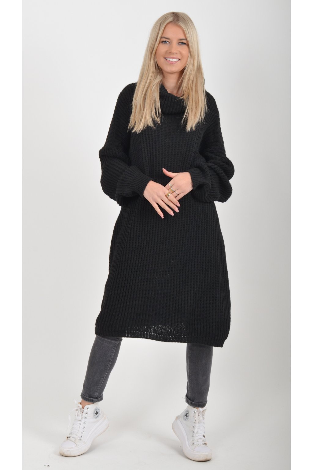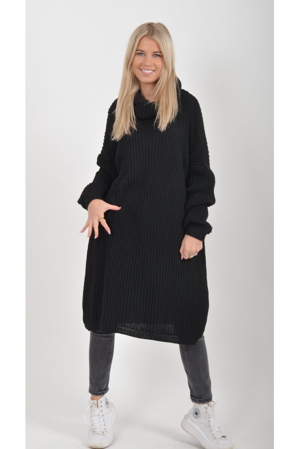 Jednobarevné pletené šaty s rolákem vyrobené z příjemného a nekousavého materiálu.
