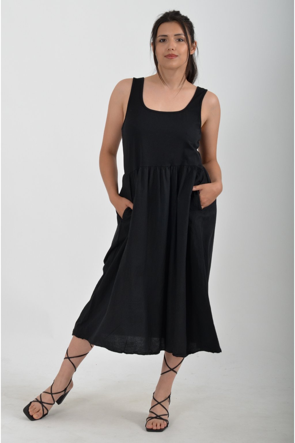 Jednobarevné šaty z velice příjemného a lehounkého materiálu. Na bocích mají kapsy a jsou vhodné pro nošení v letních dnech.