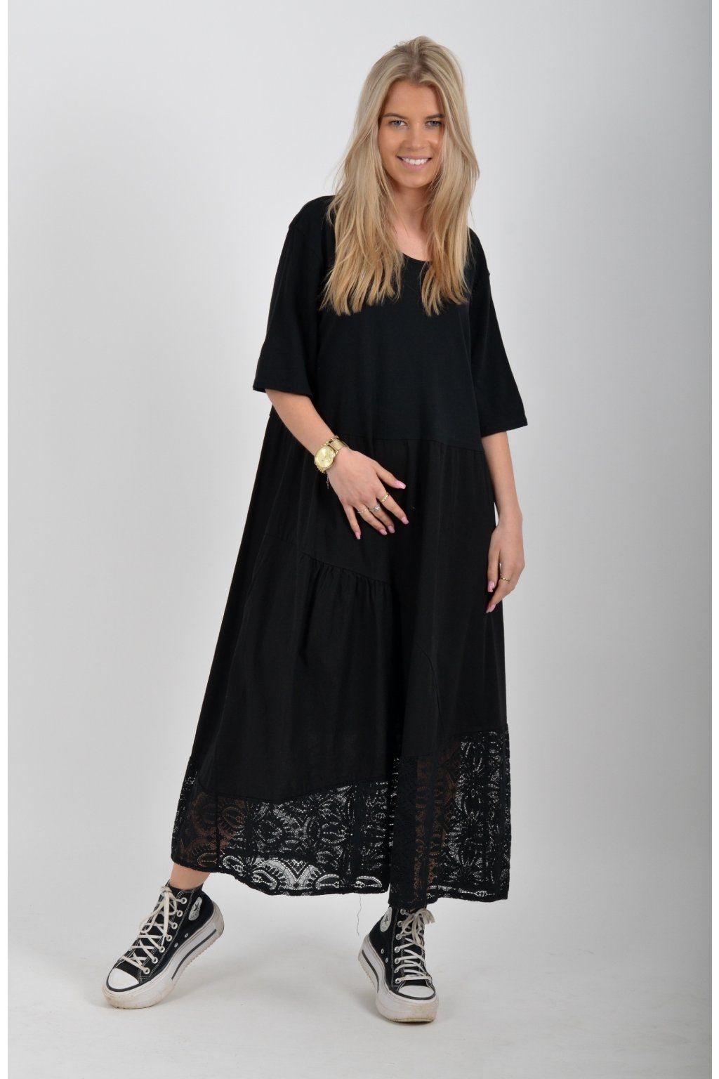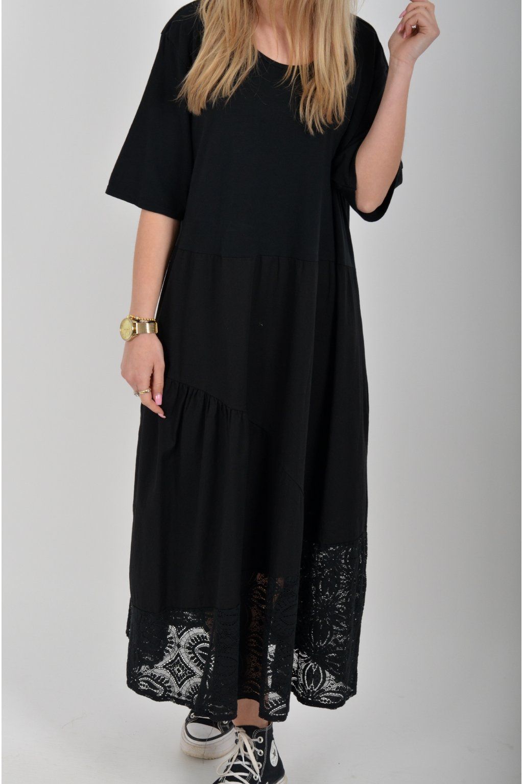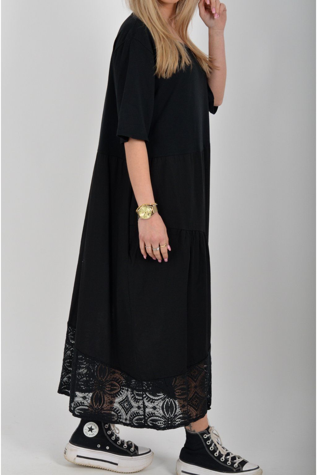 Zajímavé bavlněné šaty s krajkou ve spodní části. Šaty mají áčkový střih, na bocích kapsy a krátké rukávy. Jsou vyrobené z velice příjemného a lehce pružného materiálu.