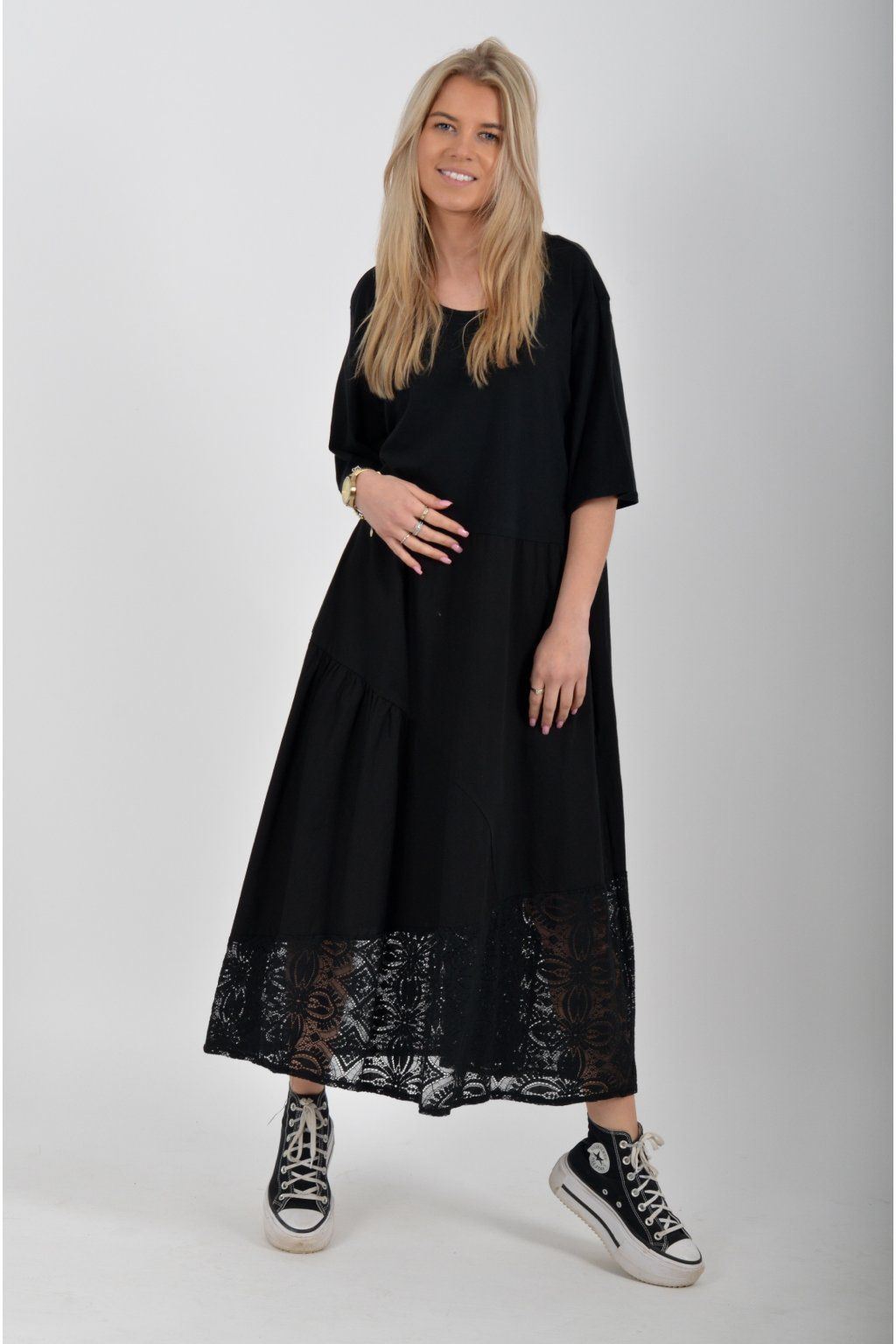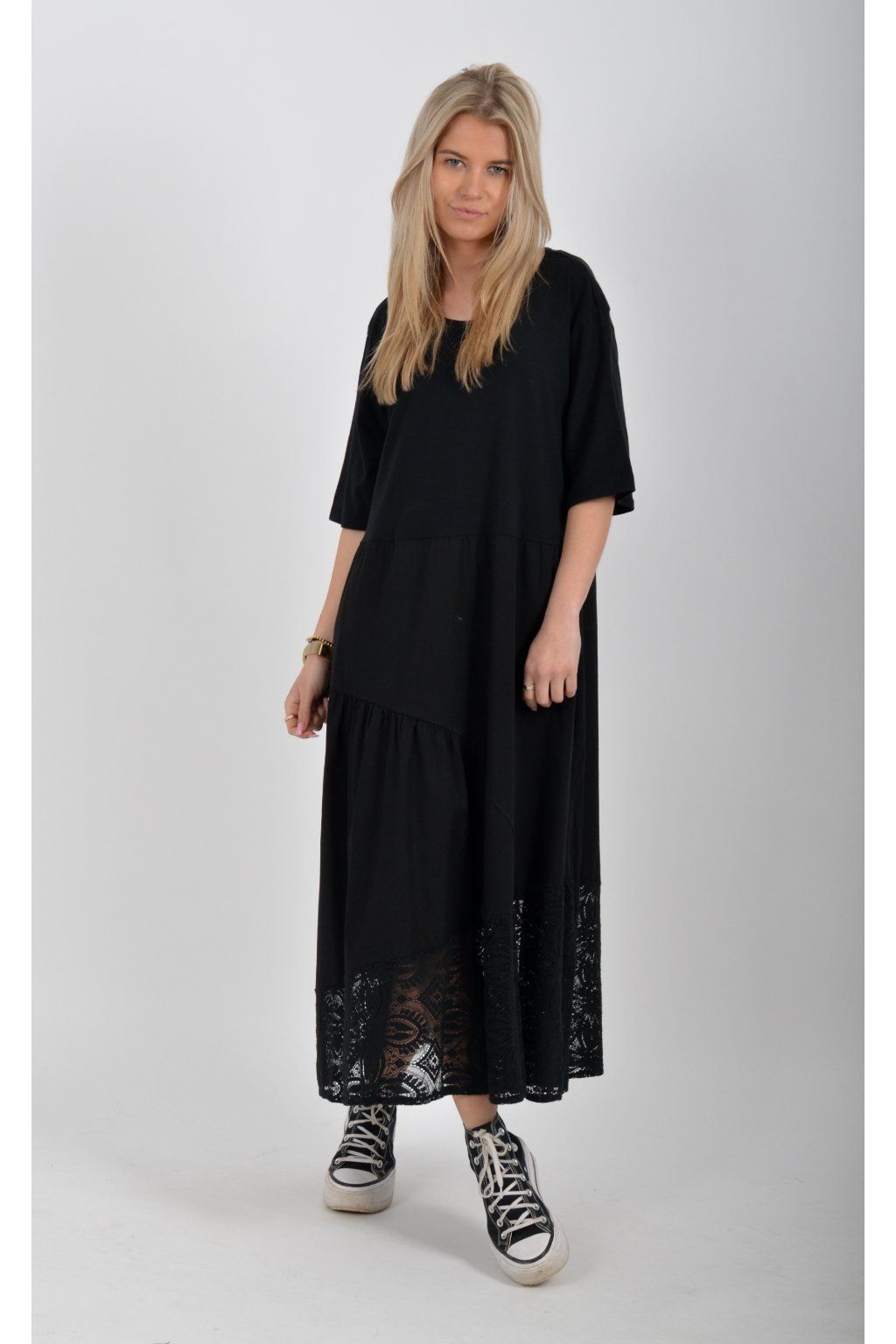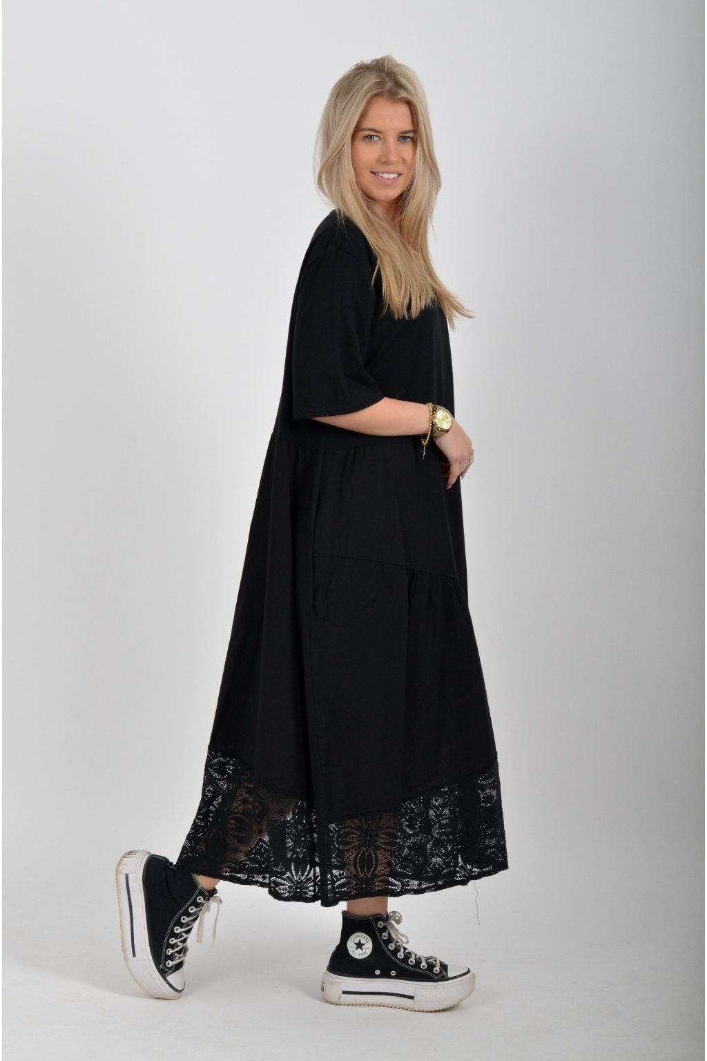 Zajímavé bavlněné šaty s krajkou ve spodní části. Šaty mají áčkový střih, na bocích kapsy a krátké rukávy. Jsou vyrobené z velice příjemného a lehce pružného materiálu.