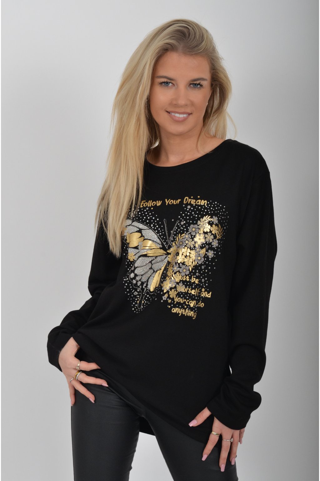 Elastické tričko vyrobené z tureckého prémiového materiálu s dlouhým rukávem a aplikací v přední části.