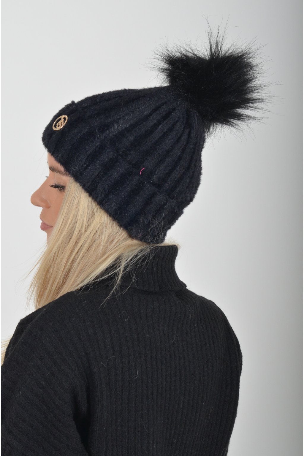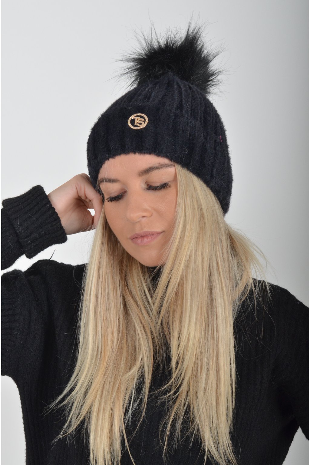 Zimní kulich z příjemného nekousavého materiálu s chlupatou bambulkou.