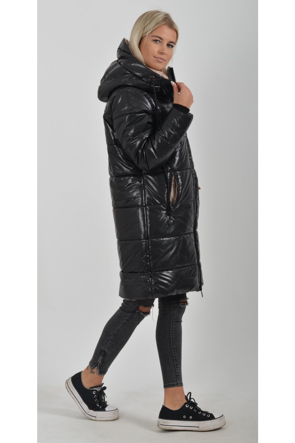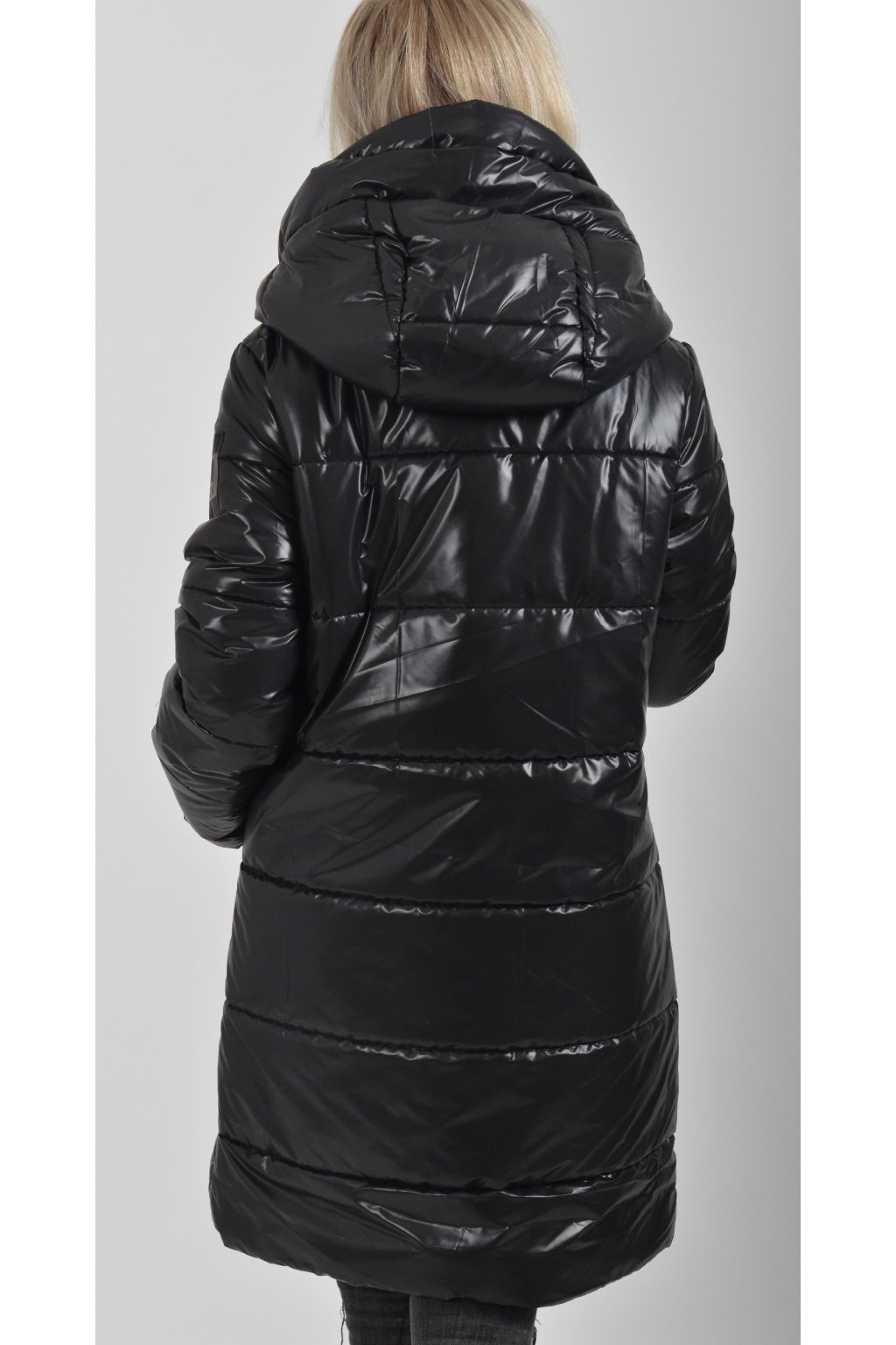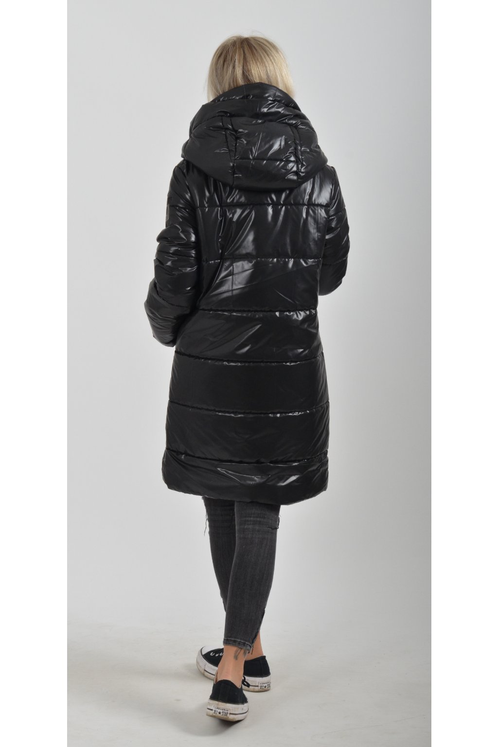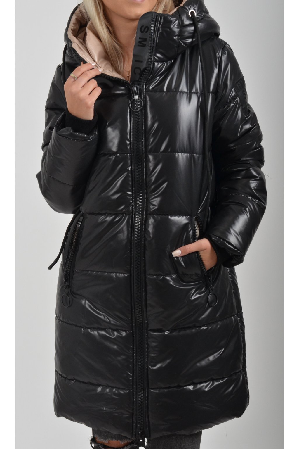 Prošívaný zimní kabát rovného střihu s kapucí a kapsami v přední části. Zip u kabátu má dva jezdce. Je z příjemného a měkkého materiálu. Výplň bundy je duté vlákno.