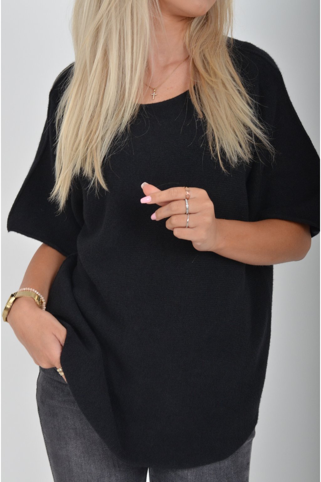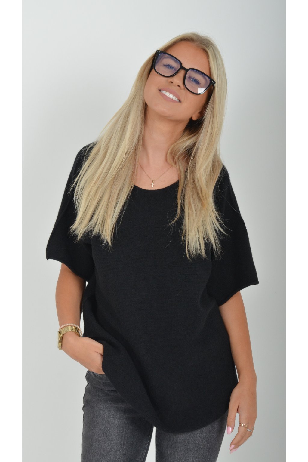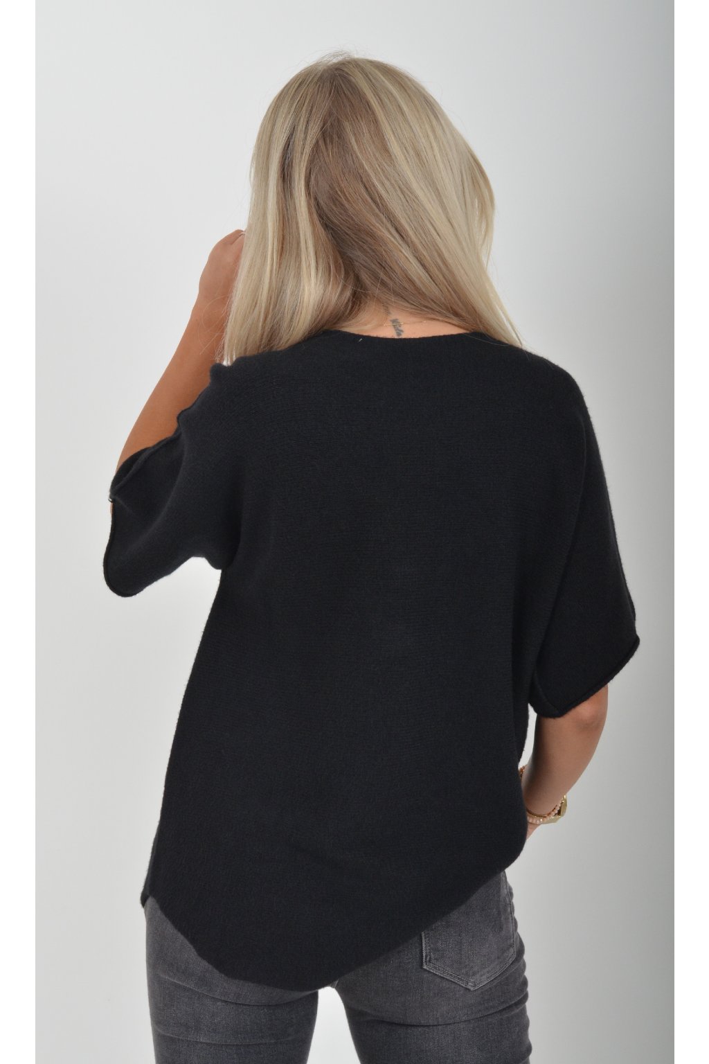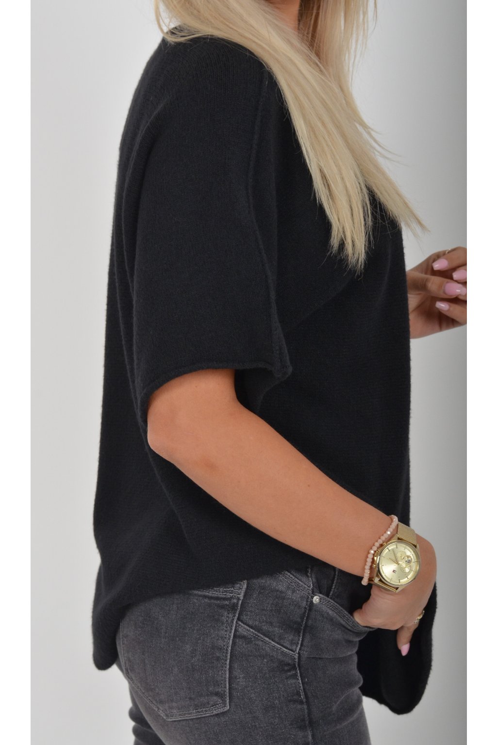 Tenký svetr s krátkým rukávem z nekousavého, velice jemného a příjemného materiálu.