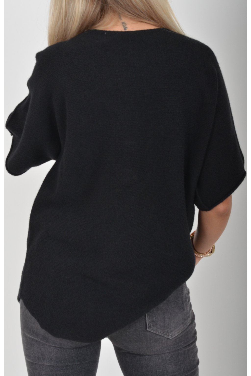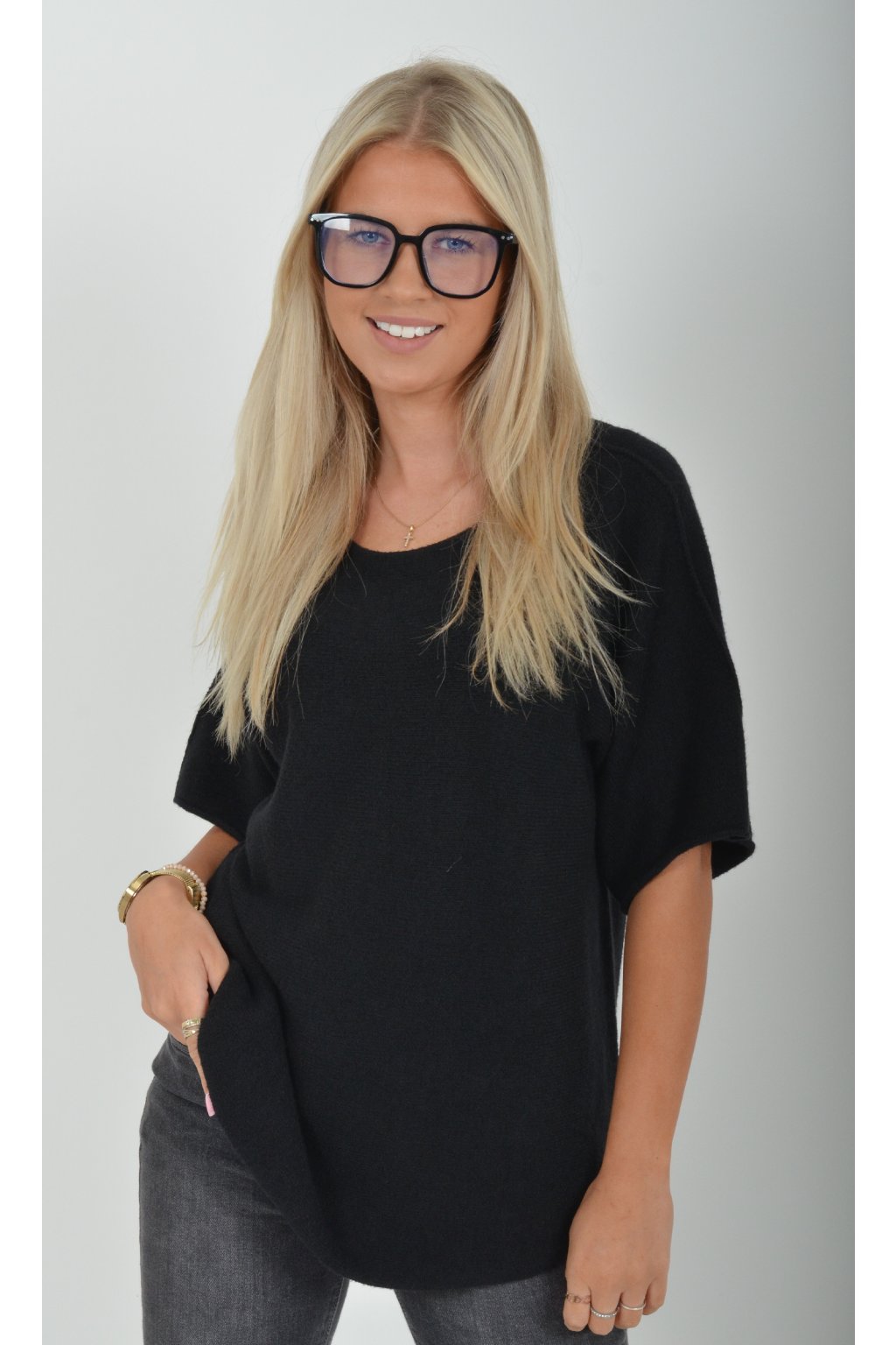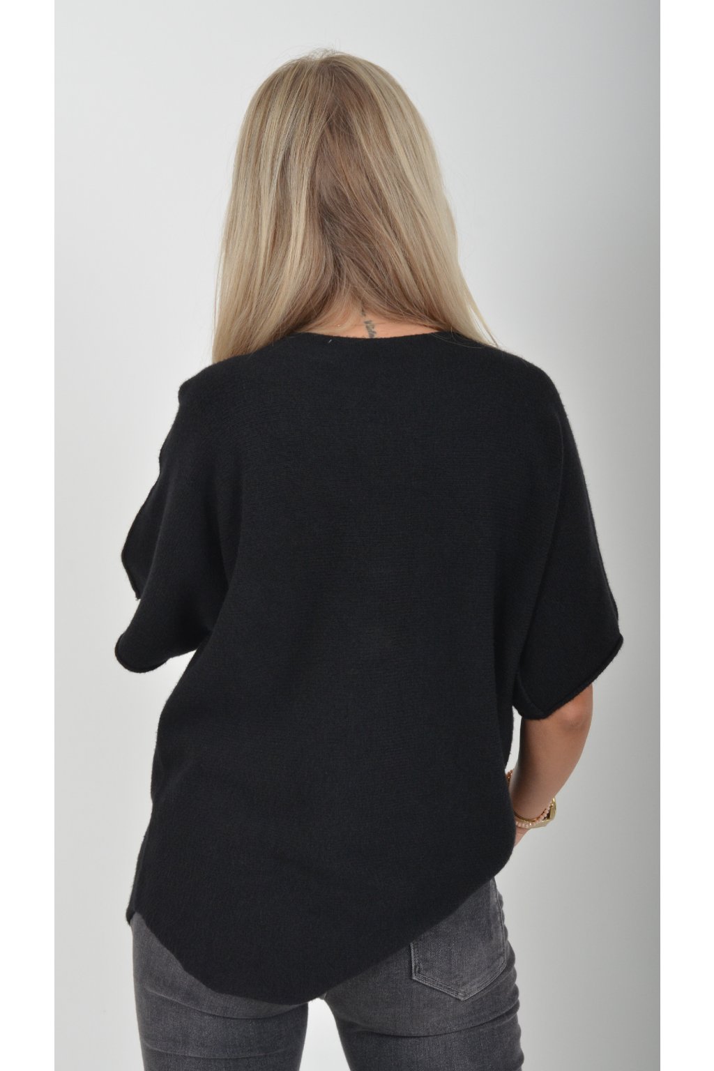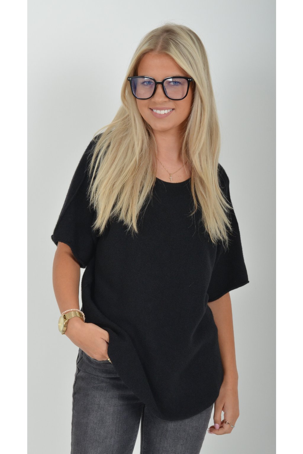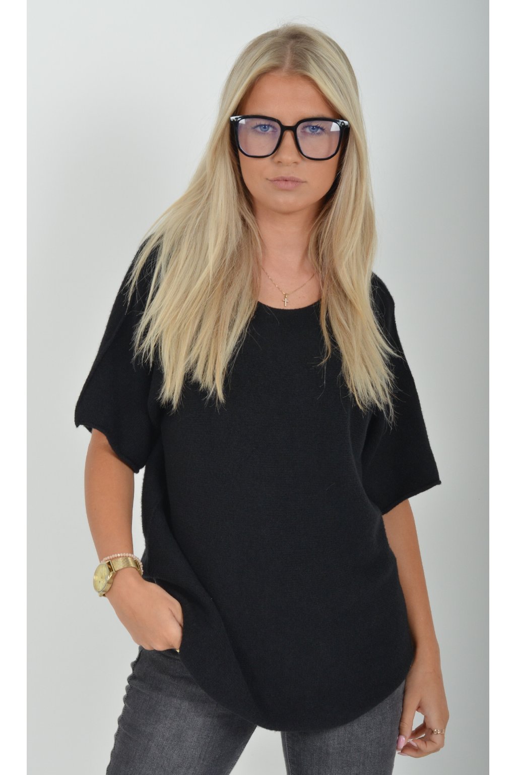 Tenký svetr s krátkým rukávem z nekousavého, velice jemného a příjemného materiálu.