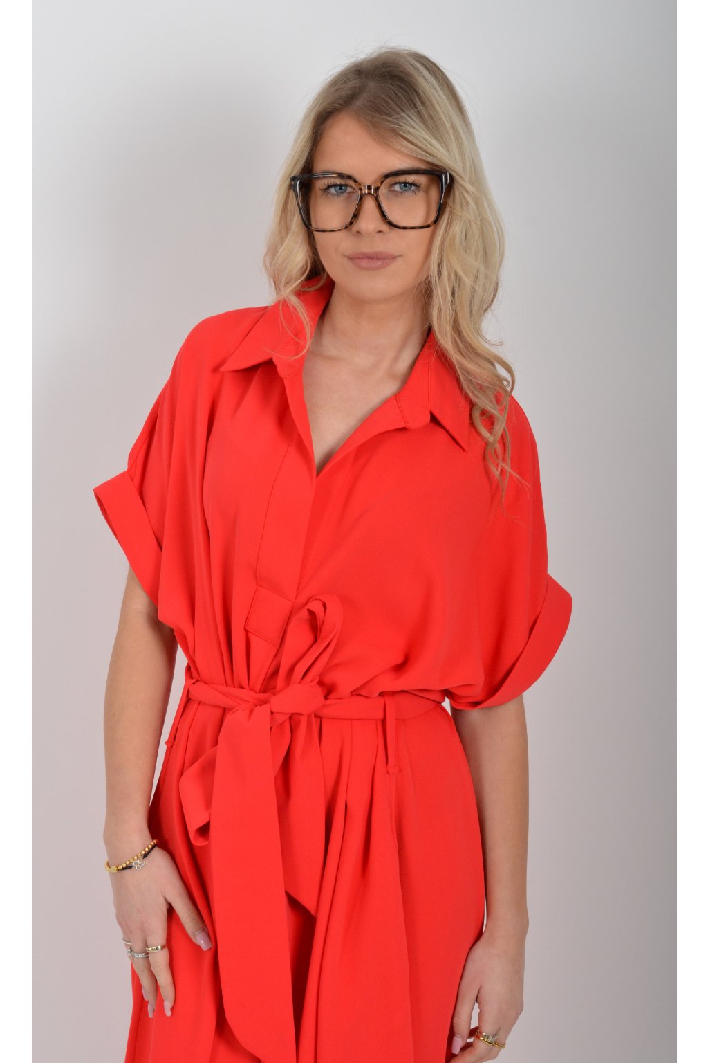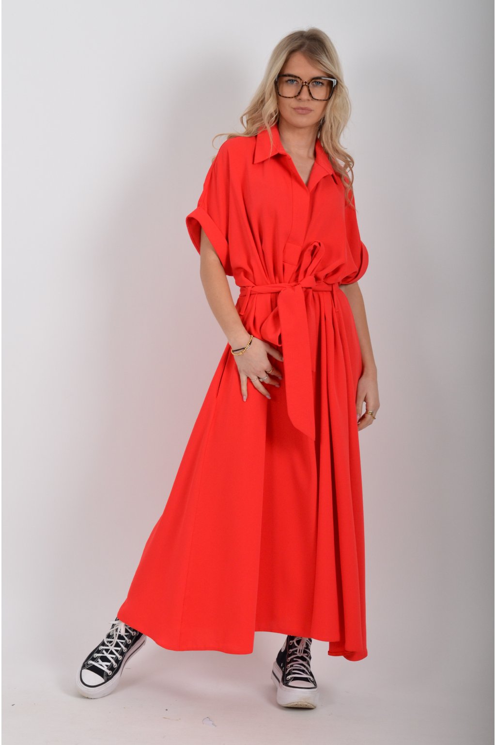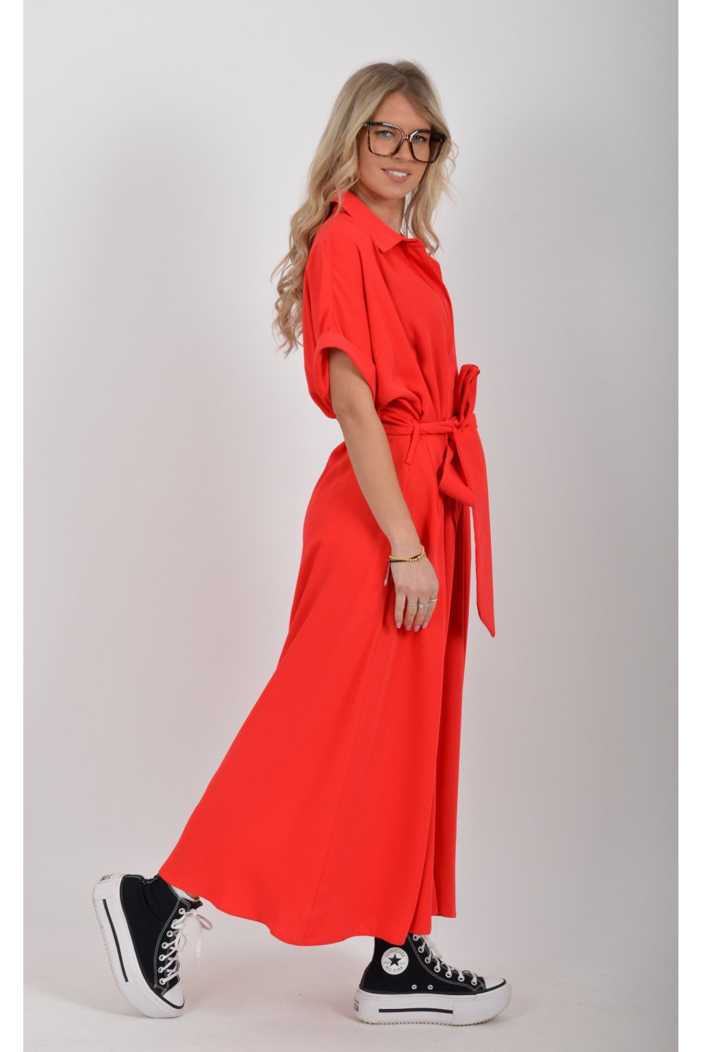 Luxusní šaty od značky La Furia. Mají košilový áčkový střih s rozevlátou sukní, která je v zadní části mírně delší. Šaty mají na bocích kapsy. Jsou vyrobené z velice příjemného prémiového materiálu.