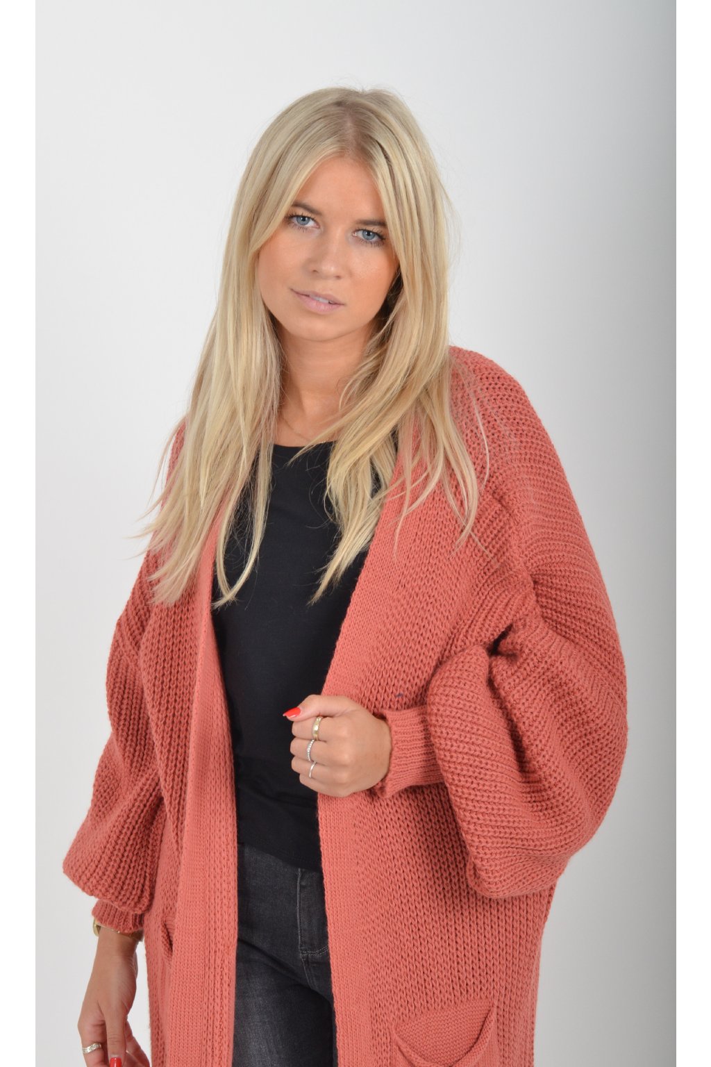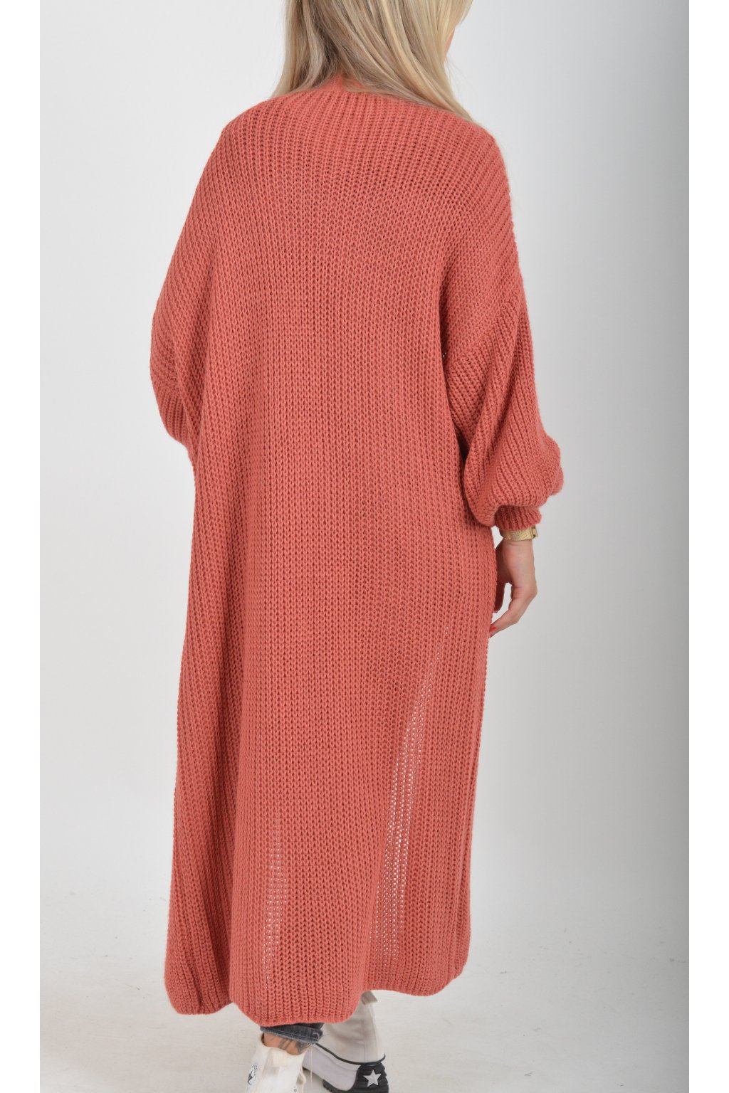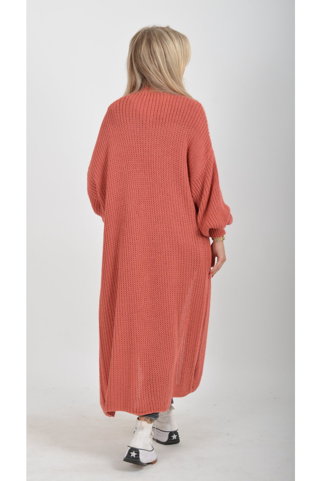 Dlouhý svetrový kardigan z velice jemného , příjemného a nekousavého materiálu. V přadní části má kapsy. rukávy má do nápletu.