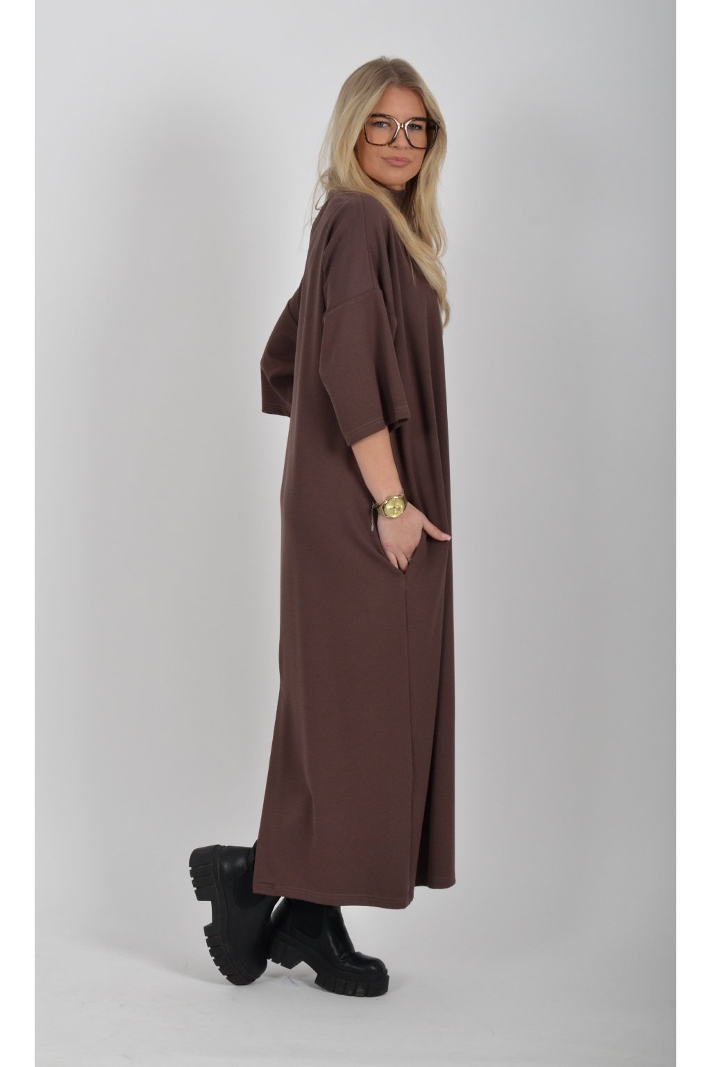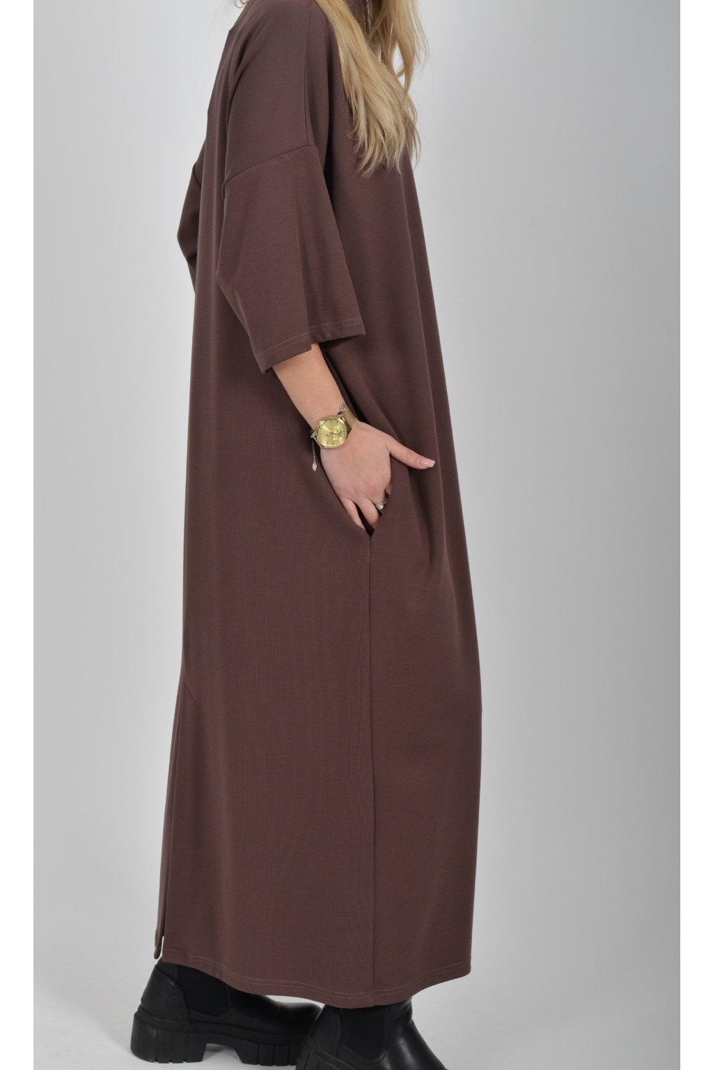 Dlouhé šaty značky Miss City Official. Šaty lehce áčkový střih, ve spodní části rozparek a vrchní část je do roláčku. . Jsou vyrobené z velice příjemného, kvalitního a elastického materiálu. Na bocích mají kapsy.