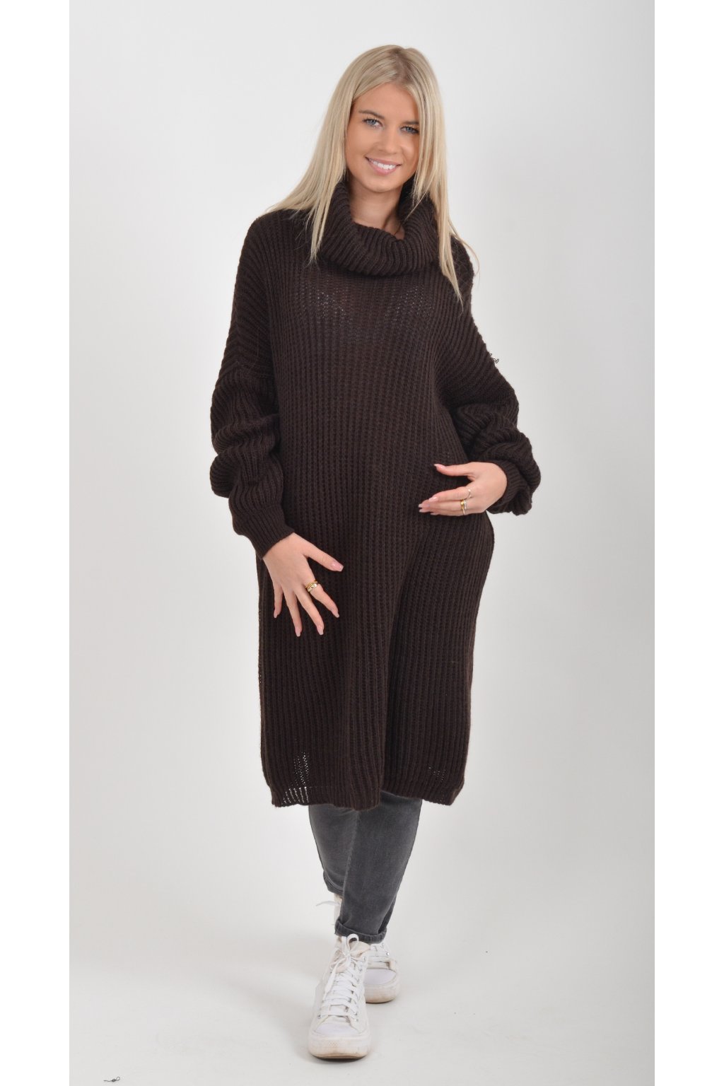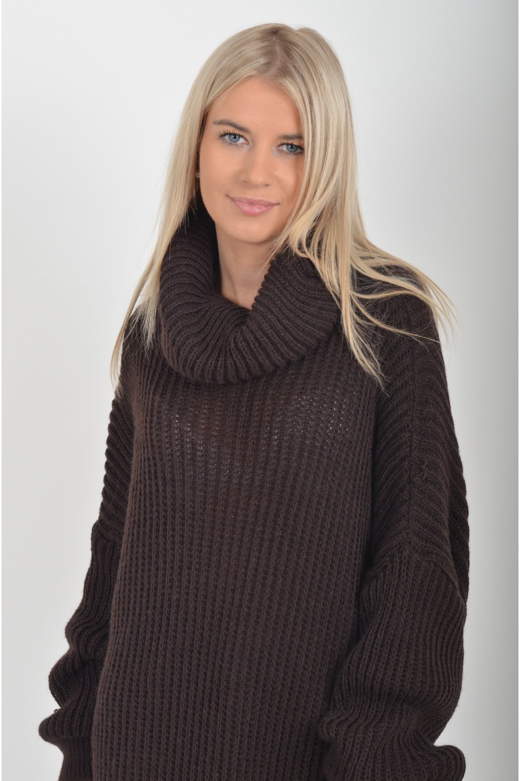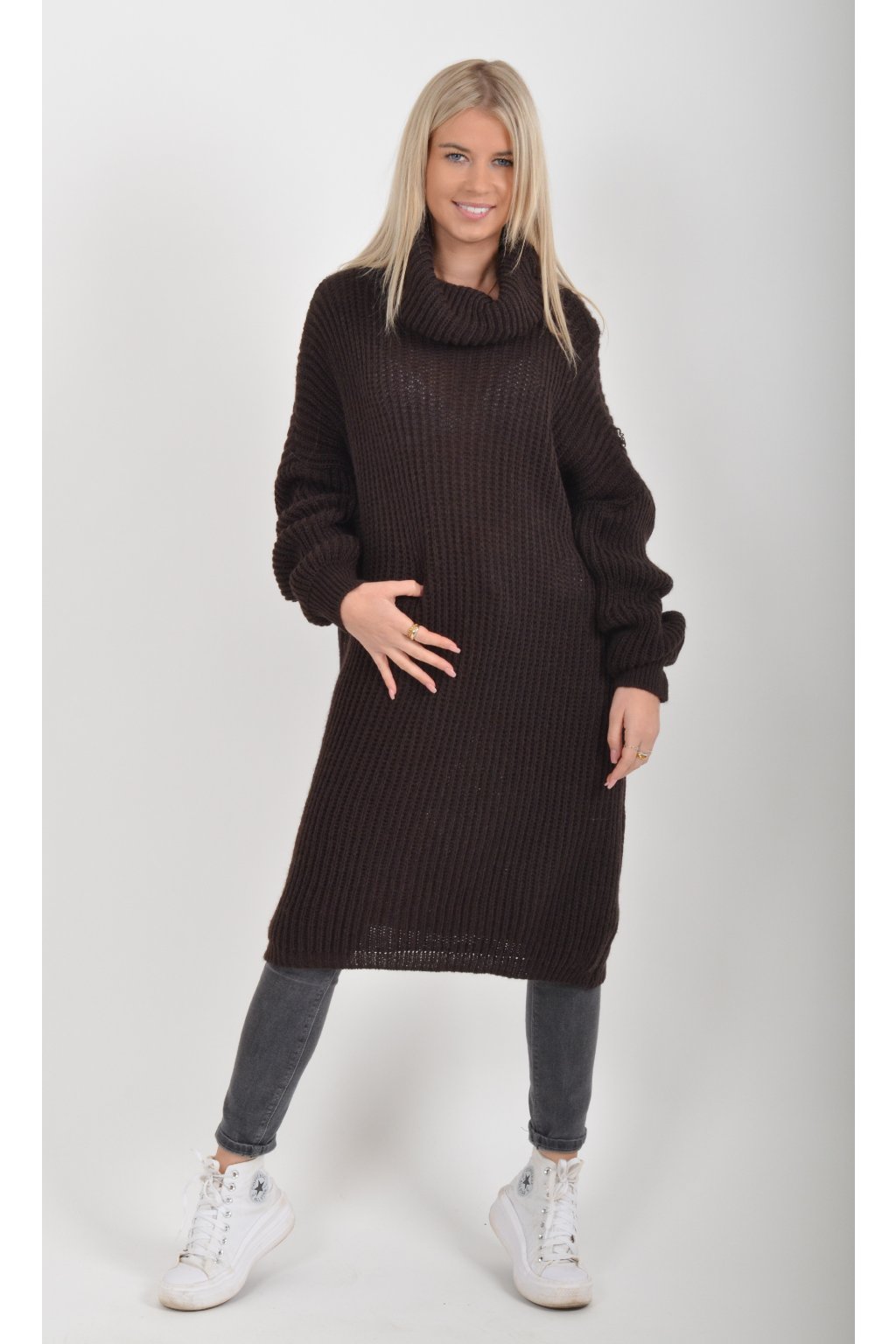 Jednobarevné pletené šaty s rolákem vyrobené z příjemného a nekousavého materiálu.