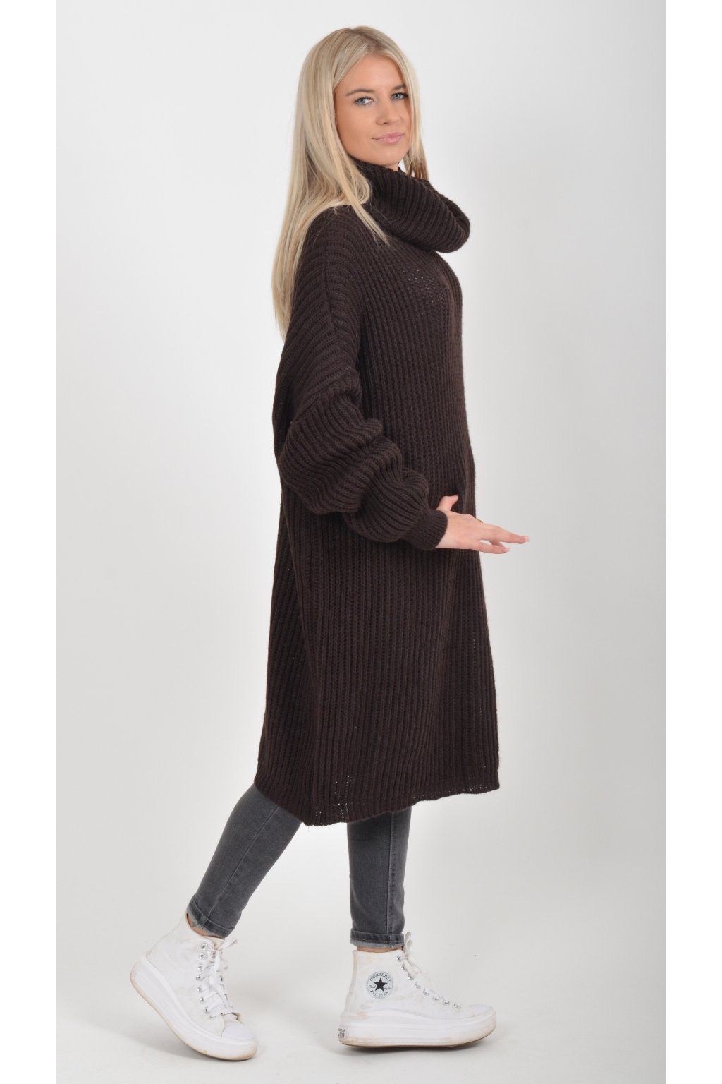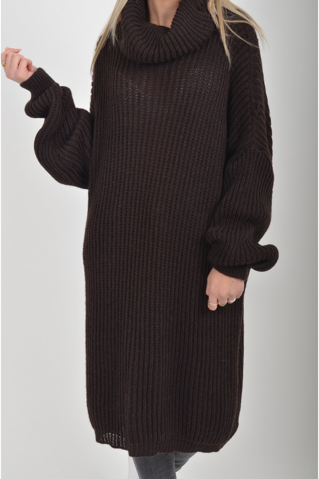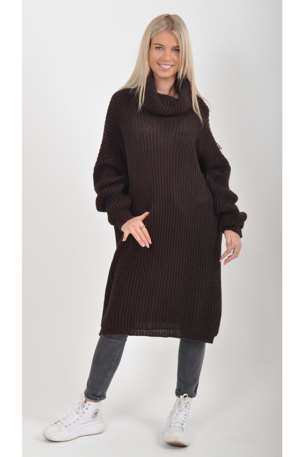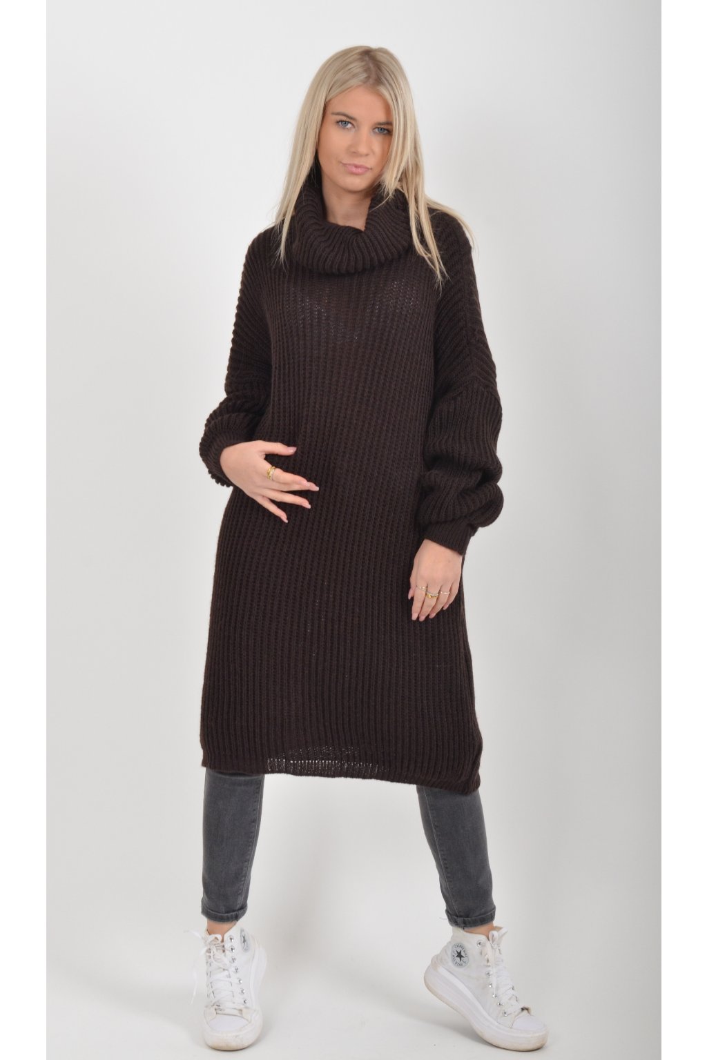 Jednobarevné pletené šaty s rolákem vyrobené z příjemného a nekousavého materiálu.