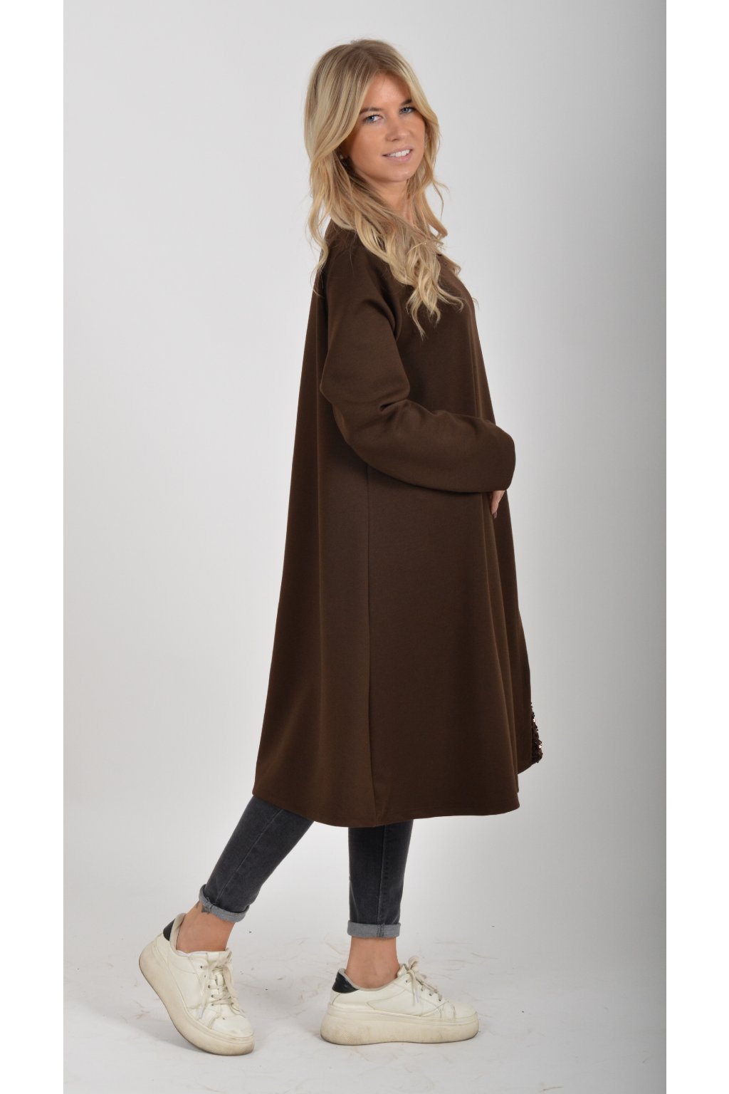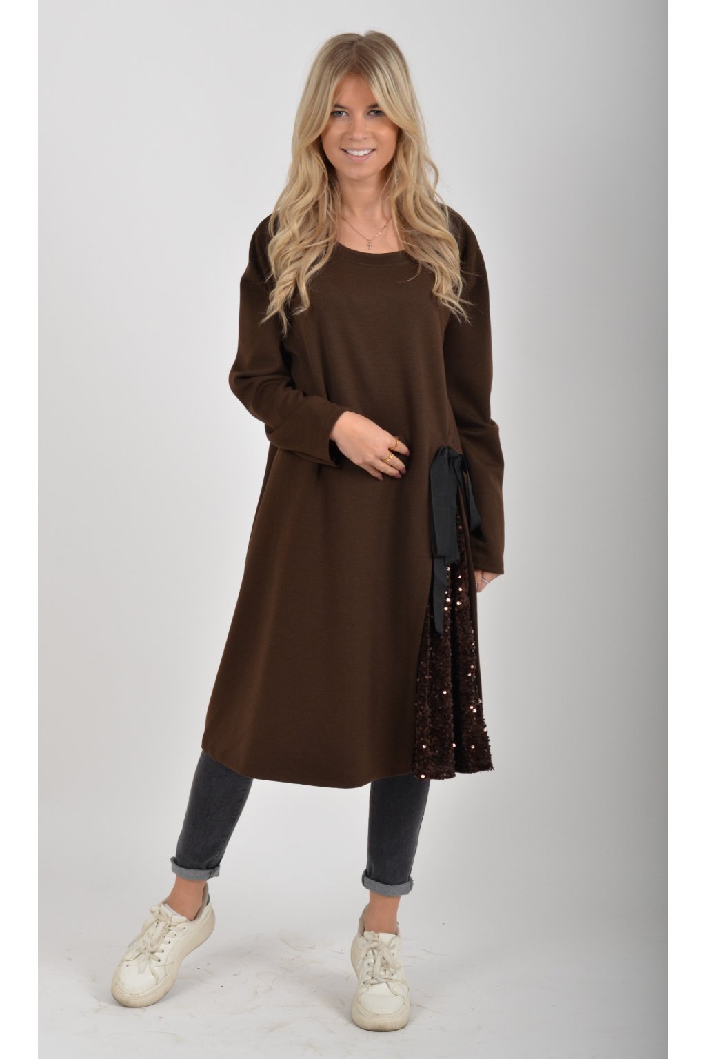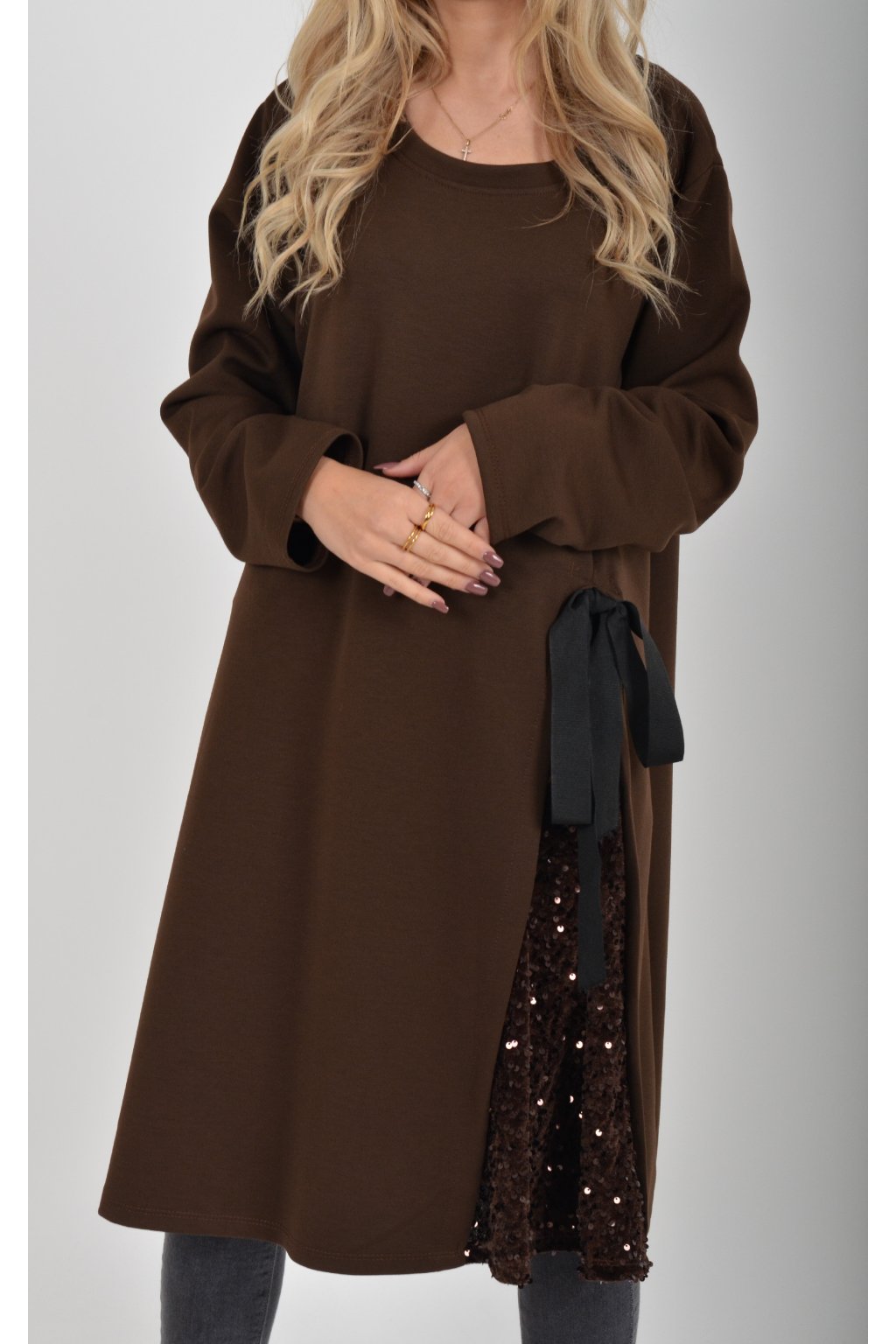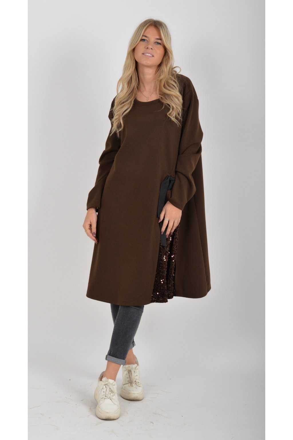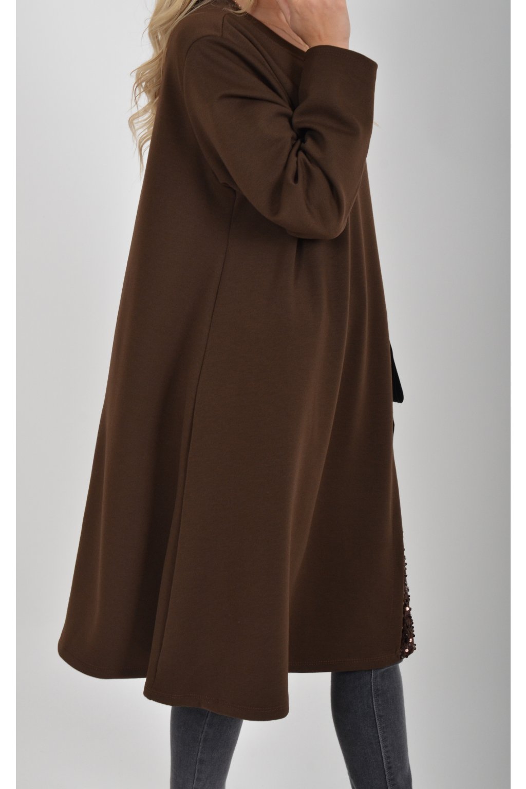 Mikinové šaty zdobené flitry ve spodní části. Šaty mají áčkový střih a jsou z velice příjemného materiálu. Šaty jsou bez kapes.