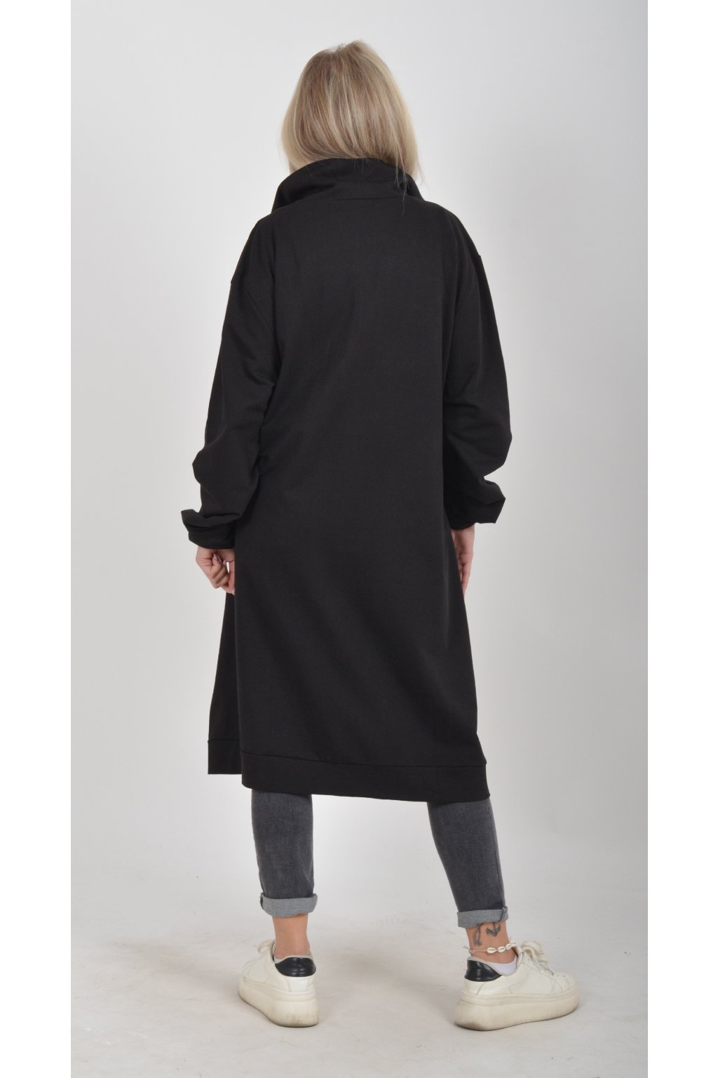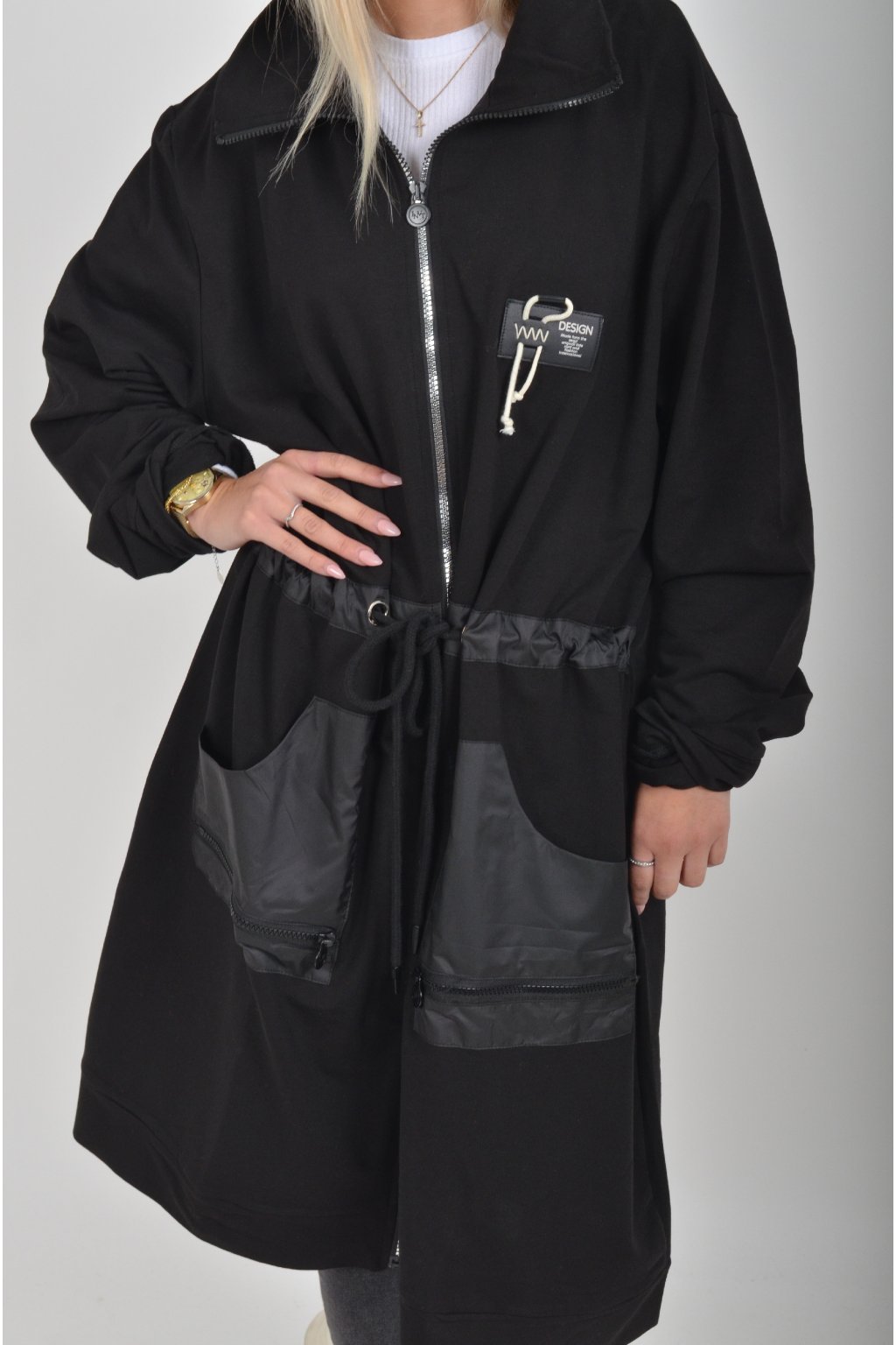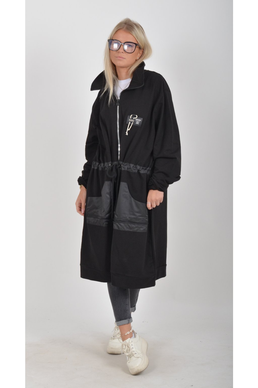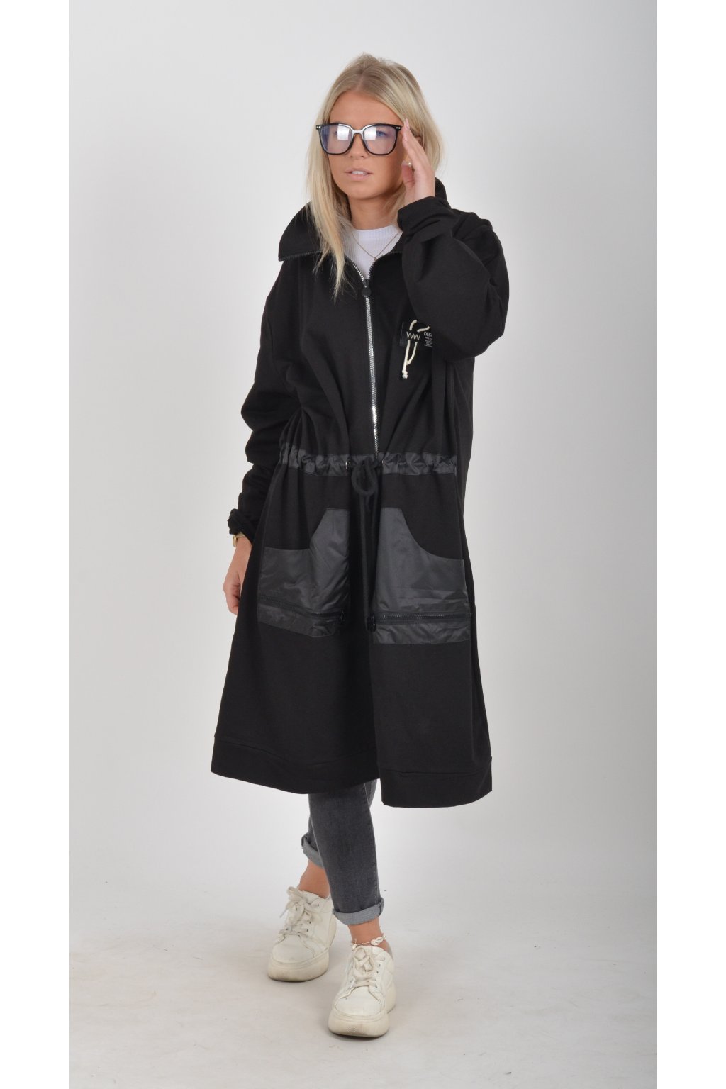 Dlouhá mikinová bunda lehce áčkového střihu se zapínáním na zip. V pase je zapracovaná šňůrka pro libovolné stažená. V přední části má kapsy, které jsou ze šusťákoviny. Je vyrobena z velice příjemné a kvalitní turecké bavlny.