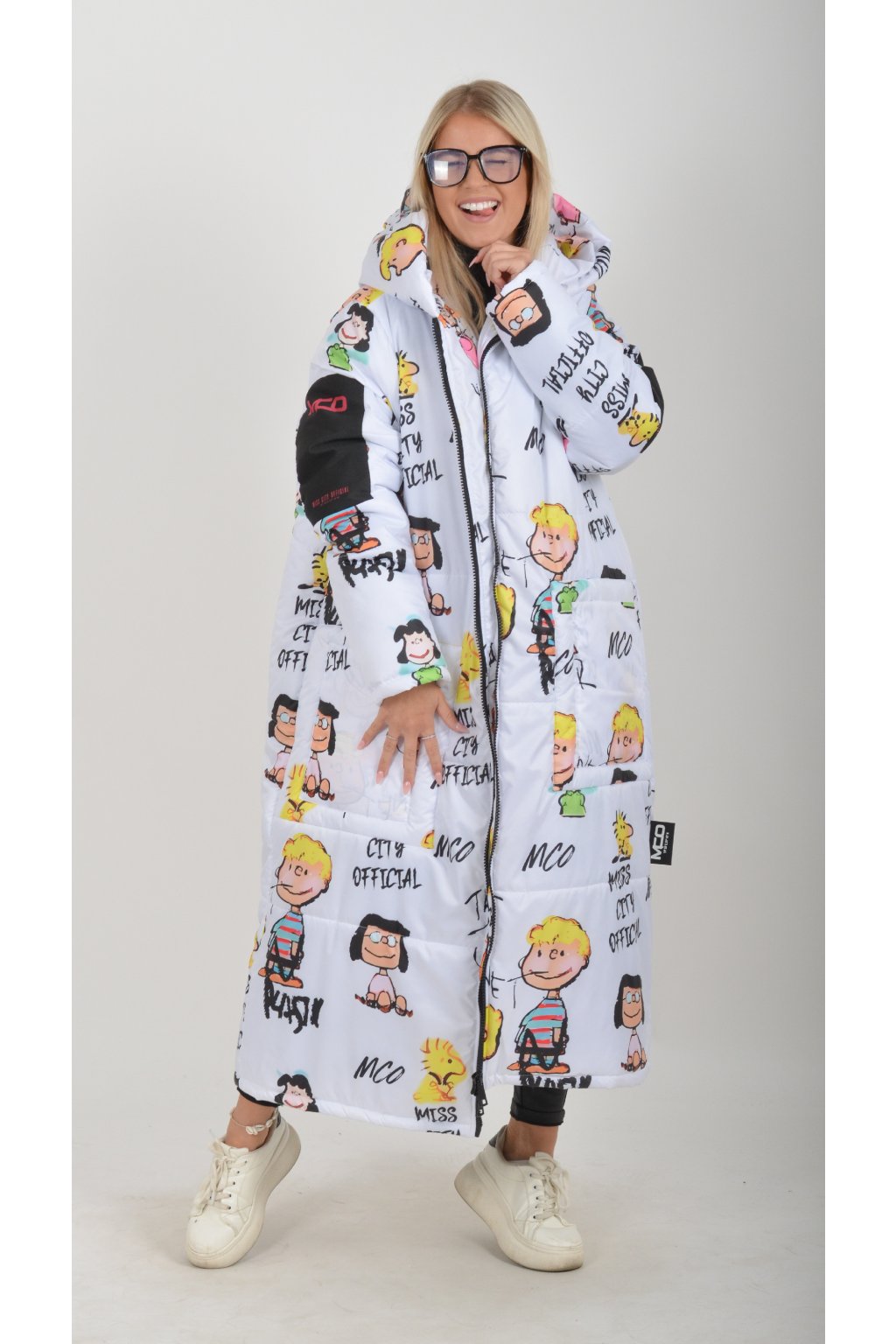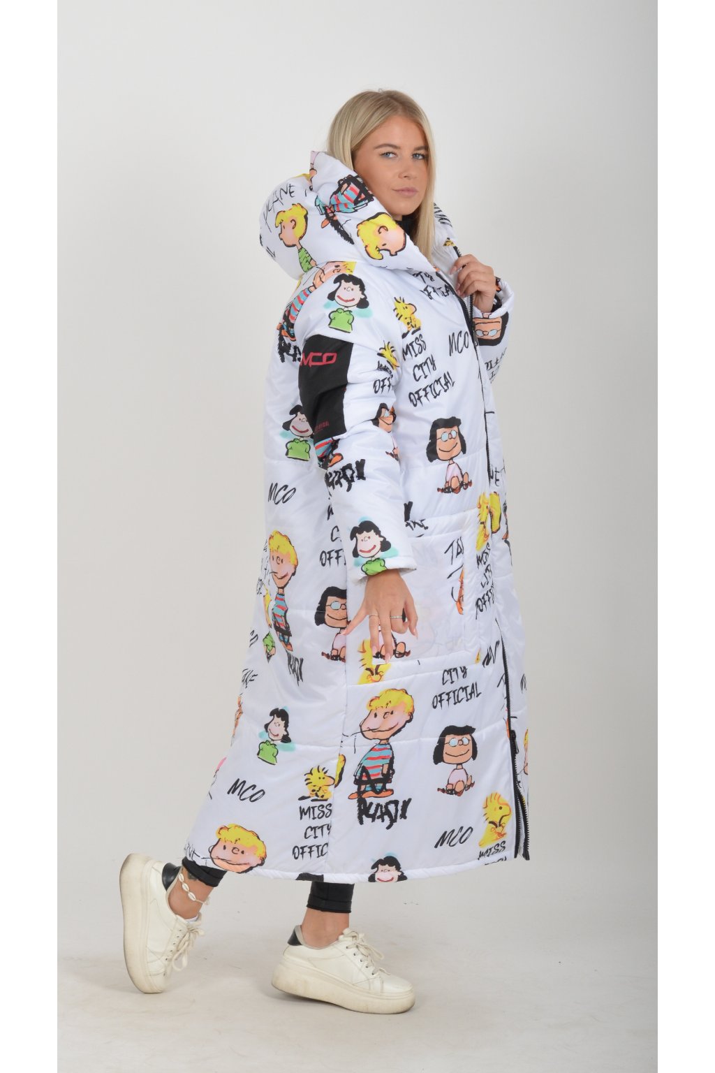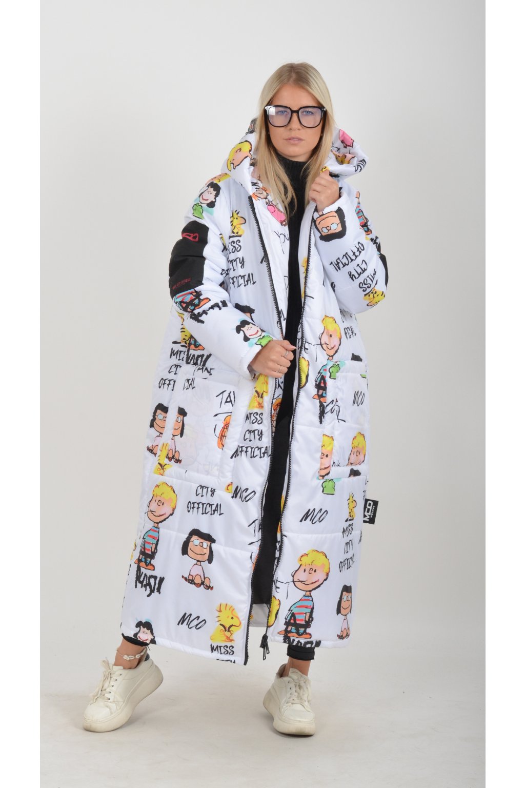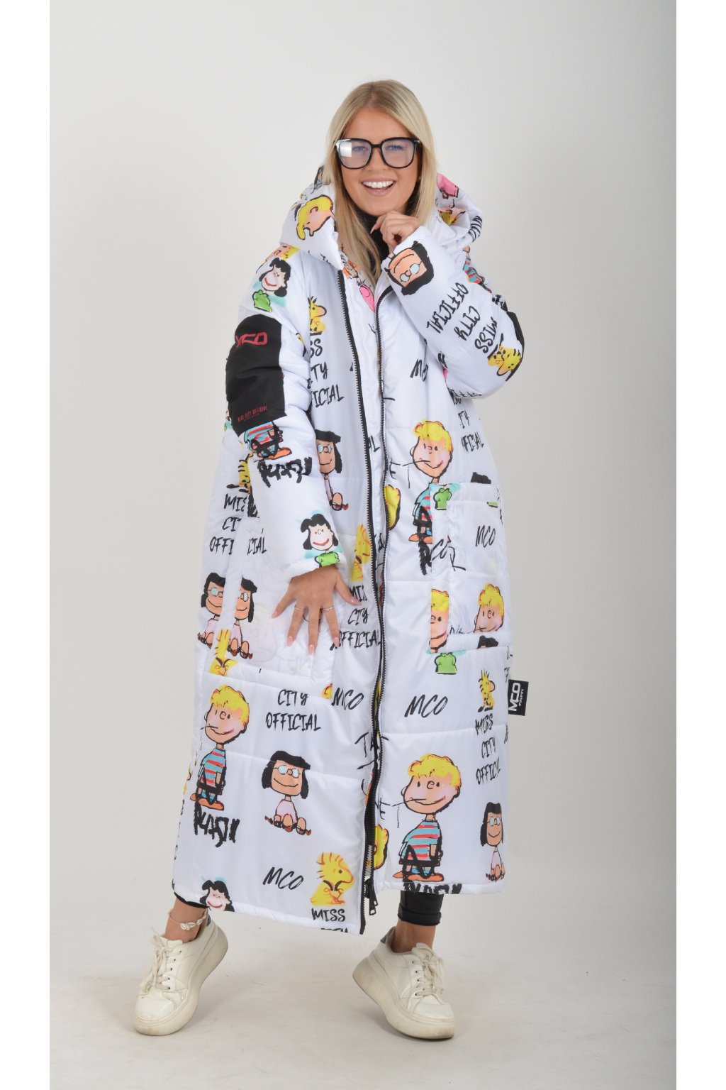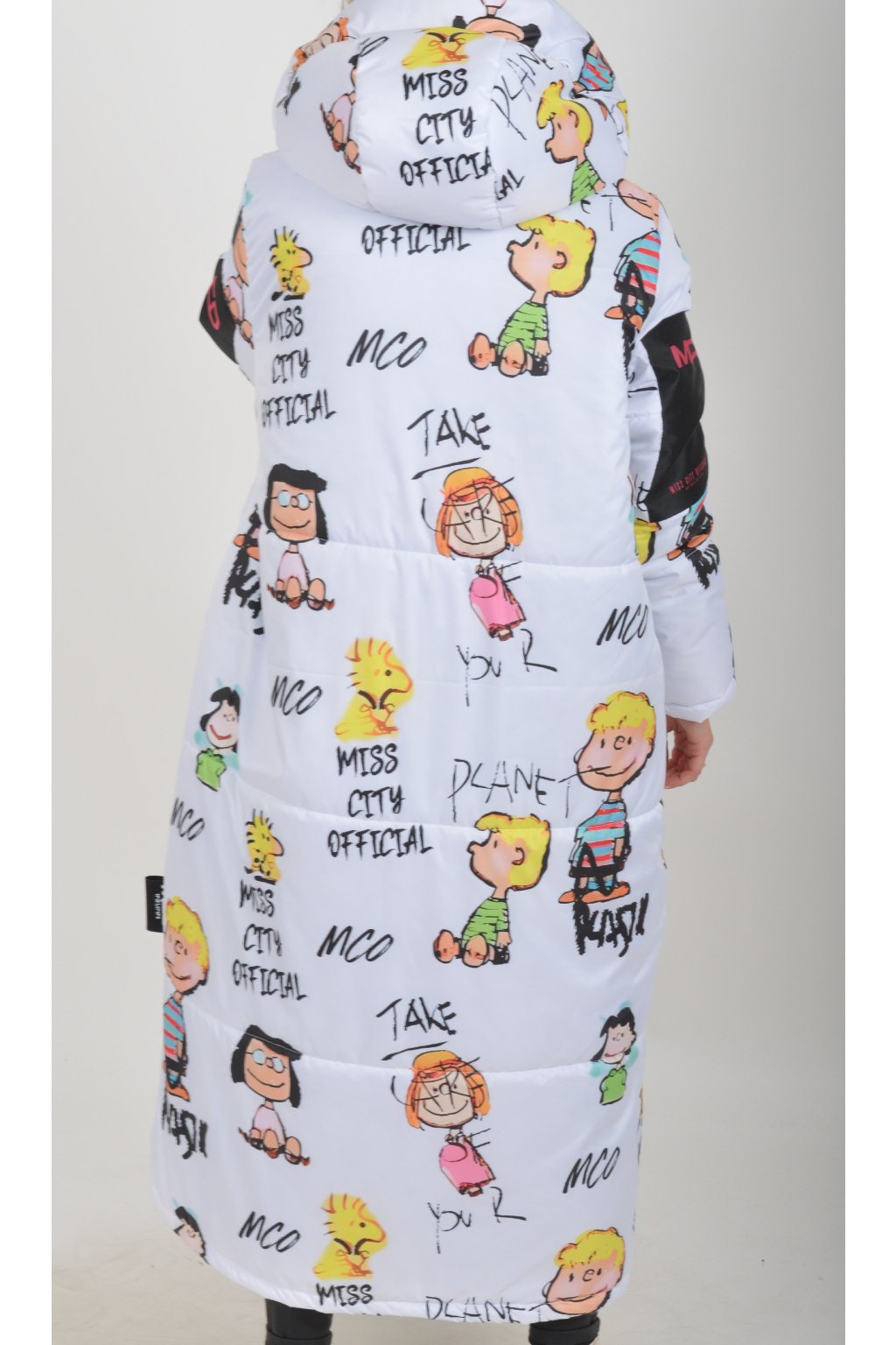 Zimní vzorovaný originální kabát z velice kvalitního a příjemného materiálu. Kabát má v přední části kapsy a kapuci. Výplň kabátku je duté vlákno.