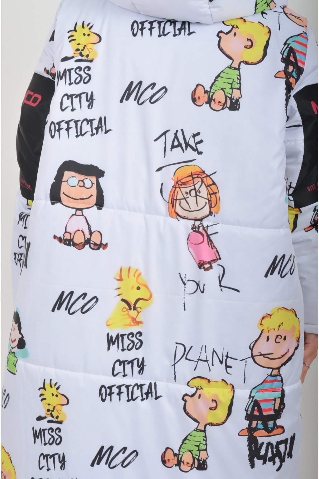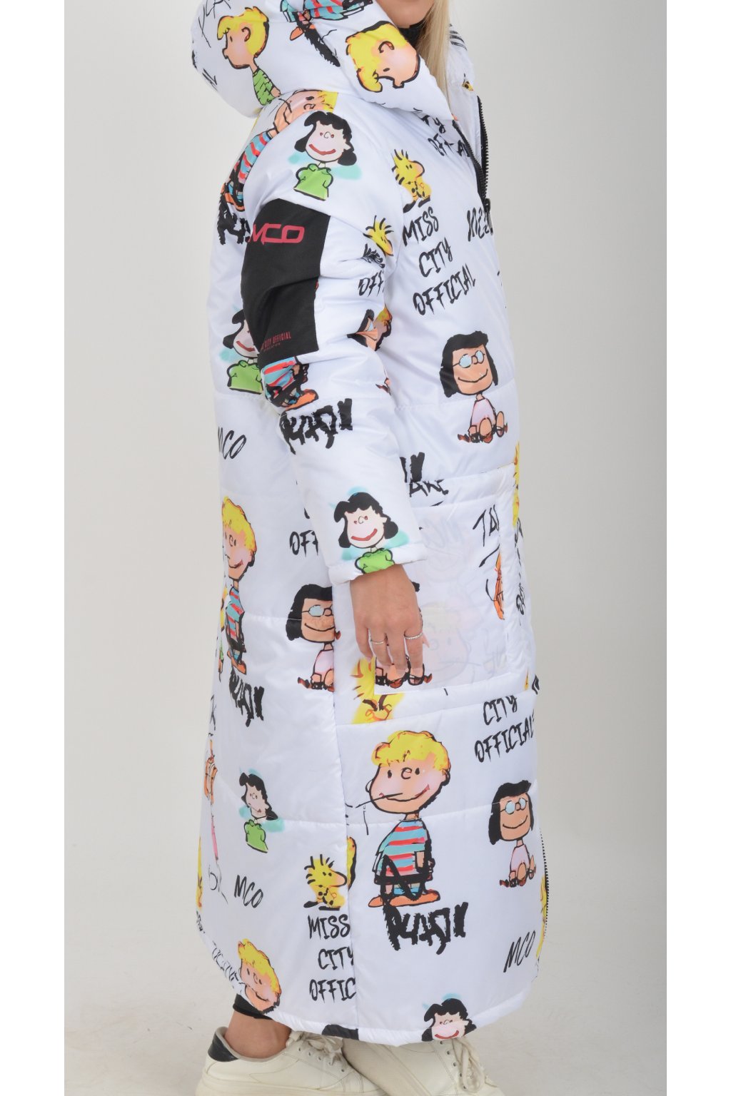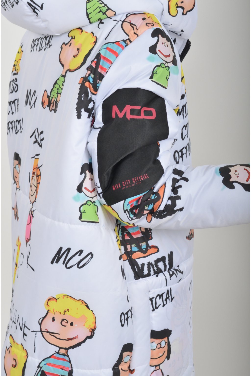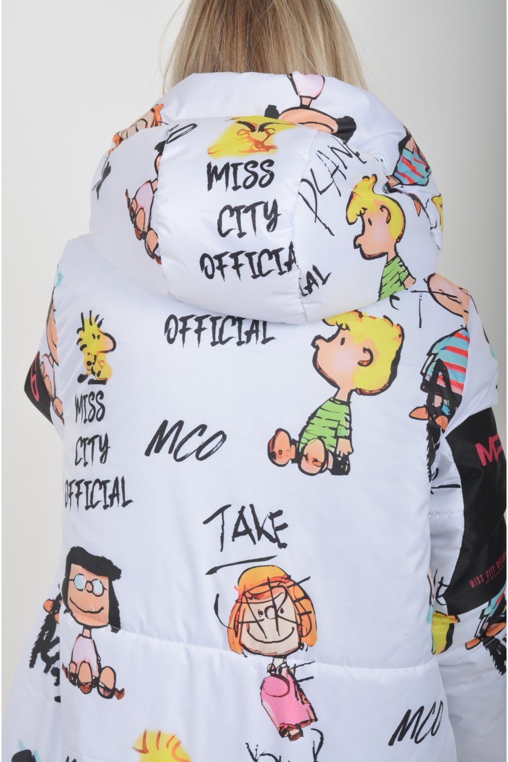 Zimní vzorovaný originální kabát z velice kvalitního a příjemného materiálu. Kabát má v přední části kapsy a kapuci. Výplň kabátku je duté vlákno.