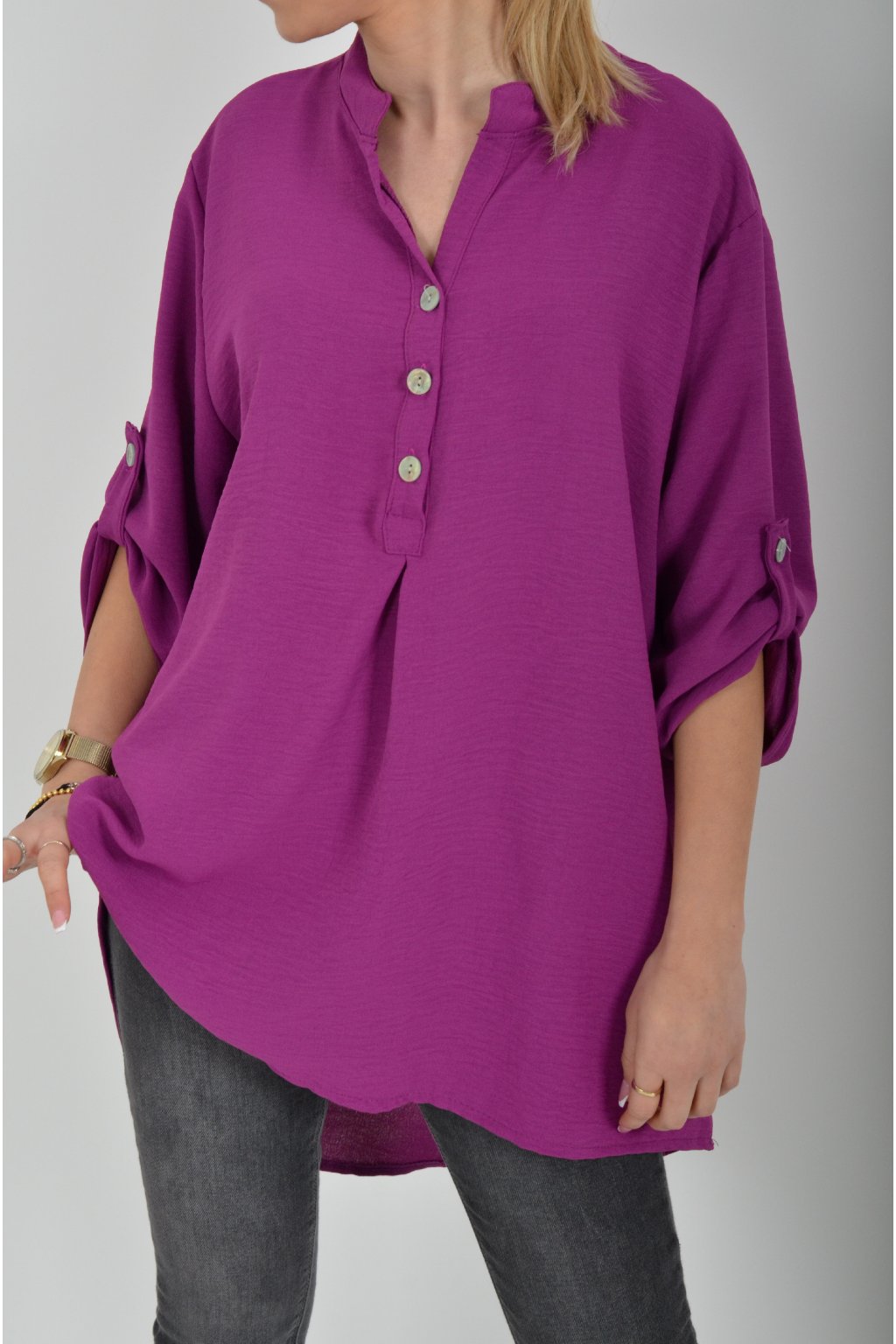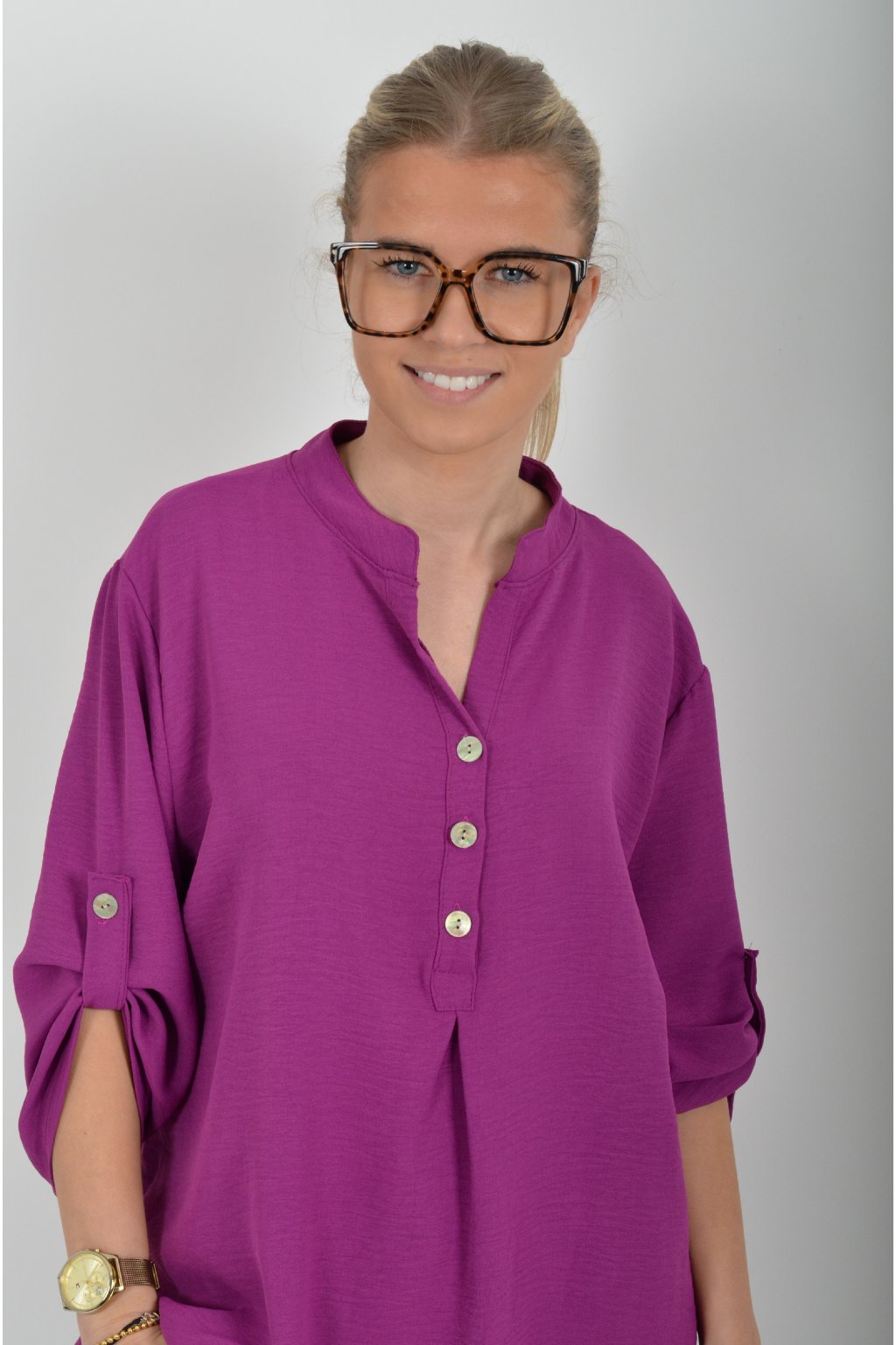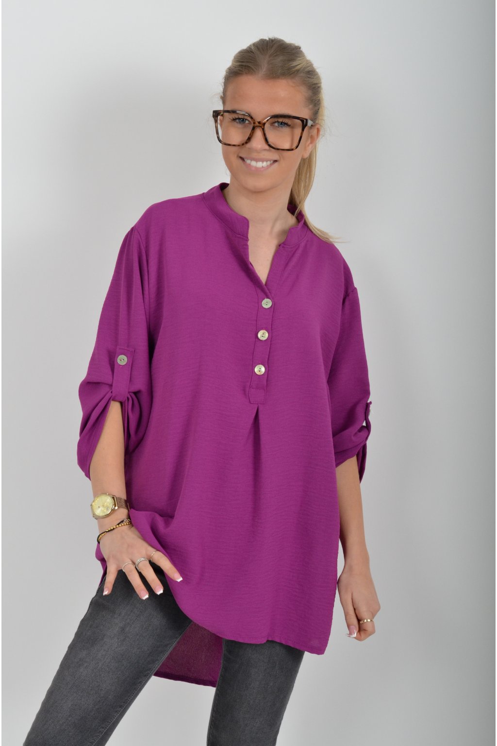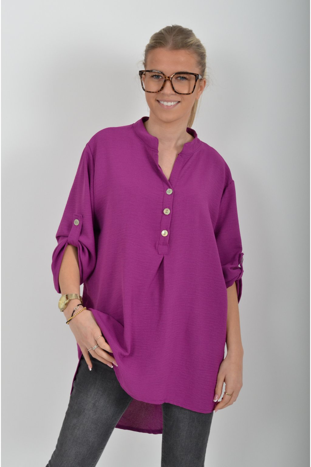 Halenka s tříčtvrtečním rukávem který lze pomocí knoflíku jednoduše zkrátit. Halenka má výstřih do V a zapínaní na tři knoflíky. Je vyrobena z příjemného a lehounkého materiálu. Zadní část halenky je delší než přední.