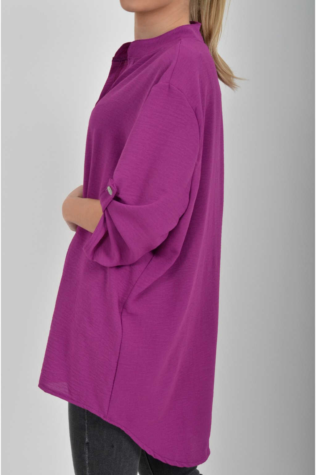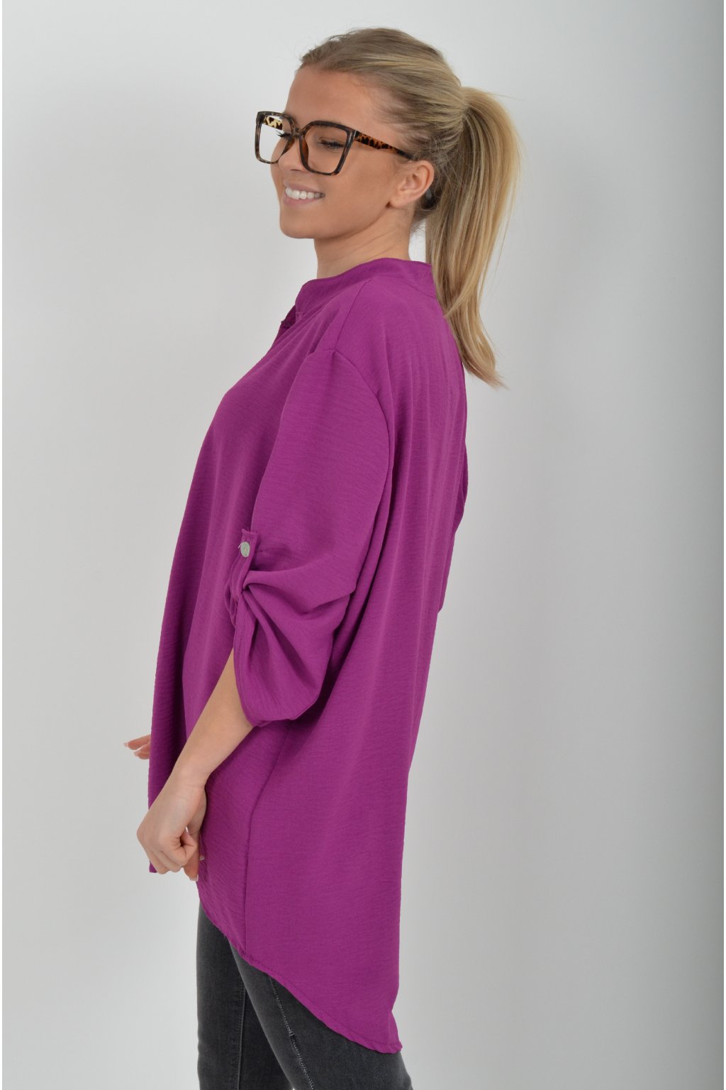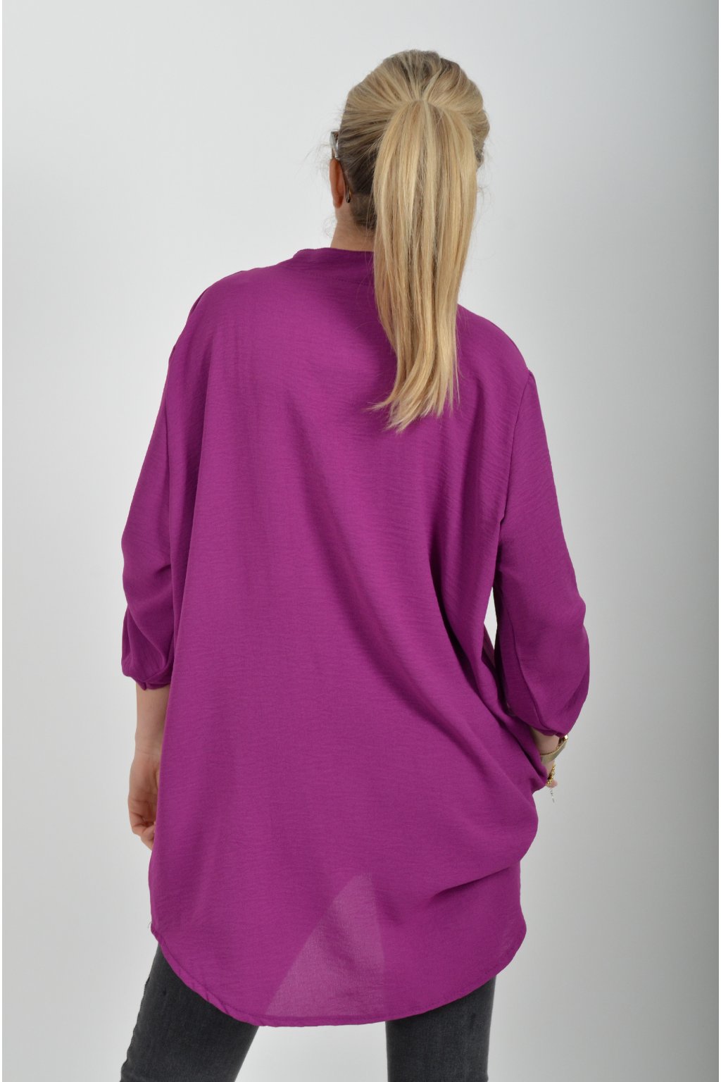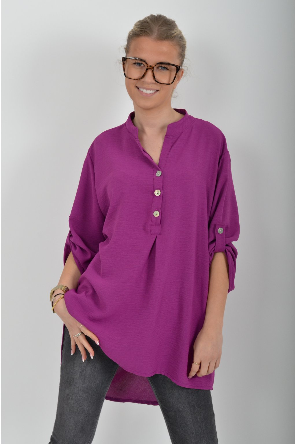 Halenka s tříčtvrtečním rukávem který lze pomocí knoflíku jednoduše zkrátit. Halenka má výstřih do V a zapínaní na tři knoflíky. Je vyrobena z příjemného a lehounkého materiálu. Zadní část halenky je delší než přední.