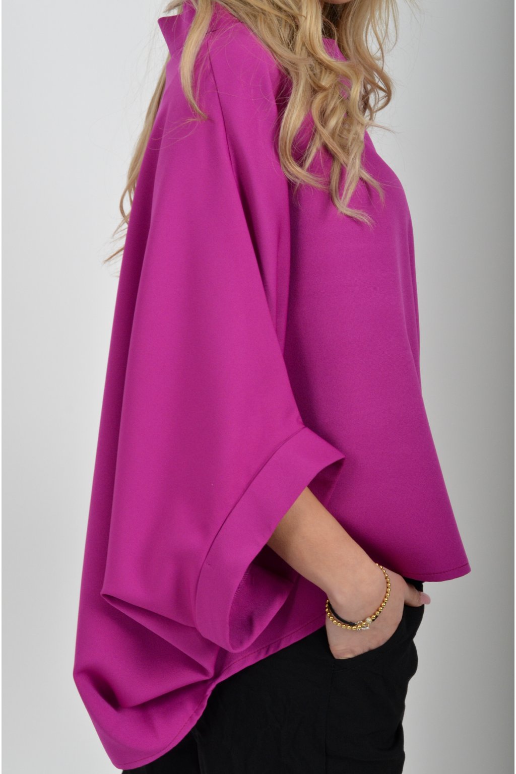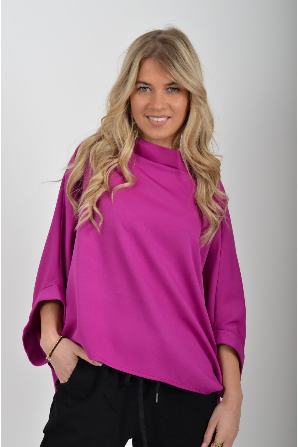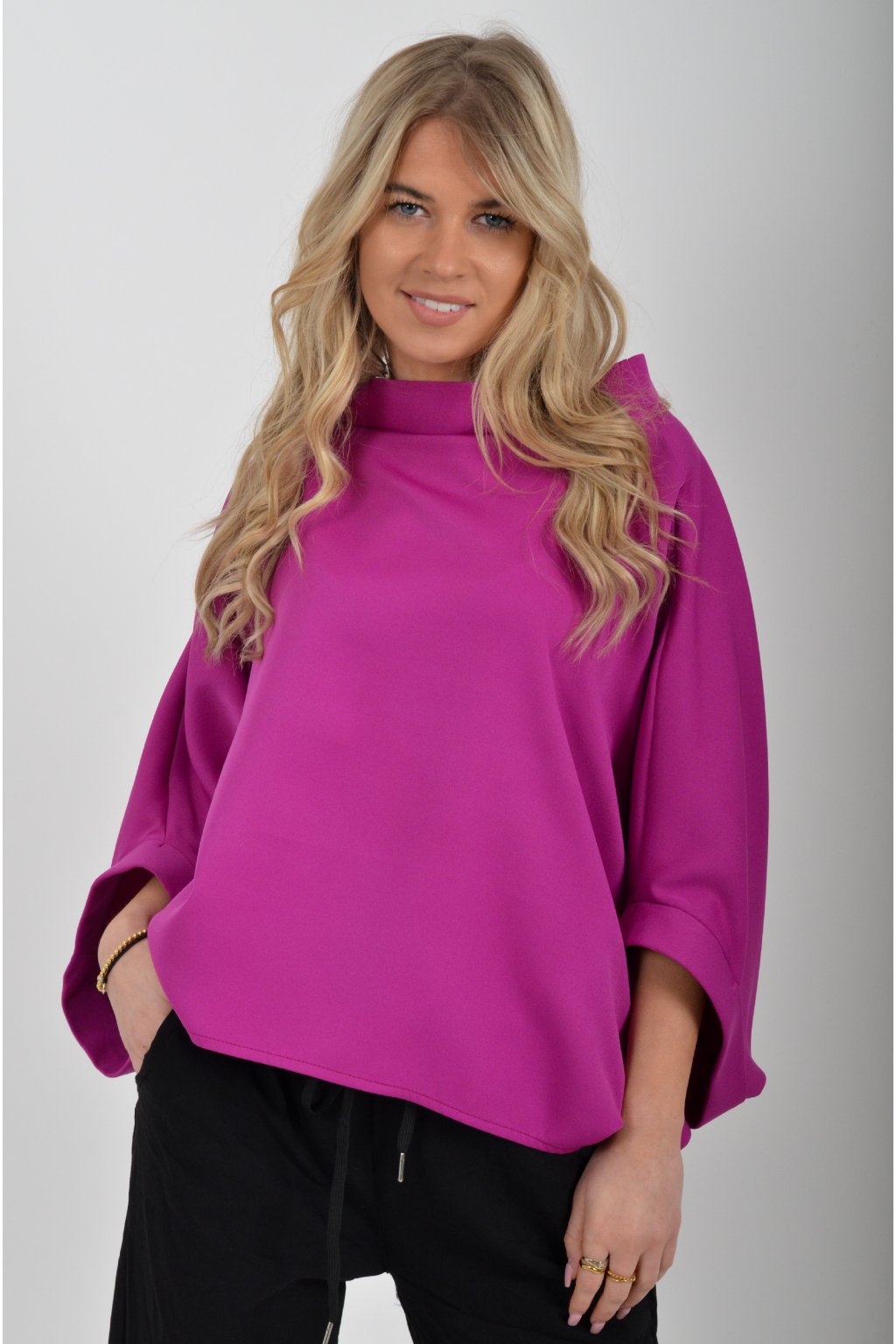 Halenka značky Miss City Official s netopýřím rukávem vhodná jak pro společenské události, tak i volnočasové nošení. Je vyrobena z velice příjemného a pevného materiálu. Přední část halenky je kratší než zadní. Je volnějšího střihu.
