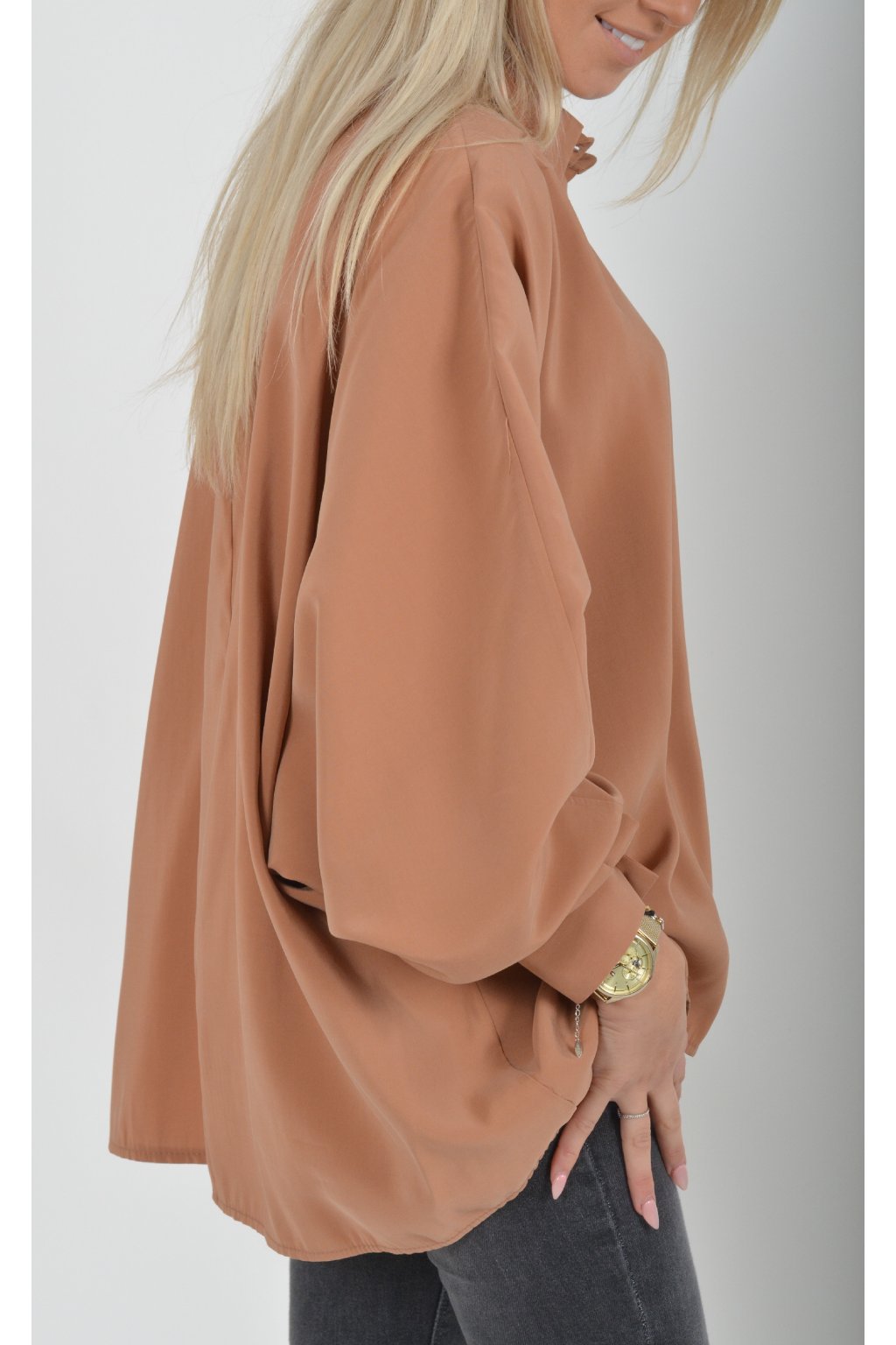 Luxusní košile s dlouhým netopýřím rukávem. Zadní část košile je delší než přední. Je vyrobena z velice příjemného a lehce teplého materiálu. Košile je vhodná jak pro společenské události, tak i na běžné nošení.