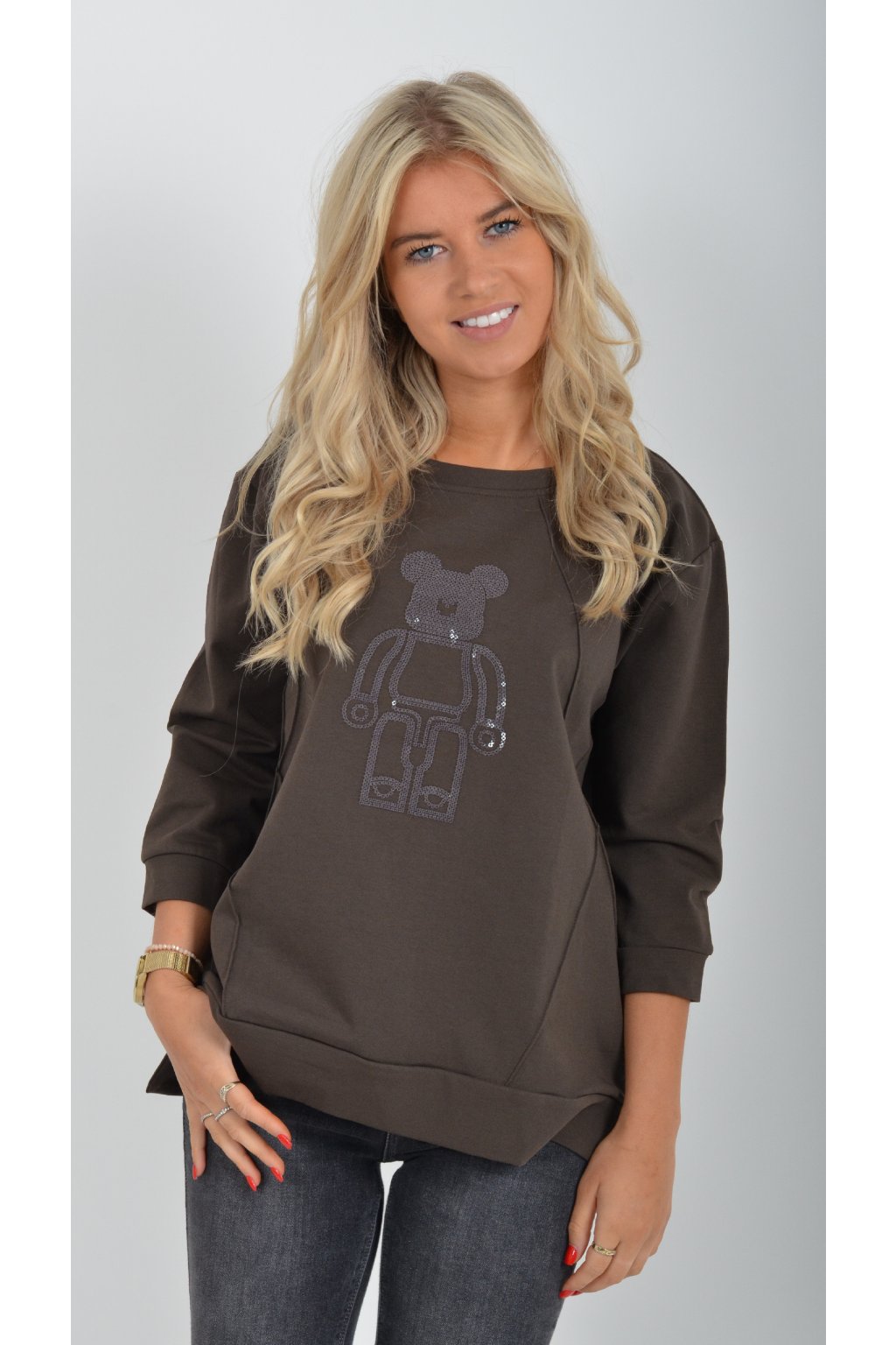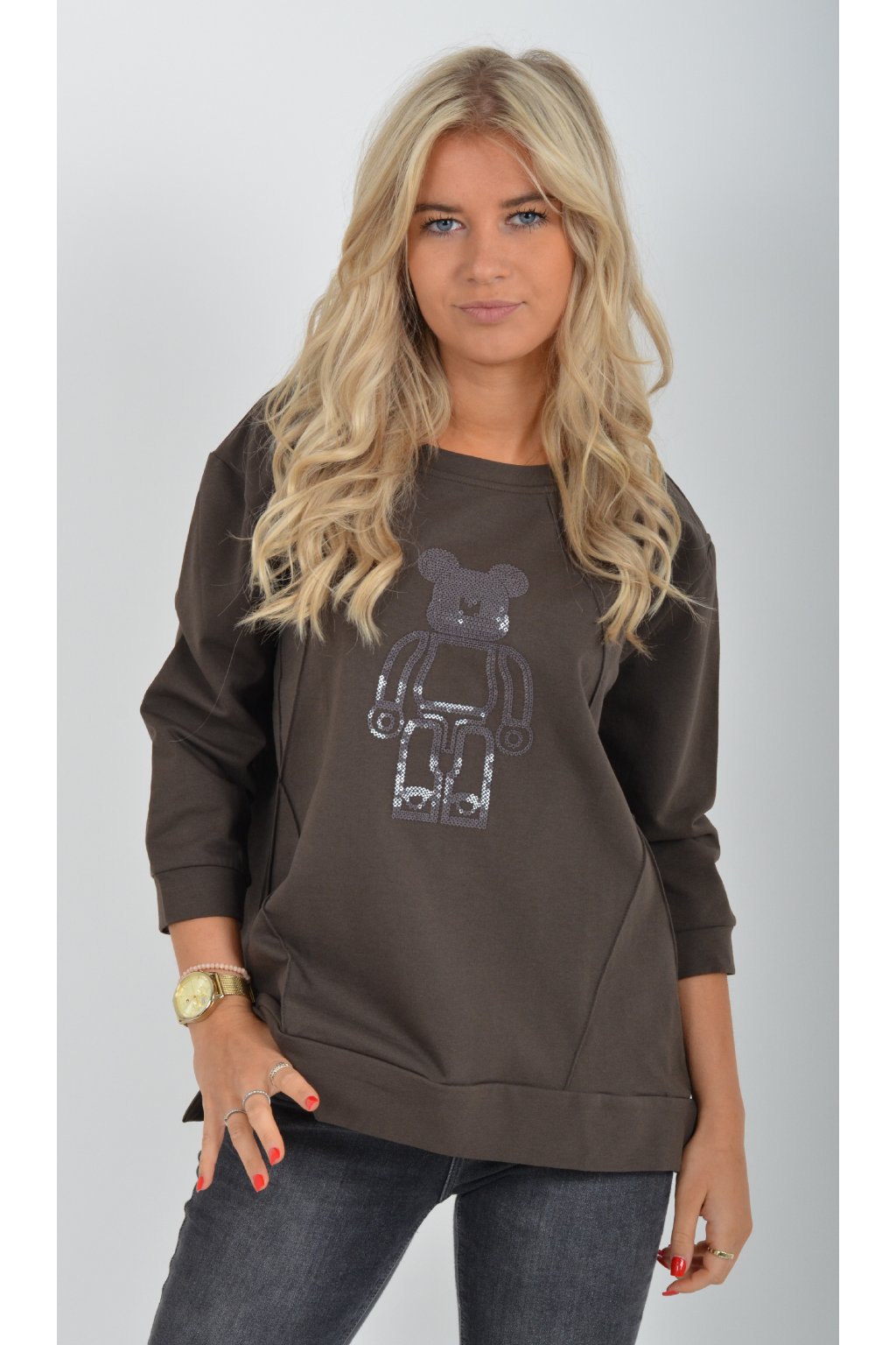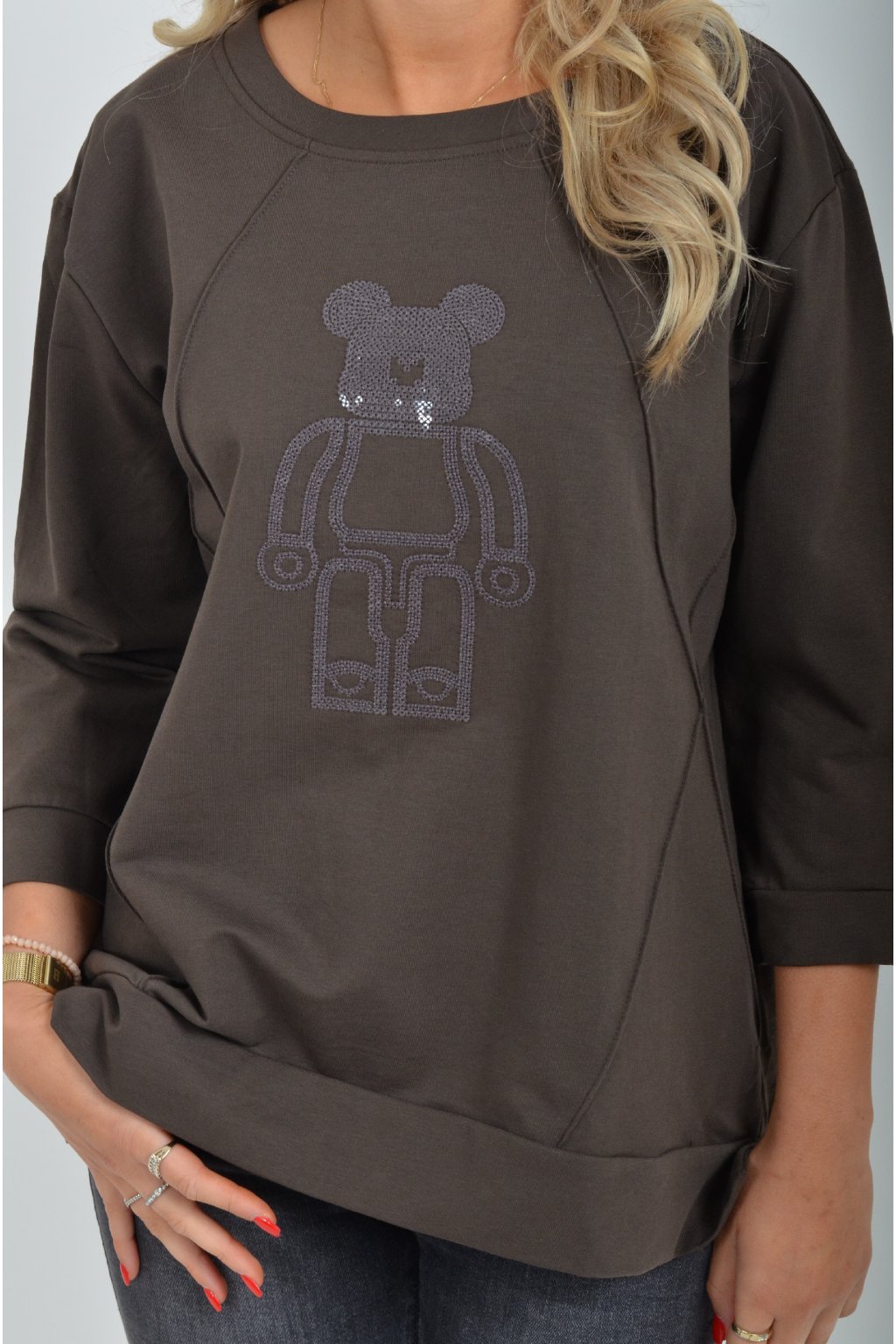Mikina s tříčtvrteční rukávem, našívanými ozdobnými flitry ve tvaru medvídka. Je vyrobena z velice příjemné a kvalitní turecké bavlny. Spodní část mikiny má rozparky