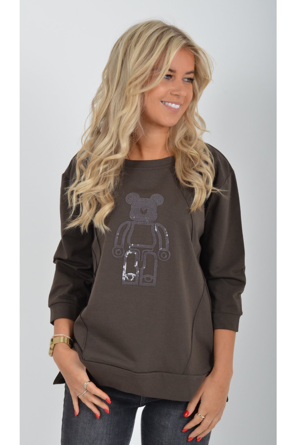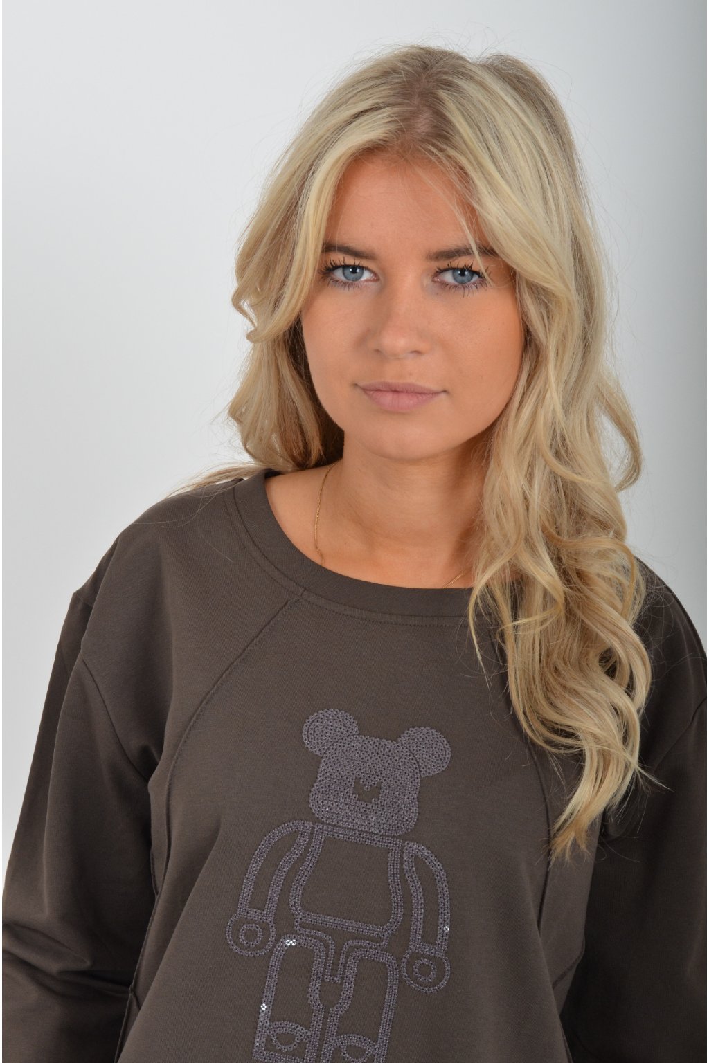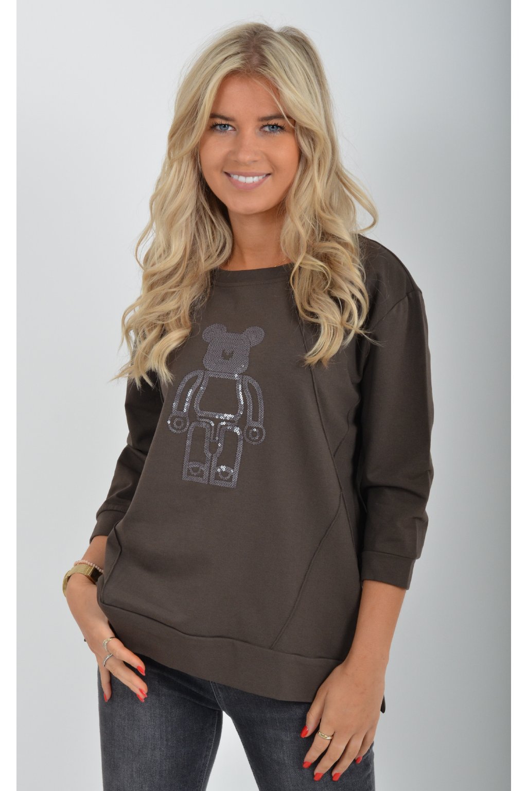 Mikina s tříčtvrteční rukávem, našívanými ozdobnými flitry ve tvaru medvídka. Je vyrobena z velice příjemné a kvalitní turecké bavlny. Spodní část mikiny má rozparky