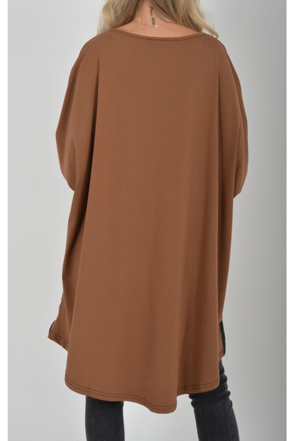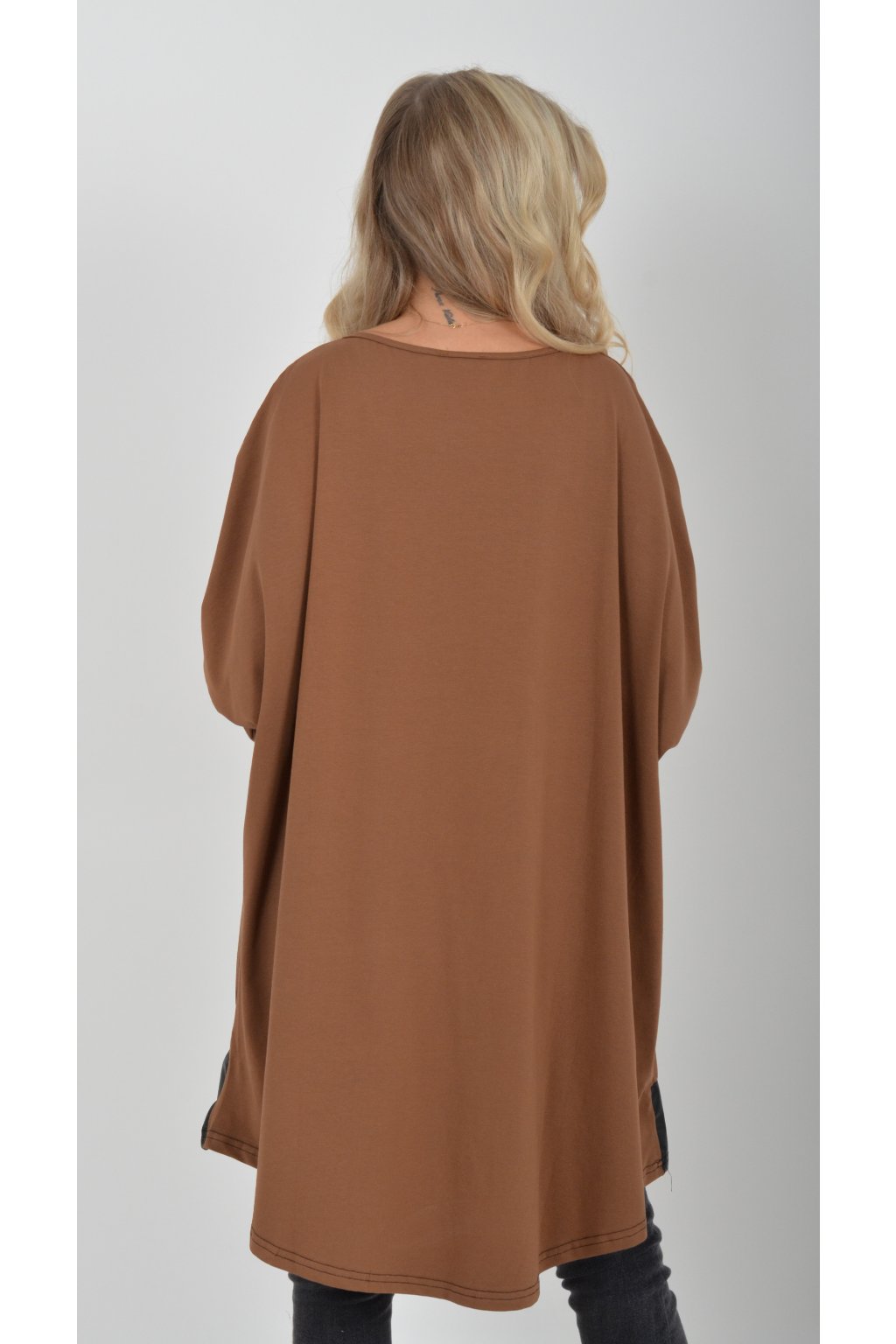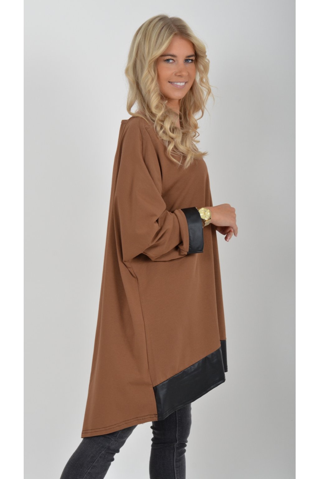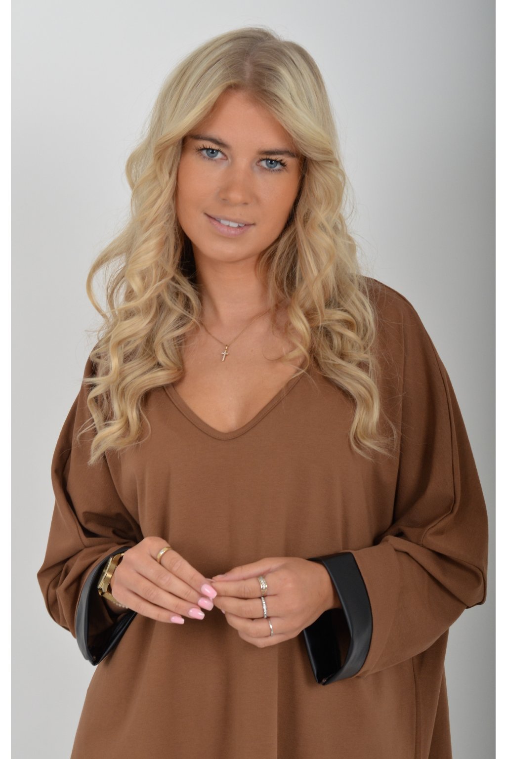 Oversize tunika s tříčtvtečním rukávem z příjemné turecké bavlny. Která je doplněna koženkovým detailem na spodní části a rukávech. Je vhodná pro každodenní nošení.