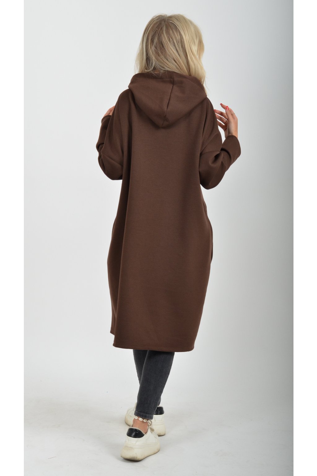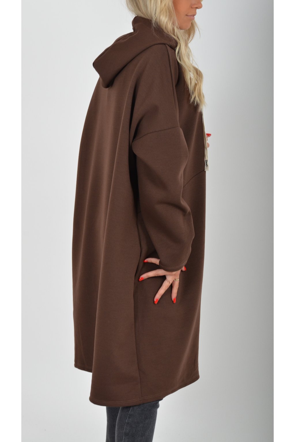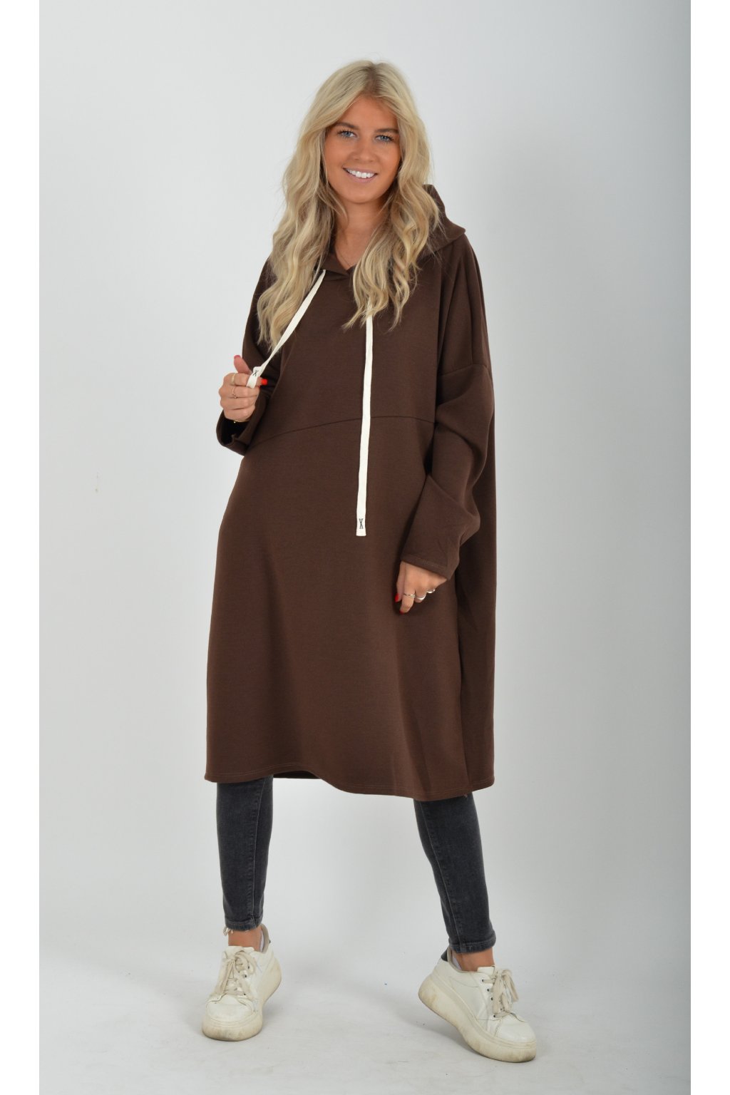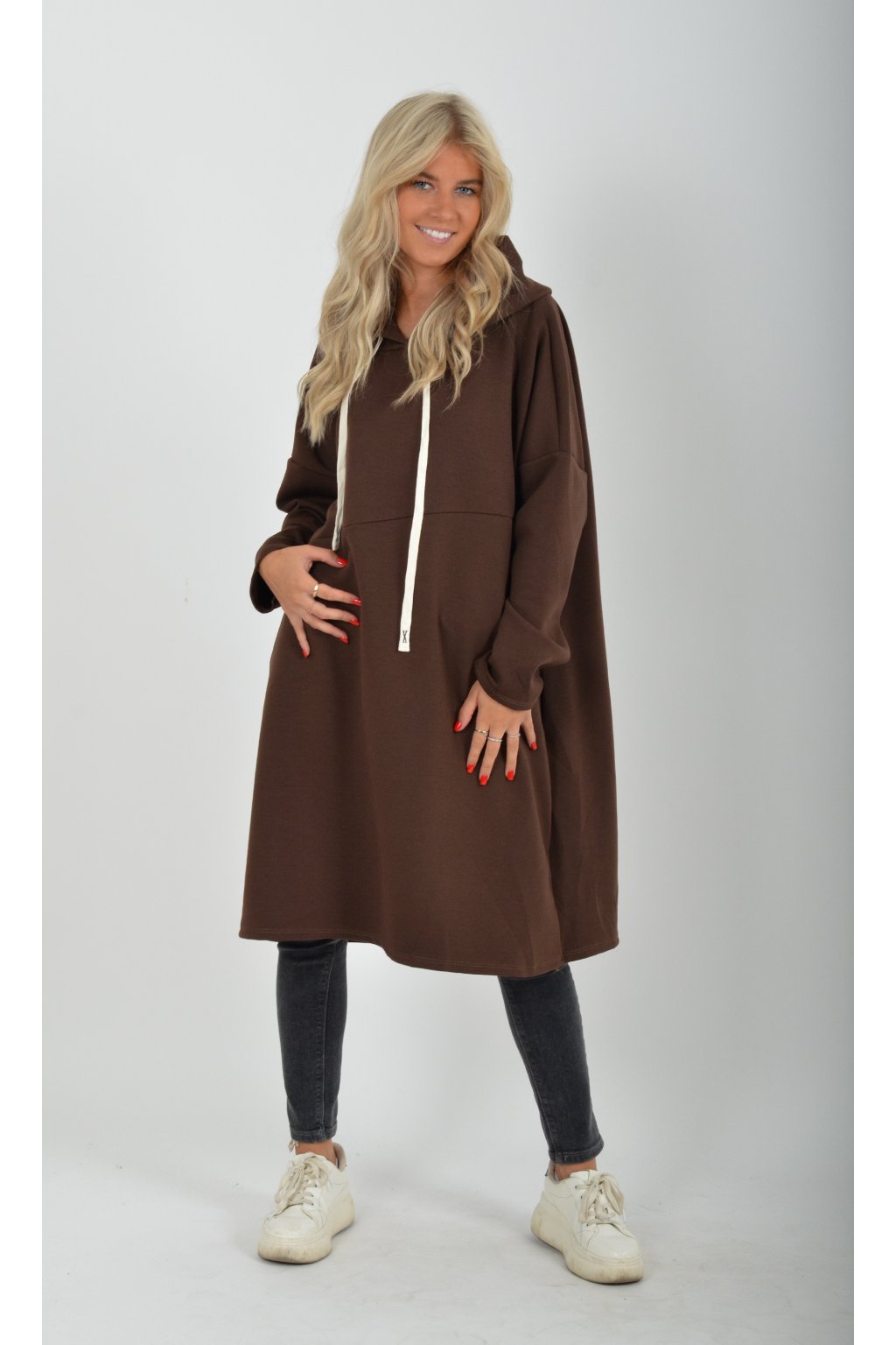 Pohodlné mikinové šaty s kapucí. Mají lehce áčkový střih, dlouhý rukáv a na bocích kapsy. Jsou vyrobené z velice příjemného materiálu.