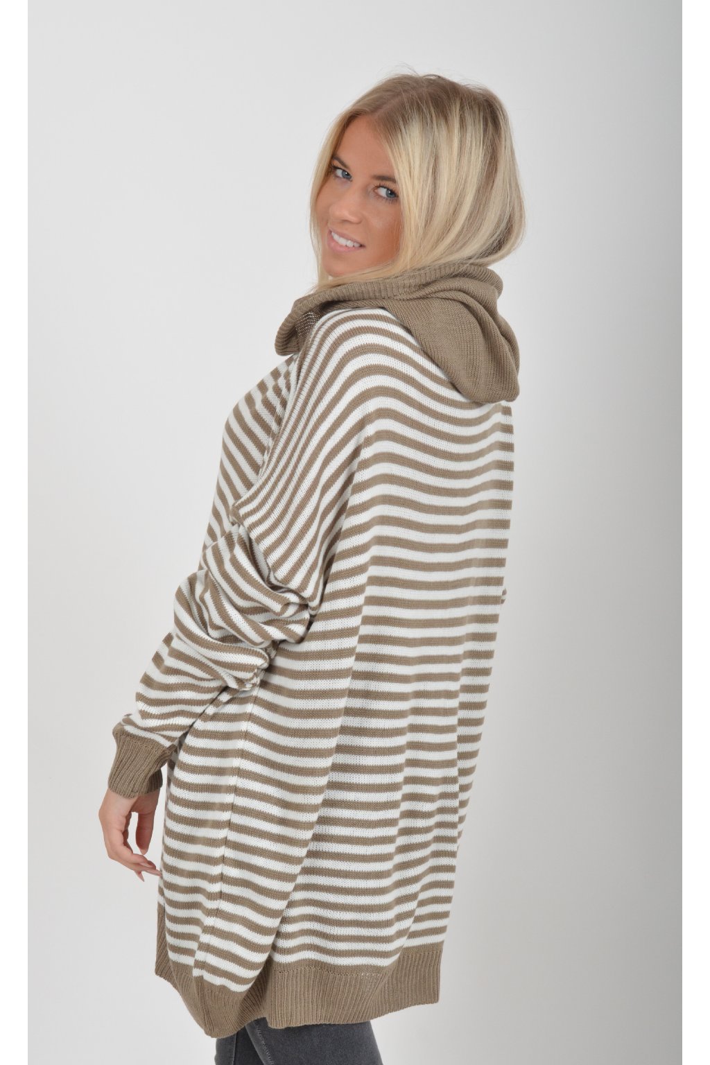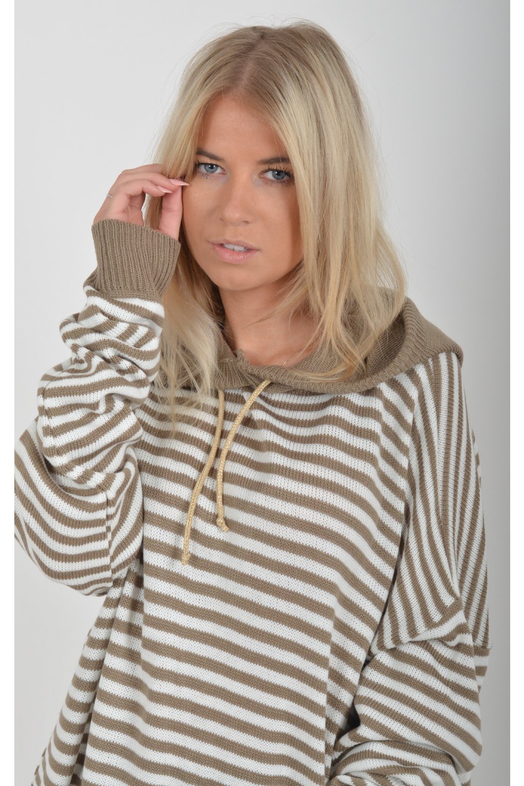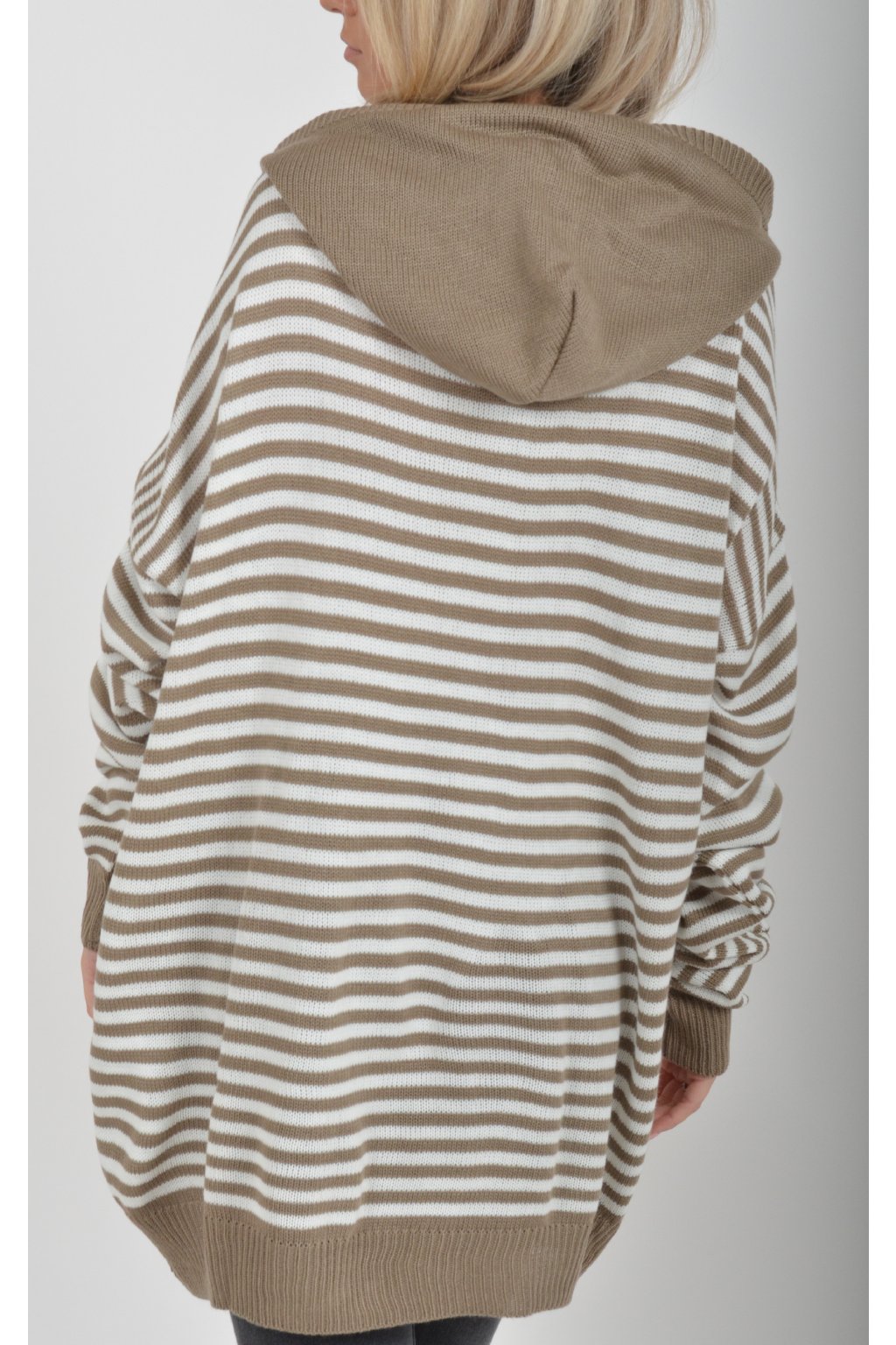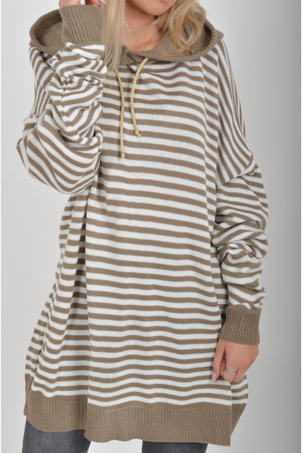 Pruhovaný svetr s kapucí a dlouhým rukávem. Materiál je nekousavý a příjemný.
