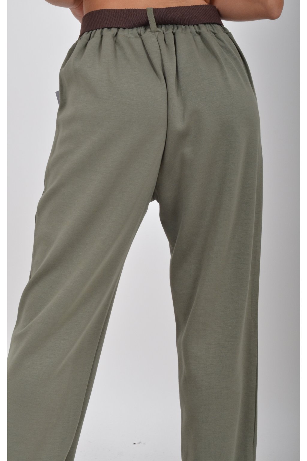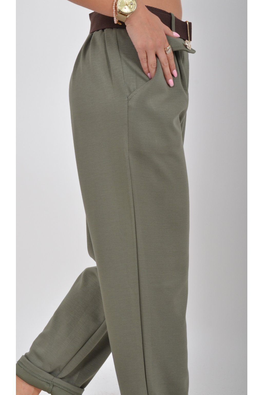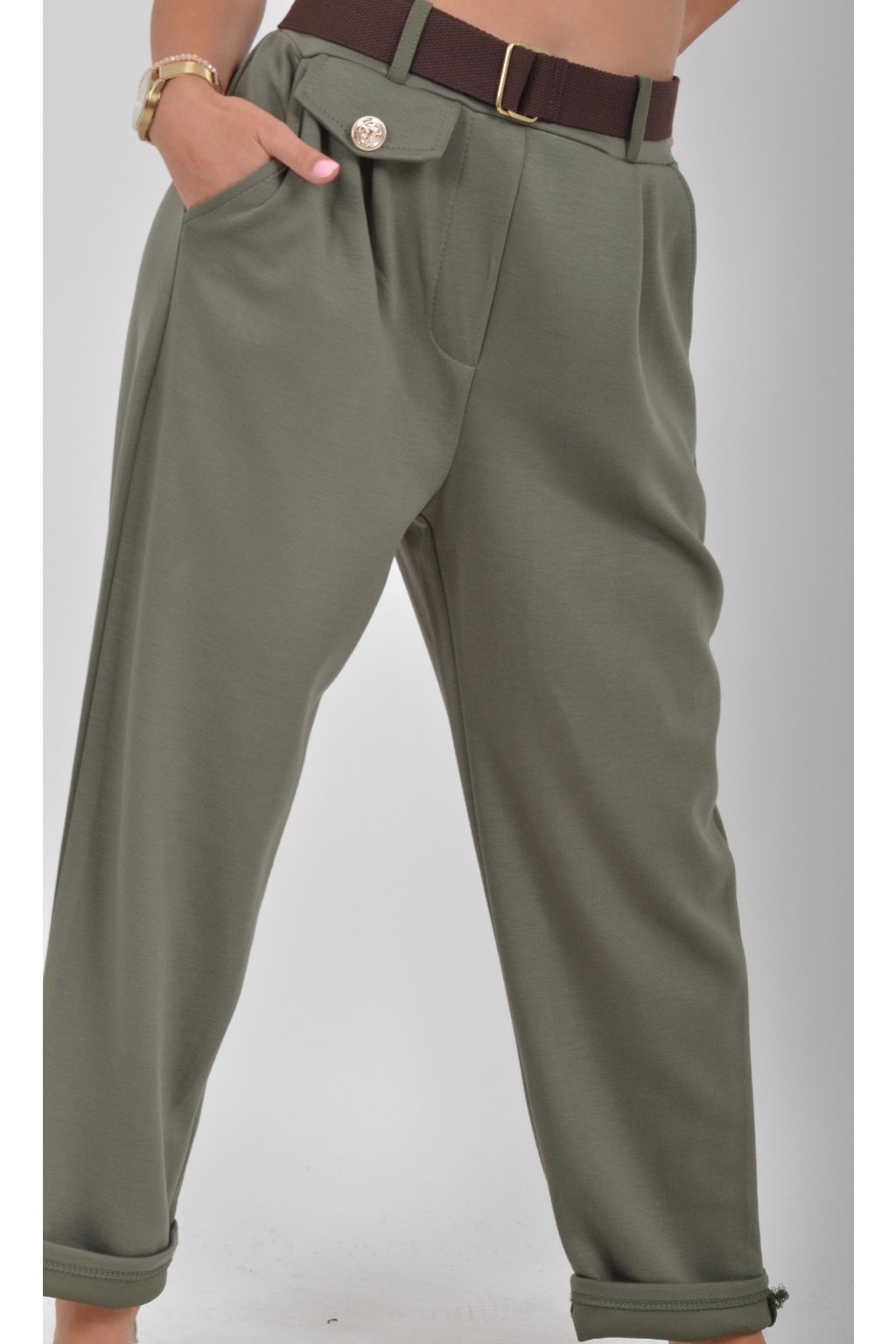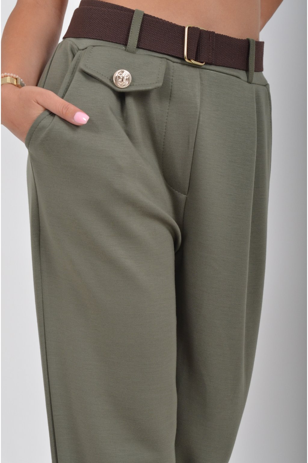 Elegantní kalhoty teplákového stylu s kapsami na bocích. V pase je zapracovaná guma a součástí kalhot je pásek pro libovolné stažení. Kalhoty jsou z velice příjemného materiálu a jsou vhodné pro každodenní nošení.