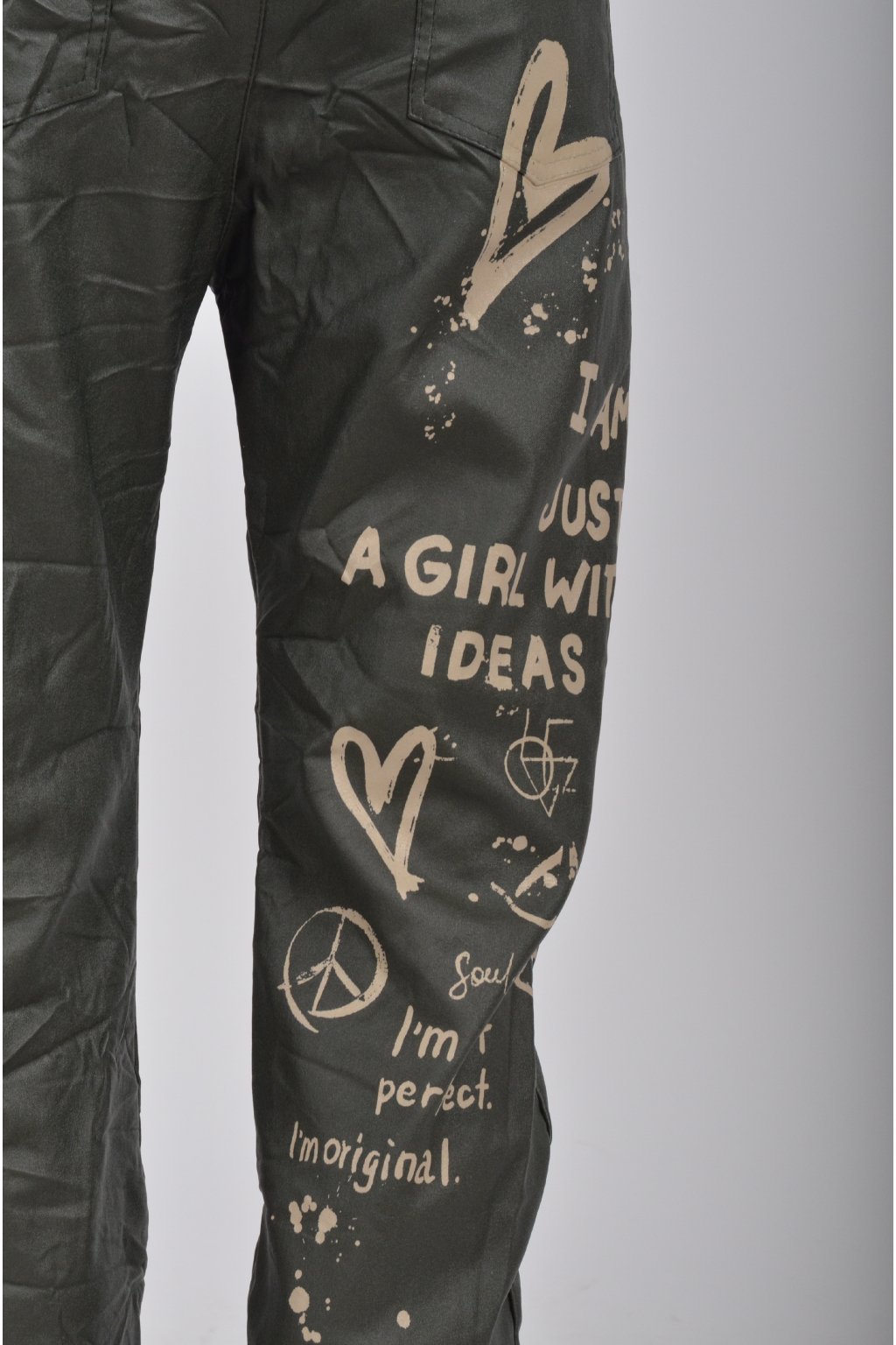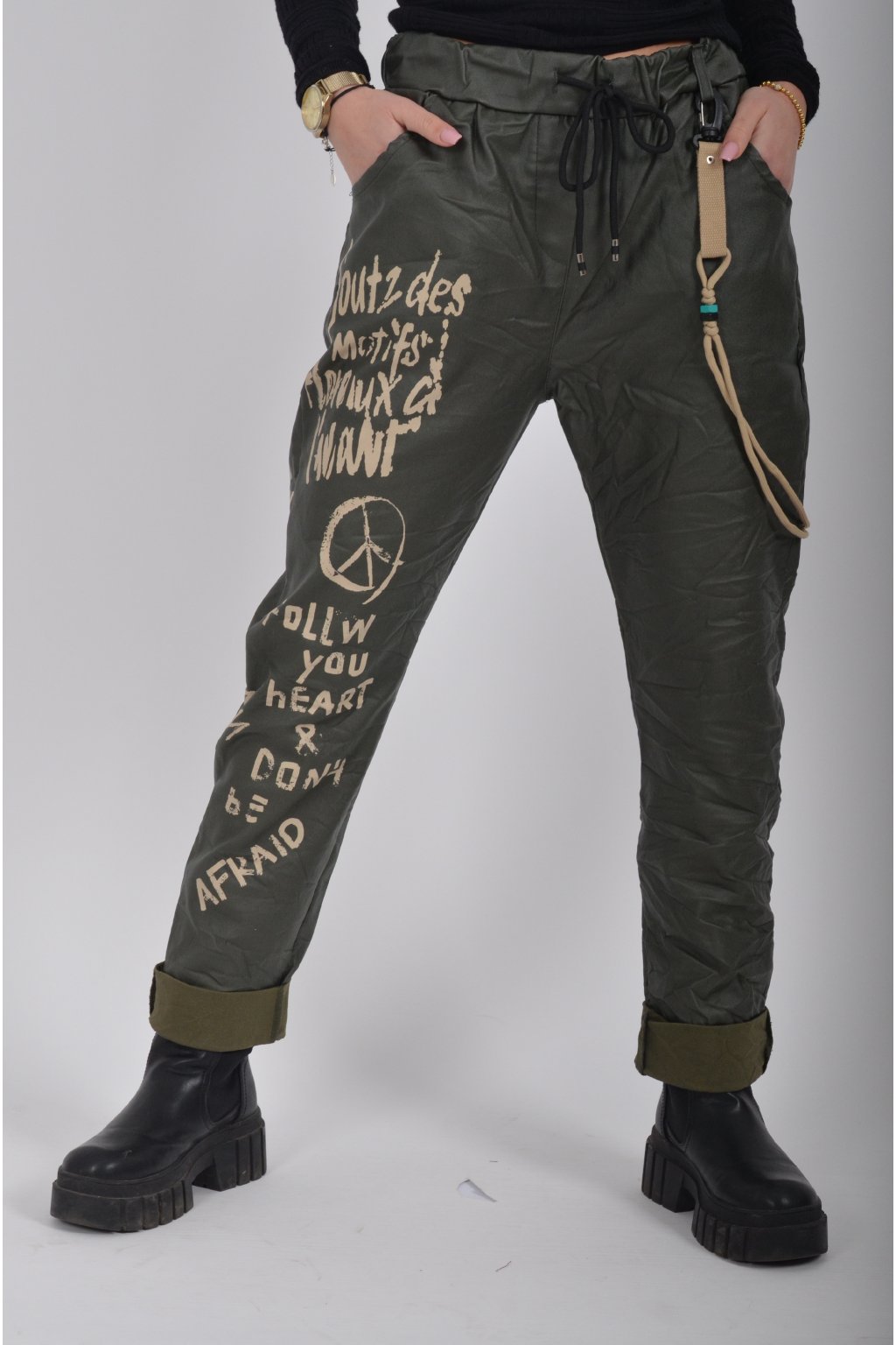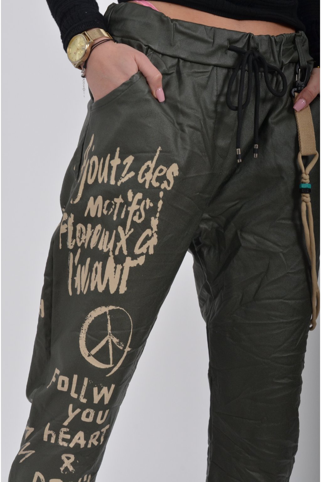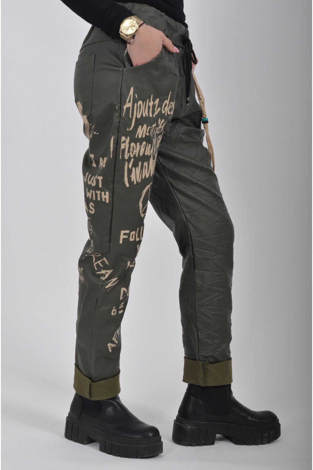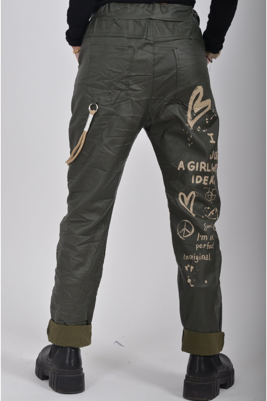 Jednobarevné koženkové kalhoty s kapsami na bocích, které se krásně přizpůsobí postavě, díky podílu elastanu. Jsou vhodné pro každodenní nošení. V pase je zapracovaná guma a tkanička pro libovolné stažení.