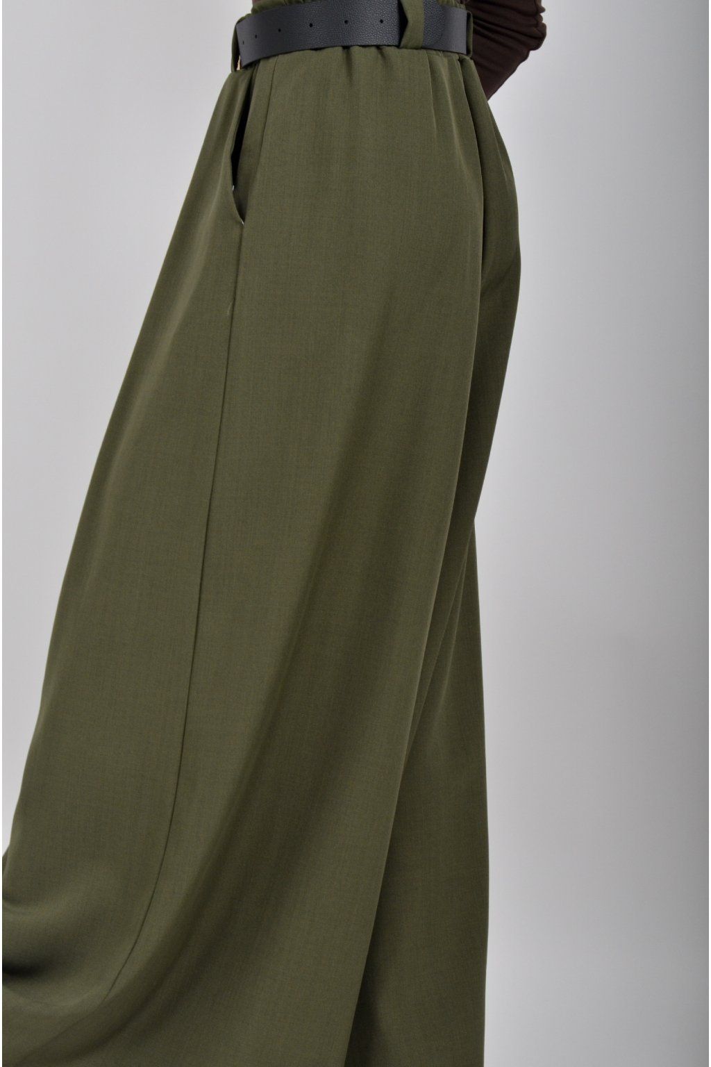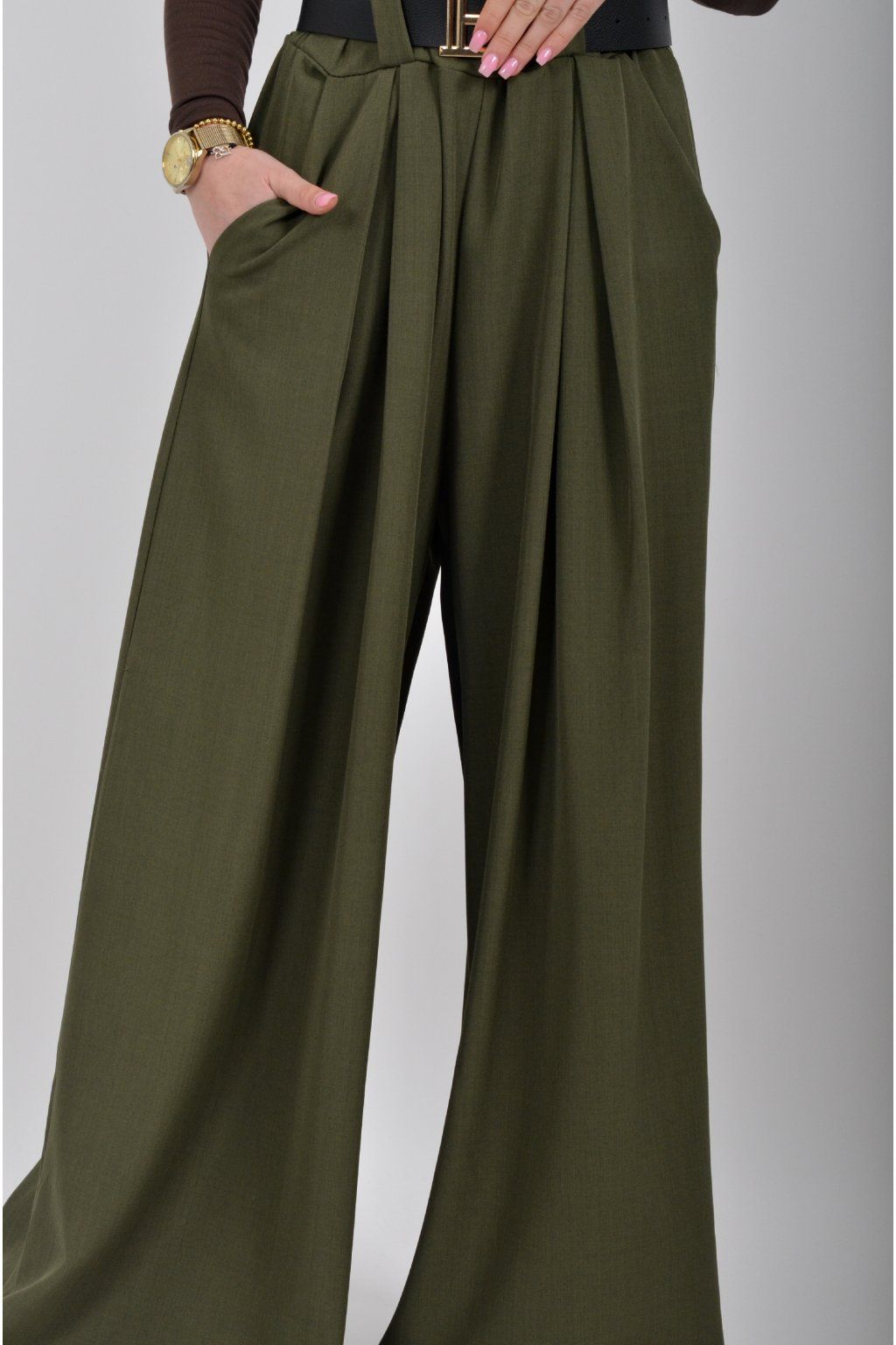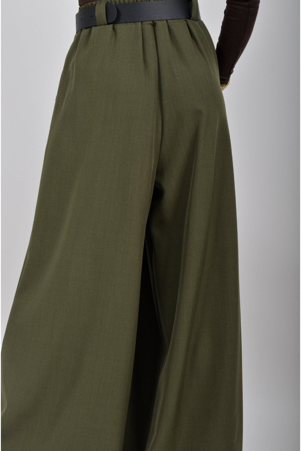 Kalhoty se širokými nohavicemi vyrobené z odlehčeného a velice příjemného materiálu. Materiál kalhot je lehce pružný. V pase mají zapracovanou gumu, na bocích jsou kapsy a jako dárek je pásek, který lze odejmout a použít pro nošení k jiným kouskům.