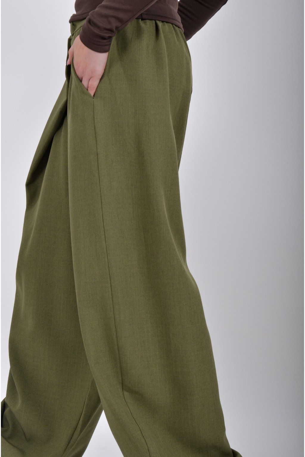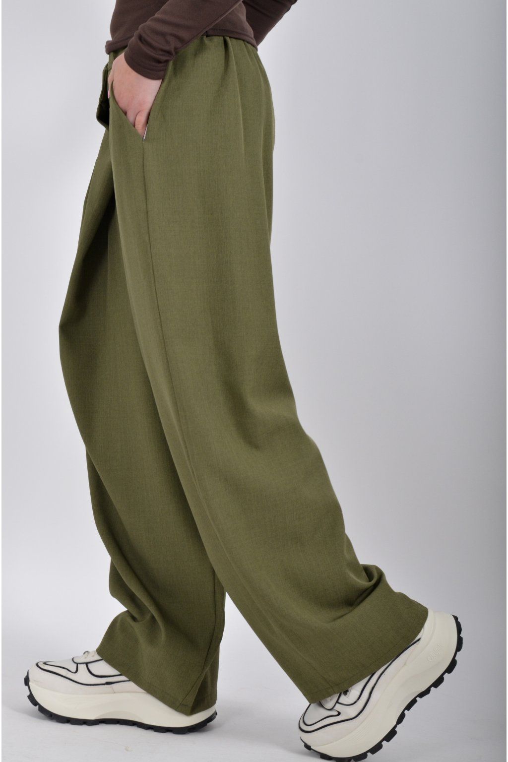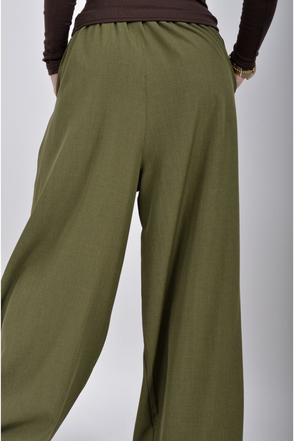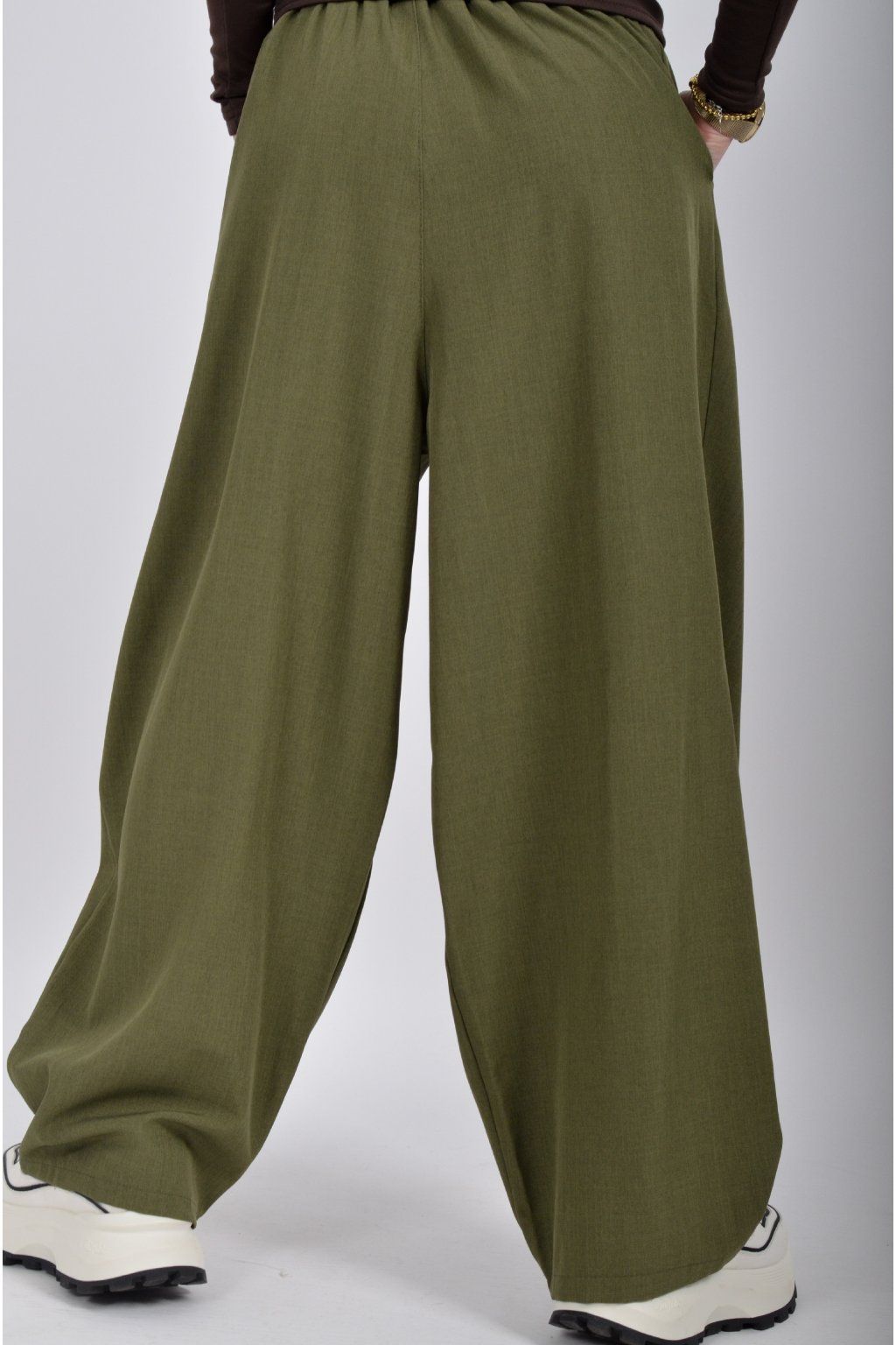 Jednobarevné kalhoty s překříženým pasem a kapsami na bocích. Krásně přizpůsobí postavě, díky podílu elastanu. Jsou vhodné pro každodenní nošení. V pase je zapracovaná guma a jsou vyrobené z příjemného odlehčeného materiálu.
