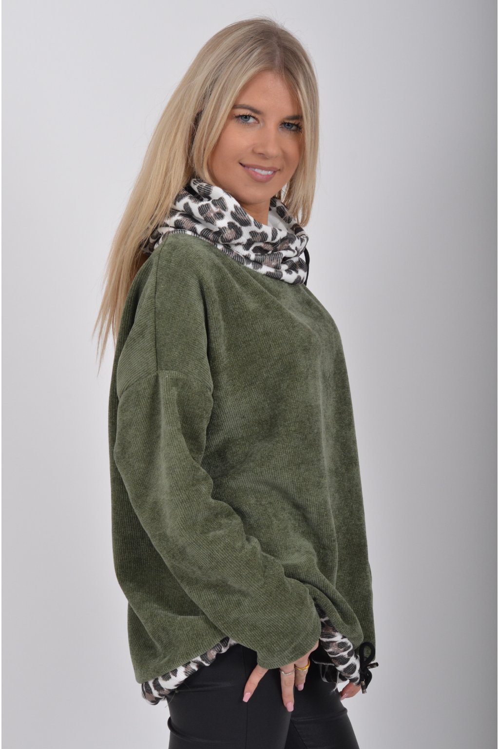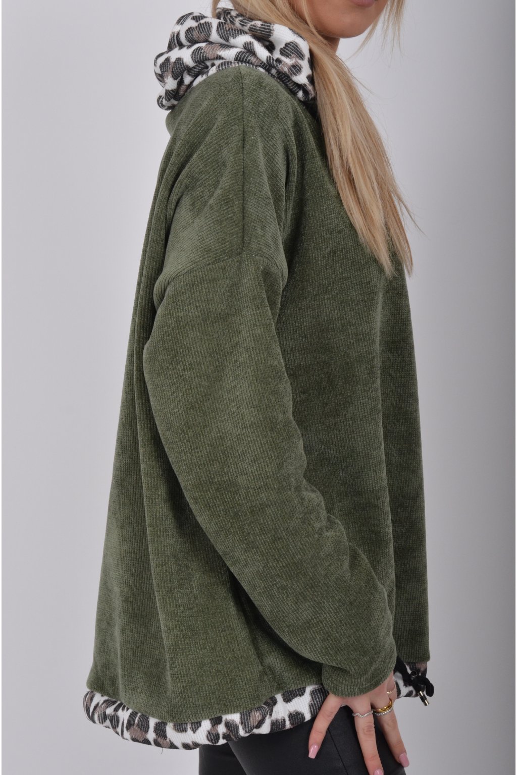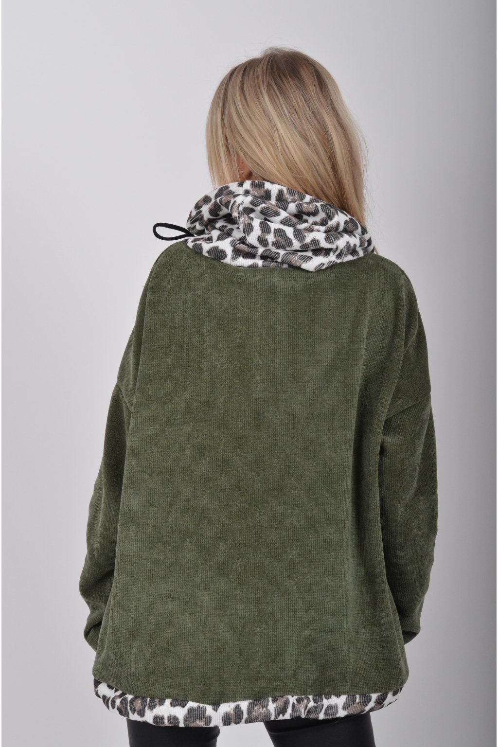 Stylová mikina s ozdobnými lemem a kapucí. Je vyrobena z velice příjemného materiálu. Ve spodní části má zapracovanou tkaničku, která slouží k libovolnému stažení. Hodí se jak k džínům, tak i k legínám. Heboučký materiál zaručí příjemně strávený den.