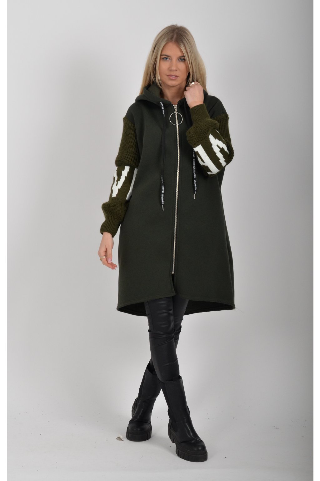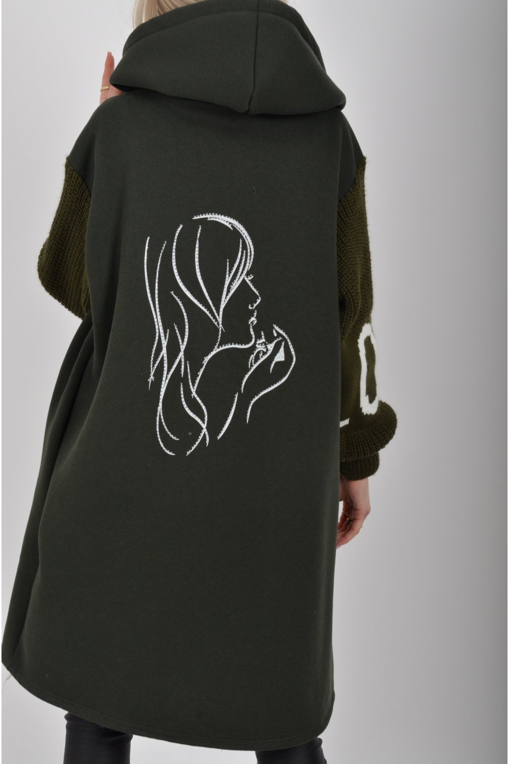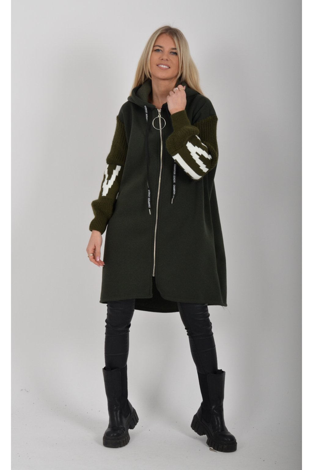 Mikina na zip s kapucí, dlouhým rukávem a kapsami na bocích. Mikina má pletené rukávy a v zadní části stříbrnou aplikaci. Je vyrobena z velice příjemného a kvalitního materiálu.